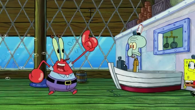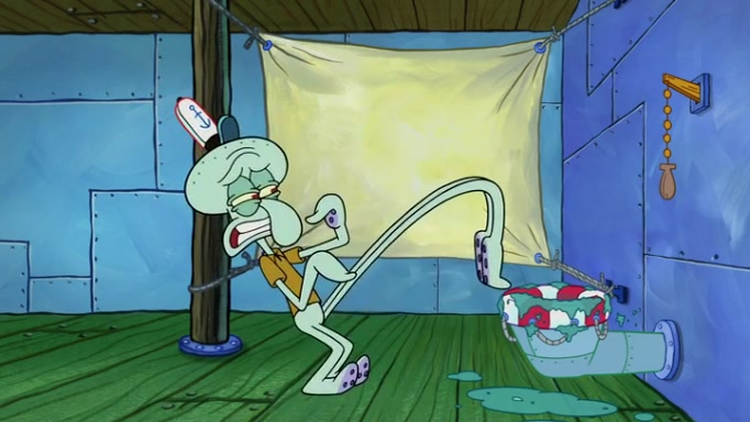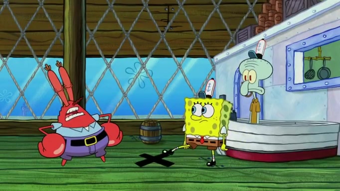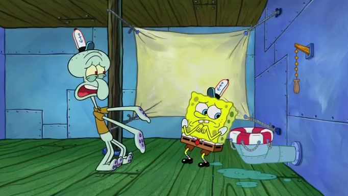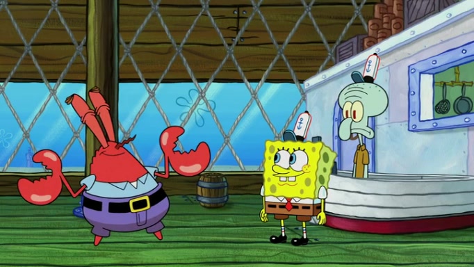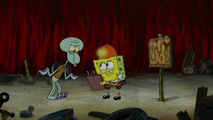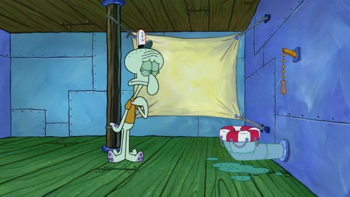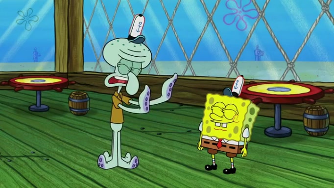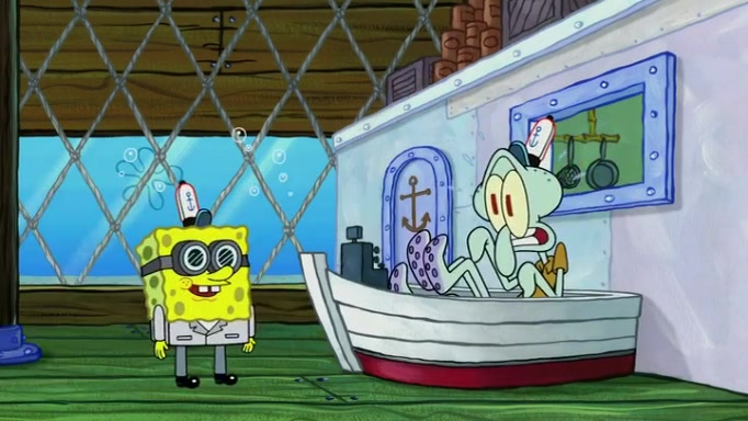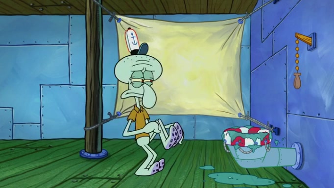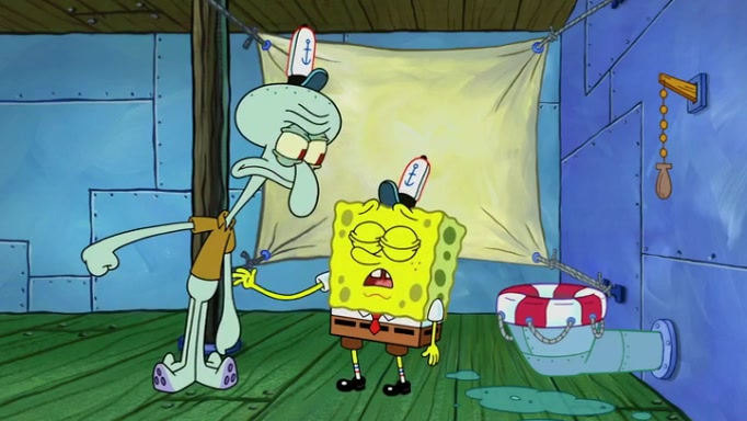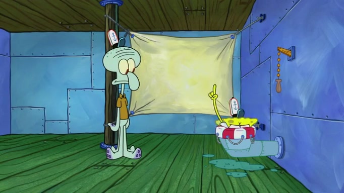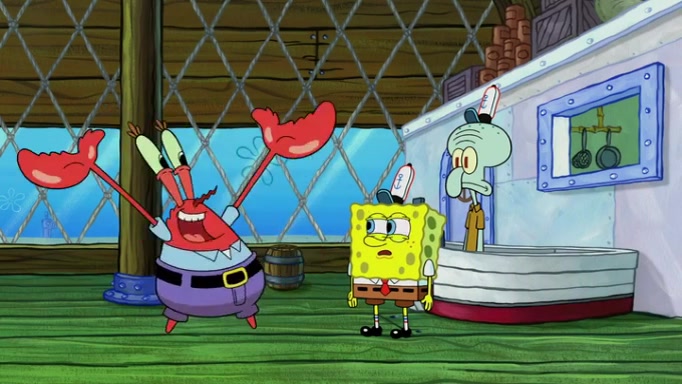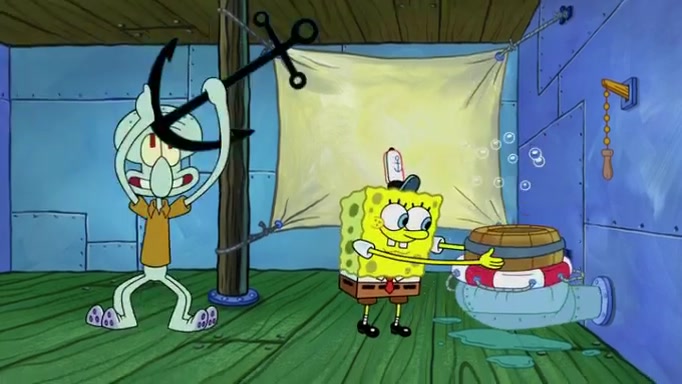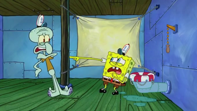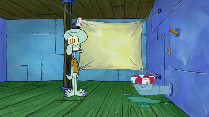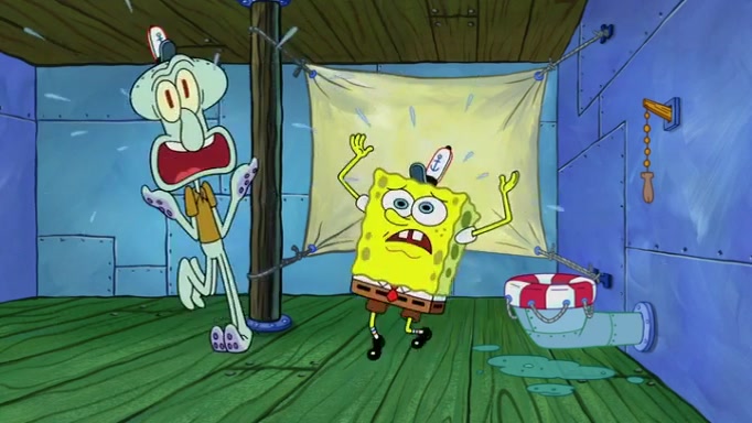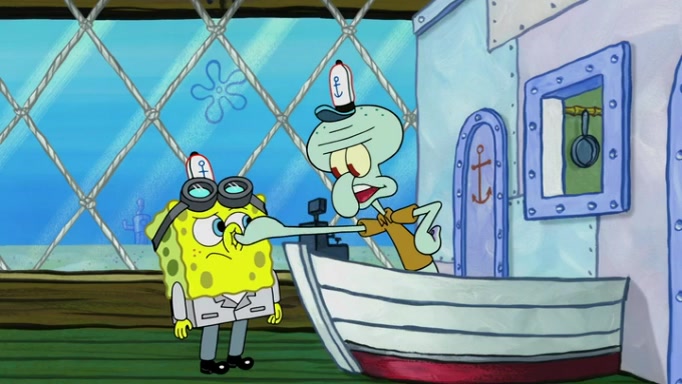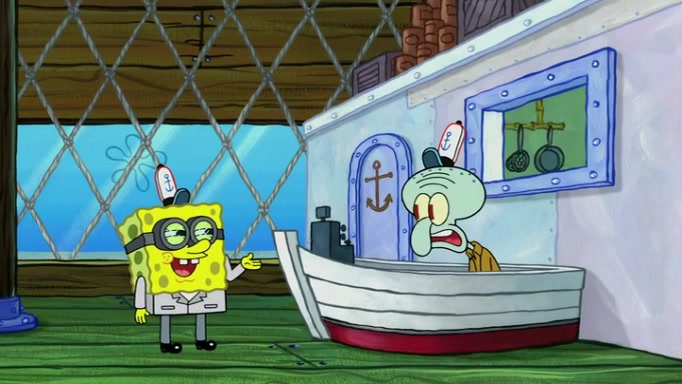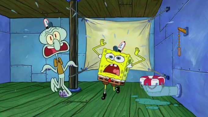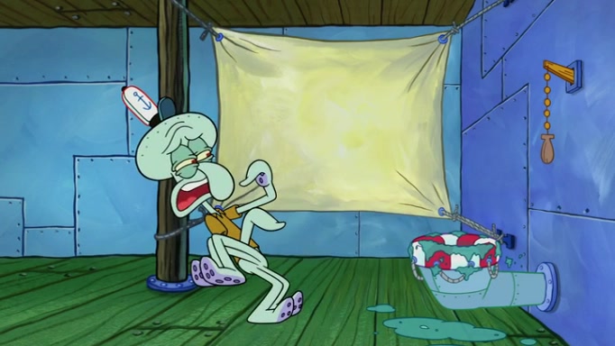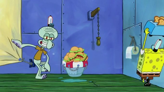 The episode opens at the Krusty Krab where SpongeBob and Squidward are working and Mr. Krabs comes to tell them that Bikini Bottom's newest stadium will be named after the Krusty Krab. He then tells them that employees have to stay at the Krusty Krab to keep working. Mr. Krabs puts Squidward in charge of the Krusty Krab while he is gone and he leaves. SpongeBob wakes up a sleeping Squidward asking for jobs to do. Squidward tries to find some work but notices SpongeBob has did most of them already. Squidward then has SpongeBob clean some more but he does all of the work in seconds. Squidward, after running out of ideas, tasks SpongeBob to flush things down the toilet and SpongeBob goes into the bathroom to do so. Squidward realizes his mistake and tries to stop SpongeBob. SpongeBob flushes a mop down the toilet and Squidward finds it exciting. He and SpongeBob then flush various objects down the toilet but are horrified after accidentally flushing down Mr. Krabs' safe which contains the Krabby Patty Secret Formula. SpongeBob decides to flush himself to go and get it and Squidward, realizing he needs SpongeBob to cook the Krabby Patties for the customers, follows SpongeBob down the toilet.