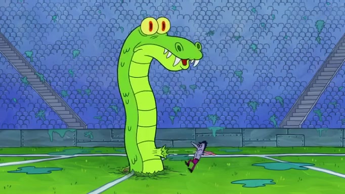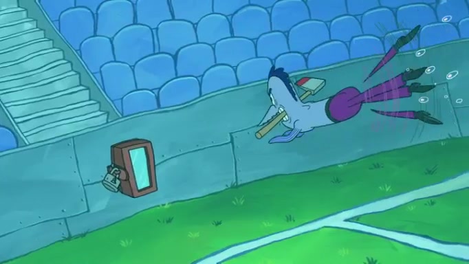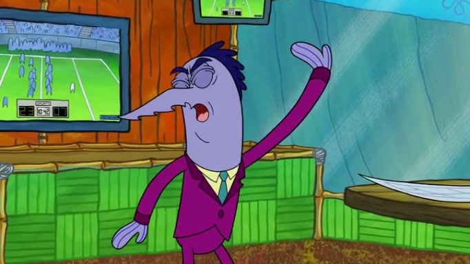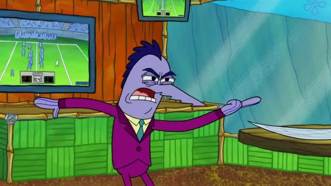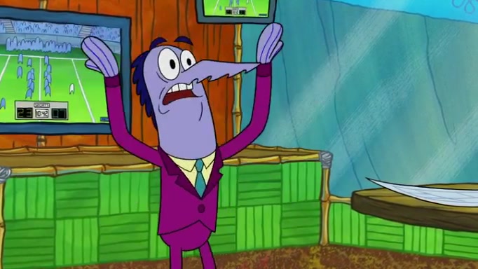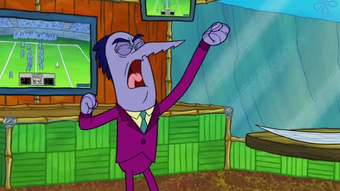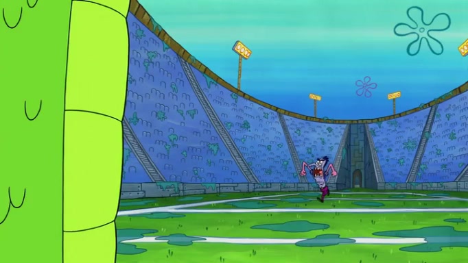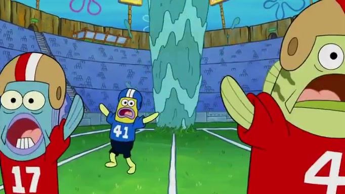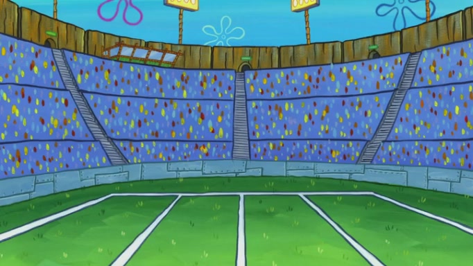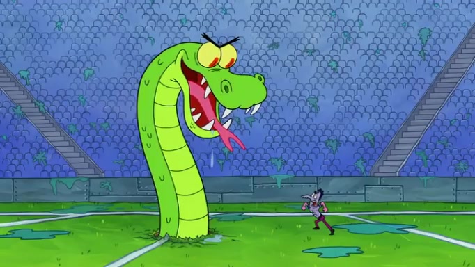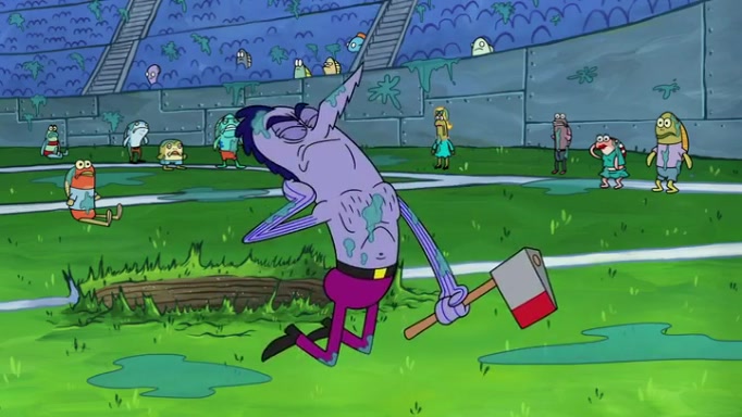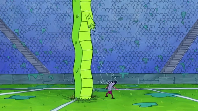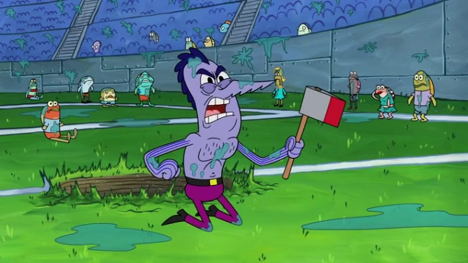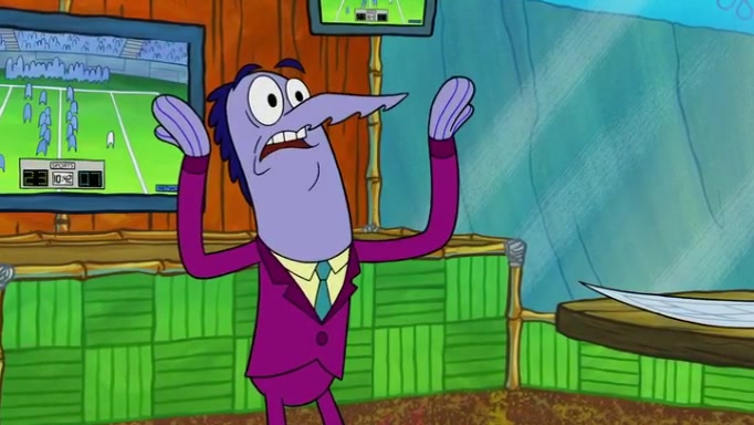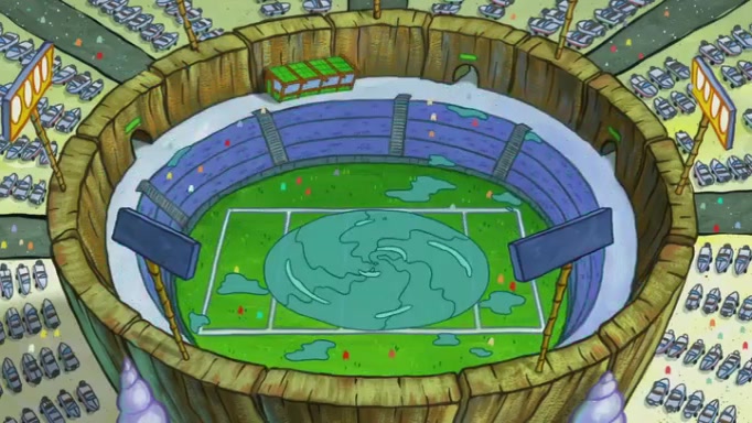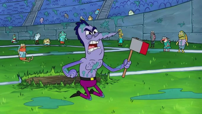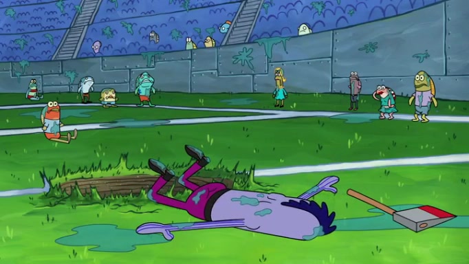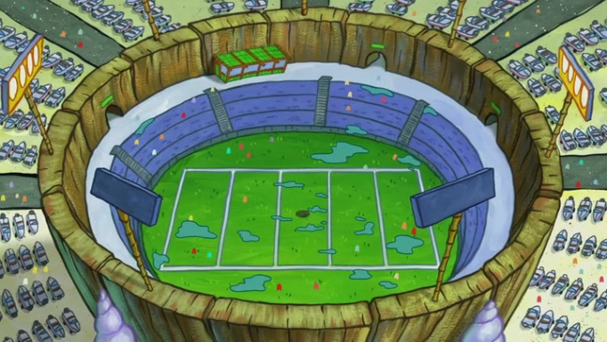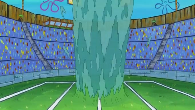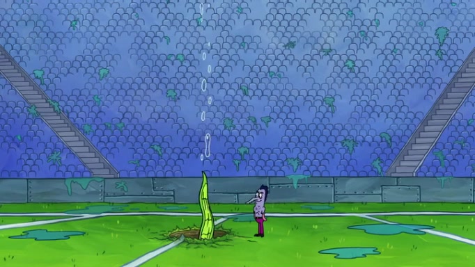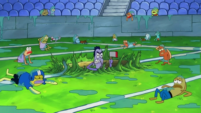 Back at the stadium, Charlton warns Mr. Krabs and Crupski that it's time for the "halftime wave" where every toilet flushes at once. Mr. Krabs ignores this and continues to watch the game. Back in the sewers, SpongeBob and Squidward are seen running away from the sewer snake but end up running inside of it. Squidward, afraid, starts to run around frantically and SpongeBob spots the safe nearby trying to inform Squidward of it. Eventually, the sewer snake vomits up SpongeBob, Squidward, and the safe where it lands on Squidward's head. Meanwhile, everyone at the Krusty Krab Stadium start to use the restrooms where Charlton warns that the pipes are going to burst. However, the pipes do burst and large amounts of water pour inside of the stadium. Charlton dives underwater and activates his fail safe which is a giant plunger that plunges away all of the water. Charlton blames Mr. Krabs' cheapness for causing the problems and the sewer snake rises above in the stadium. However, Charlton uses his nose to pop the sewer snake and it goes back into the sewers. SpongeBob and Squidward end up back in the Krusty Krab in the safe where they are ready to get back to work. However, the customers all run out screaming.