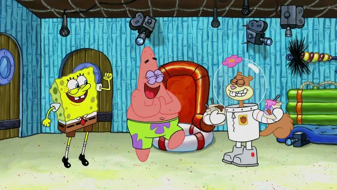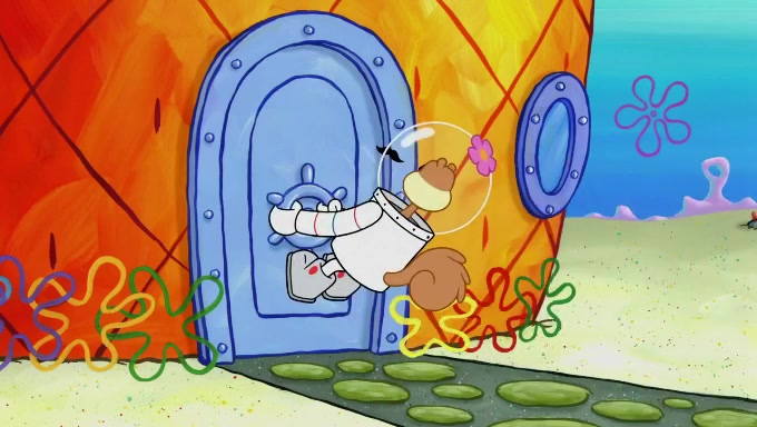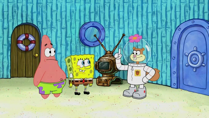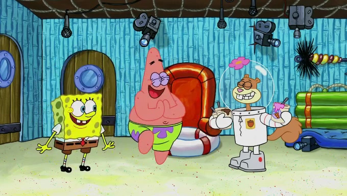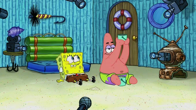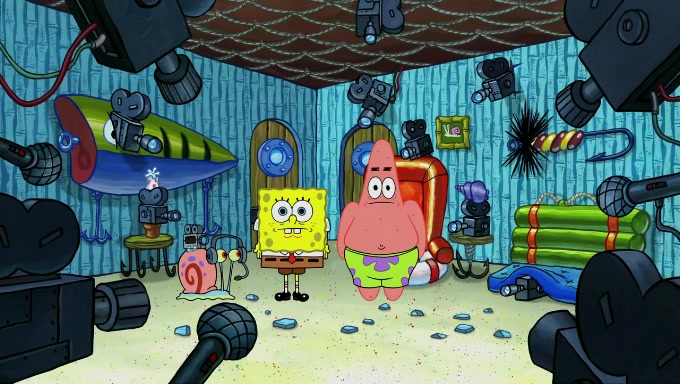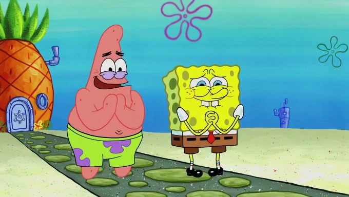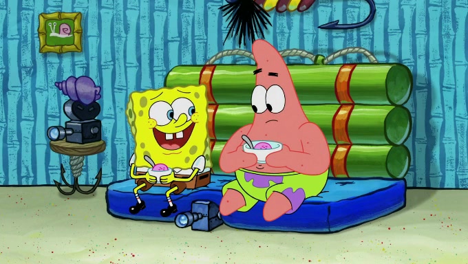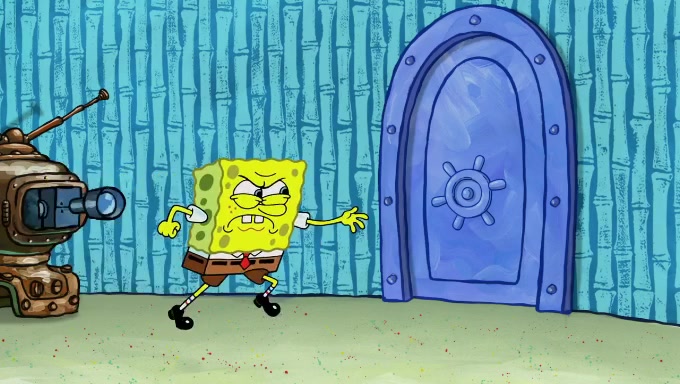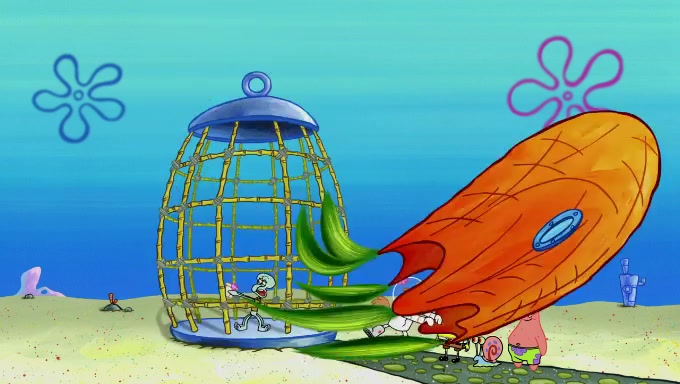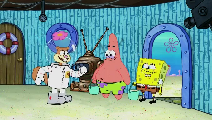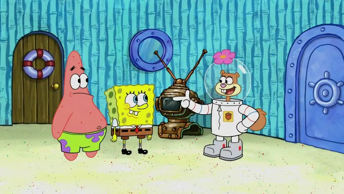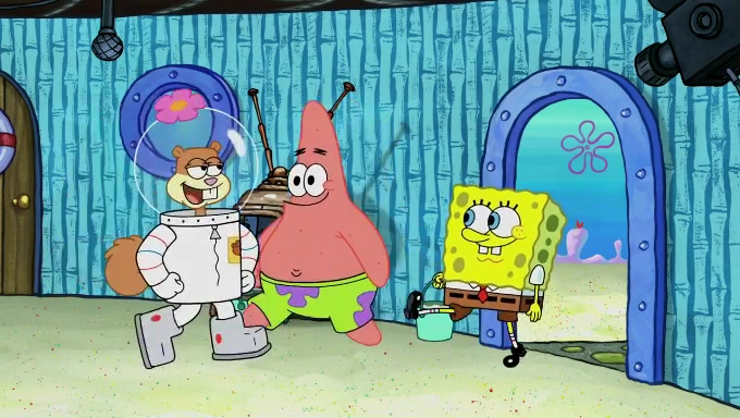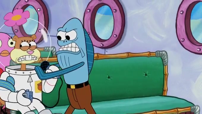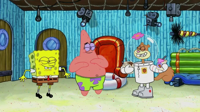 Sandy then realizes Patrick is taking advantage of his privileges and taking advantage of SpongeBob due to his power of being in charge. SpongeBob angrily fights back, with Gary telling Sandy that the situation is bad. She runs towards the door and asks them to open it, but they have a fight about who opens it for her and she is forced to break the door down. Still wearing the mustache, Patrick believes that she is a real ice cream lady and asks her to tell SpongeBob to open the door. She then reveals herself to Patrick, shocking him. Sandy reveals her experiment towards SpongeBob and Patrick. She shows them the cameras and microphones which leads to their affected behavior again, with SpongeBob upset that Gary was in on it too. Upon hearing this, Patrick realized that he got carried away with being in charge and apologized to SpongeBob for his selfish behavior with him saying that he deserved a Z-. SpongeBob tells him not to be so hard on himself as it was the experiment's fault, causing Patrick to blame science. Sandy tells them that they all get an A+ and ice cream. The episode wraps up to Squidward who is begging for a drop of the ice cream which Sandy, SpongeBob, Patrick, and Gary all ate, and they end up observing Squidward's desire for the ice cream in the house, now revealed to be a cage.