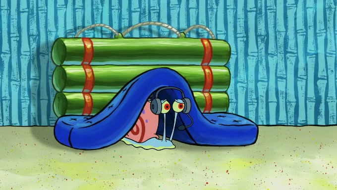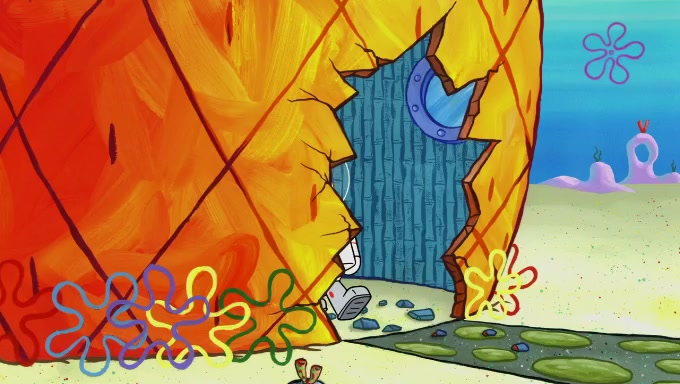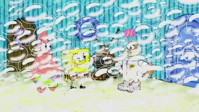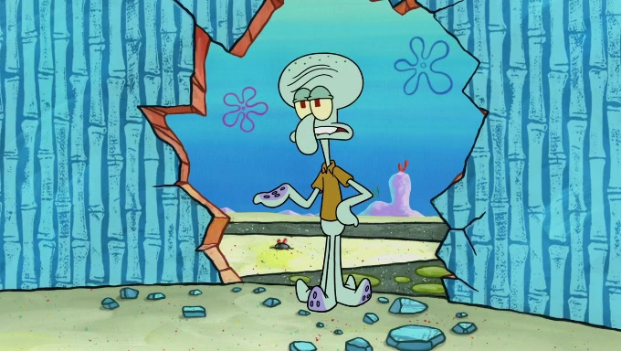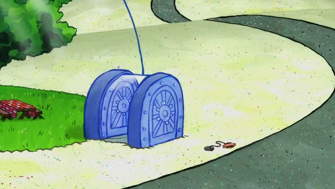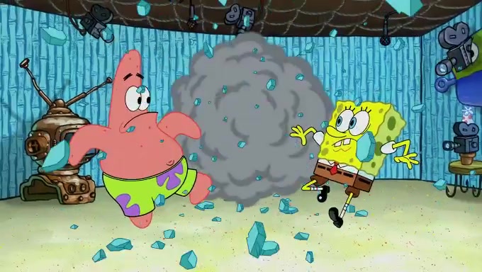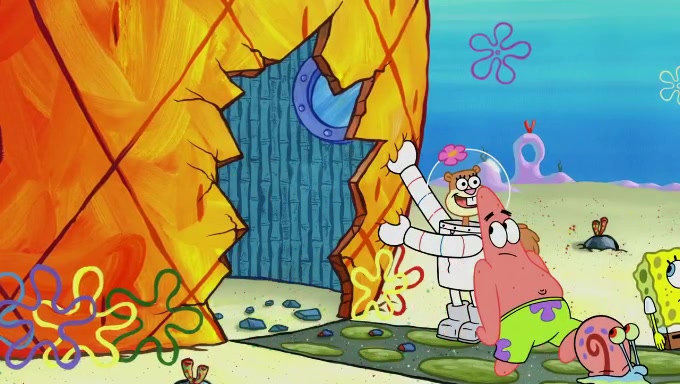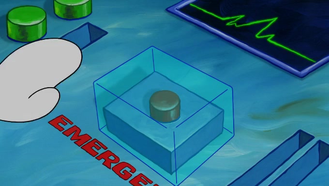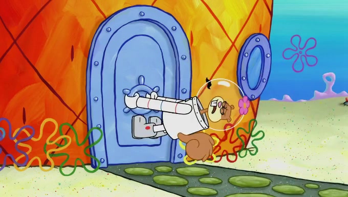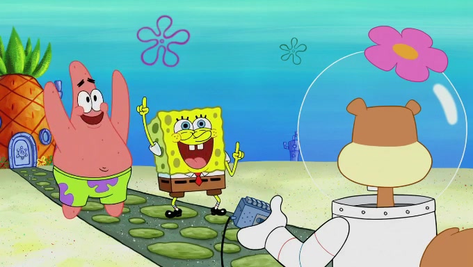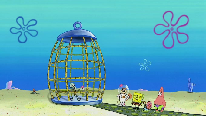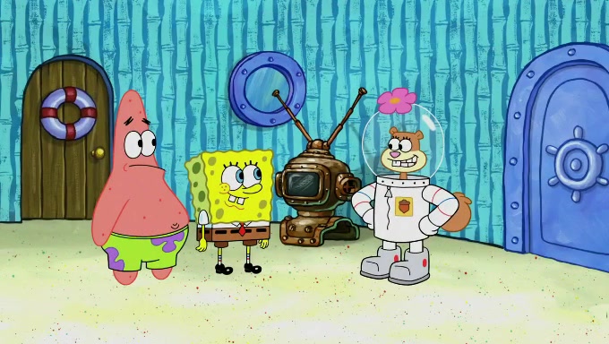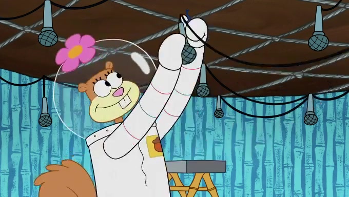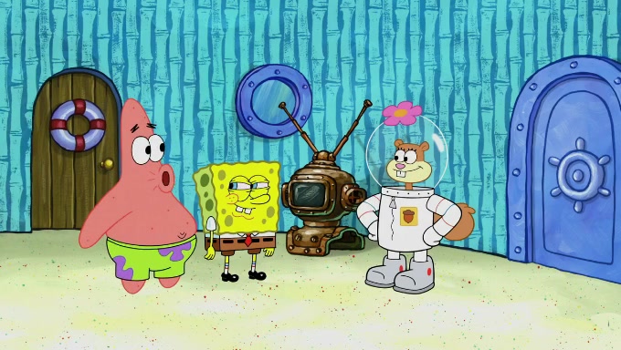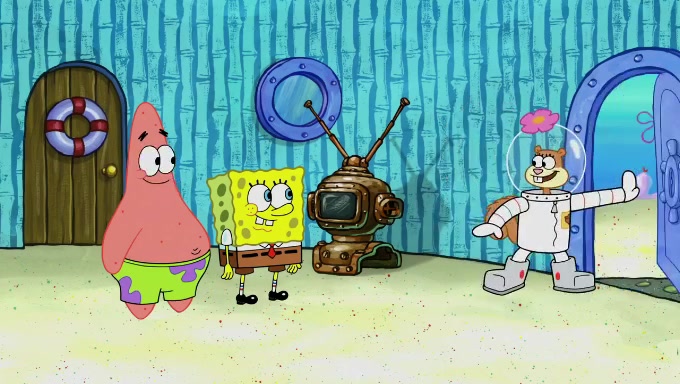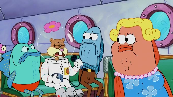 Sandy then realizes Patrick is taking advantage of his privileges and taking advantage of SpongeBob due to his power of being in charge. SpongeBob angrily fights back, with Gary telling Sandy that the situation is bad. She runs towards the door and asks them to open it, but they have a fight about who opens it for her and she is forced to break the door down. Still wearing the mustache, Patrick believes that she is a real ice cream lady and asks her to tell SpongeBob to open the door. She then reveals herself to Patrick, shocking him. Sandy reveals her experiment towards SpongeBob and Patrick. She shows them the cameras and microphones which leads to their affected behavior again, with SpongeBob upset that Gary was in on it too. Upon hearing this, Patrick realized that he got carried away with being in charge and apologized to SpongeBob for his selfish behavior with him saying that he deserved a Z-. SpongeBob tells him not to be so hard on himself as it was the experiment's fault, causing Patrick to blame science. Sandy tells them that they all get an A+ and ice cream. The episode wraps up to Squidward who is begging for a drop of the ice cream which Sandy, SpongeBob, Patrick, and Gary all ate, and they end up observing Squidward's desire for the ice cream in the house, now revealed to be a cage.