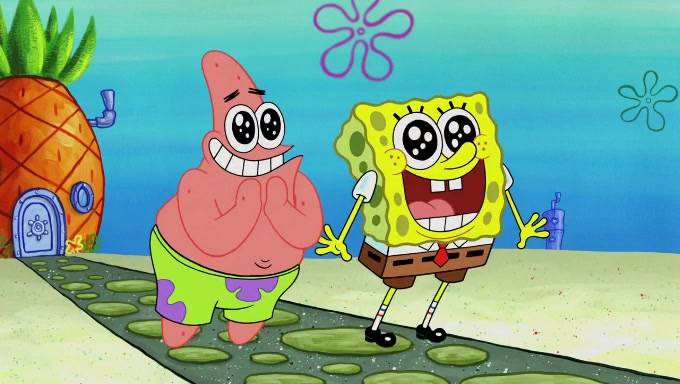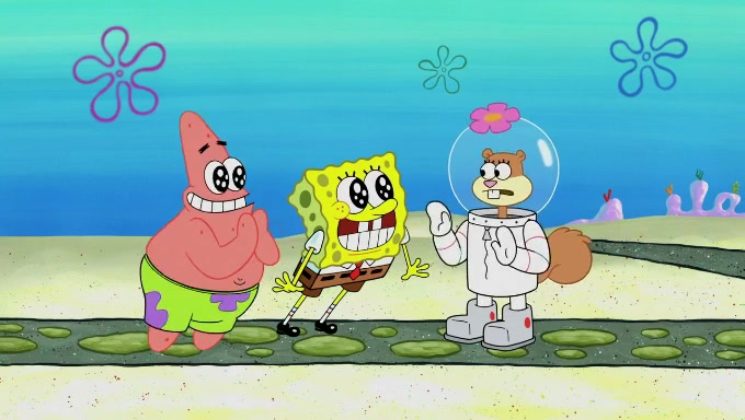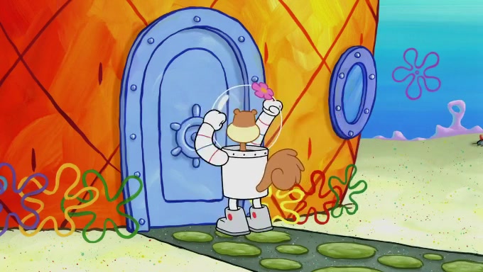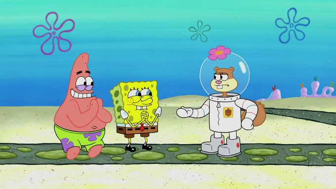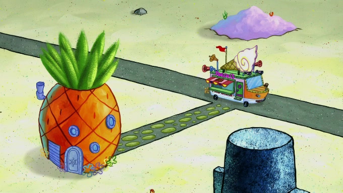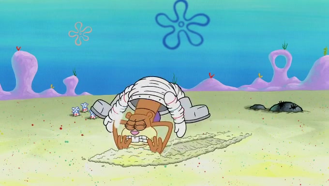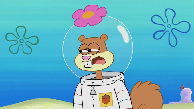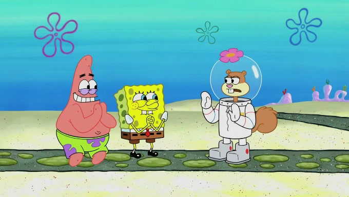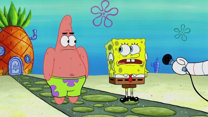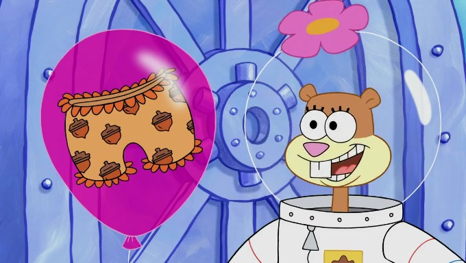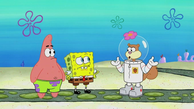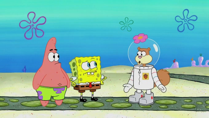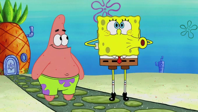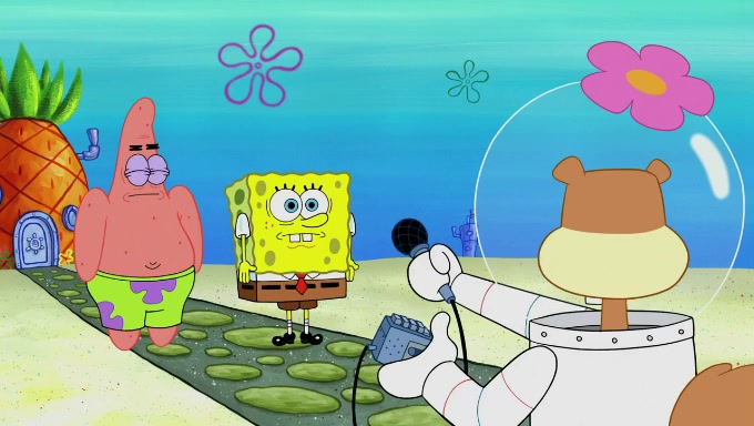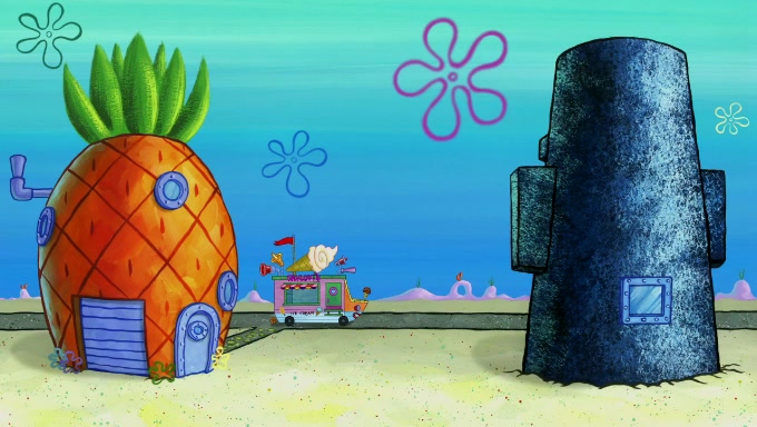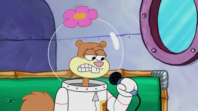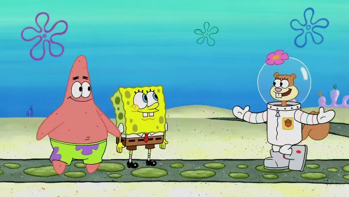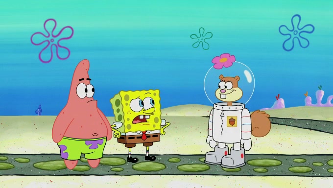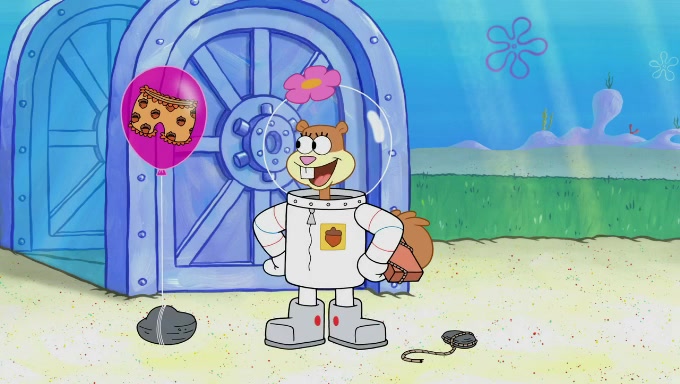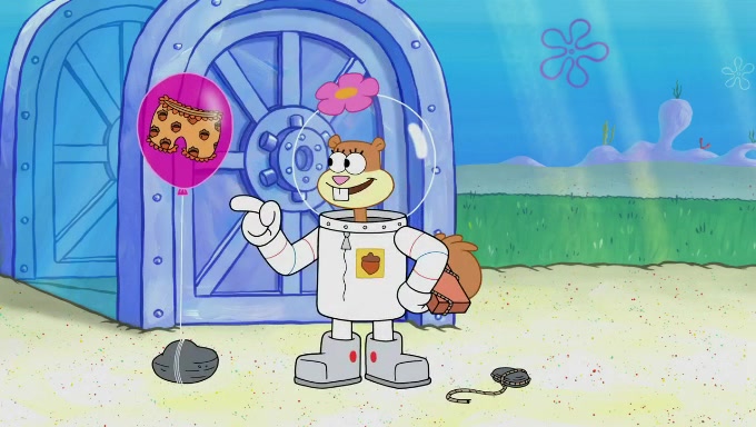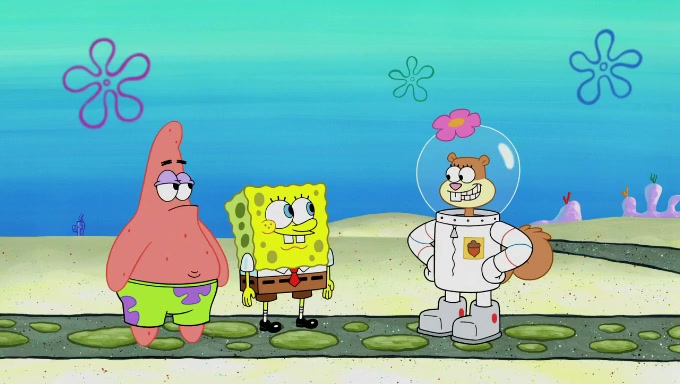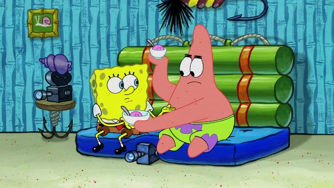 Sandy then starts her second experiment by putting two scoops of the same amount of ice cream into two different sized bowls to confuse Patrick, which she gives to the two disguised as a mustached ice cream man. Squidward tries to get the ice cream, but when he comes, Sandy says the ice cream is sold out and slams the window on his nose, leaving him annoyed. Patrick likes the bigger bowl but believes the ice cream in the other bowl is bigger and SpongeBob and Patrick constantly trade before Patrick says the only way for it to be fair is for him to eat both, causing SpongeBob to protest before Patrick selfishly reminds him that he is in charge.