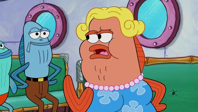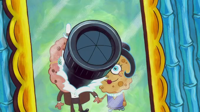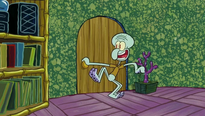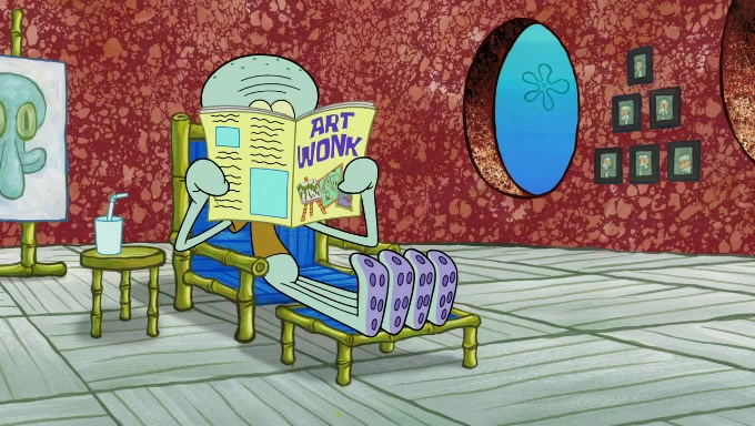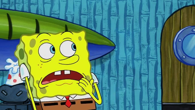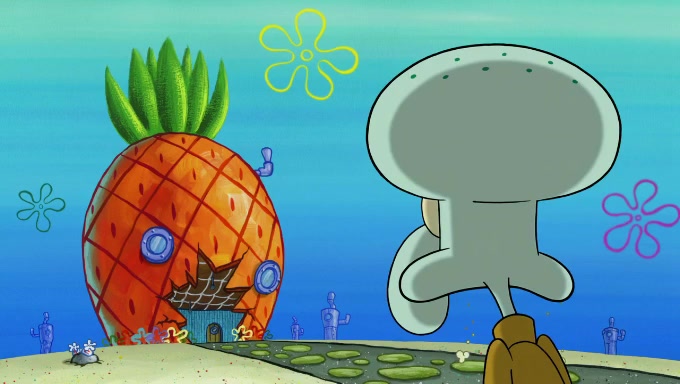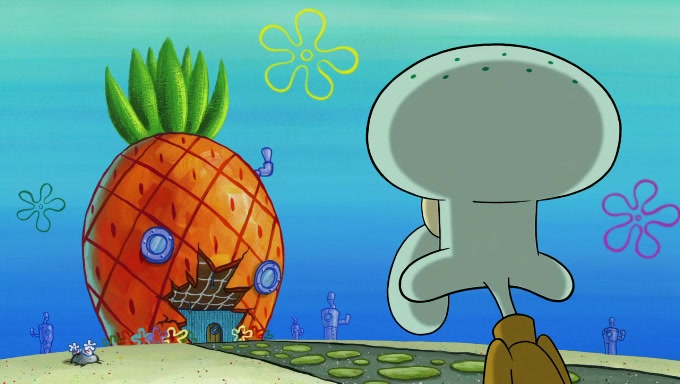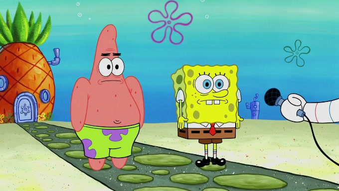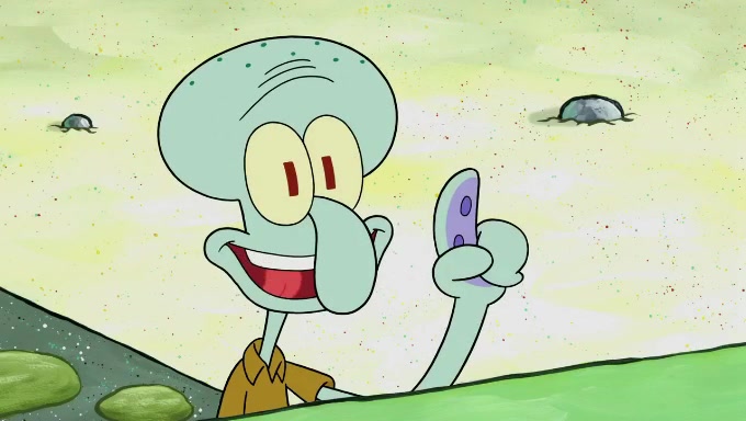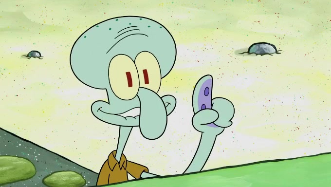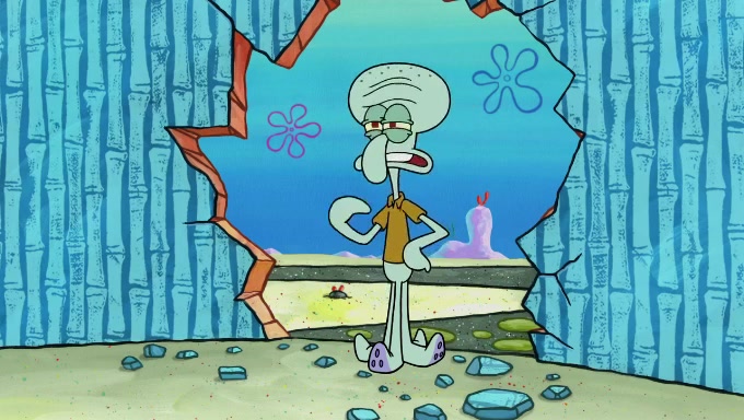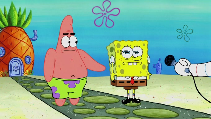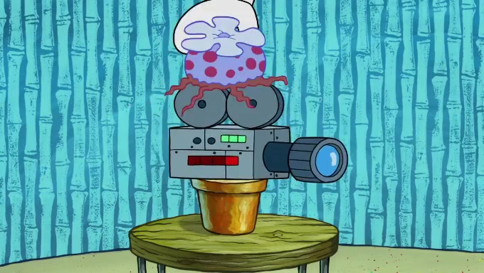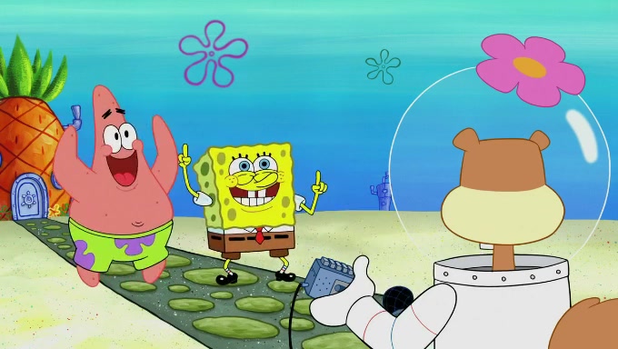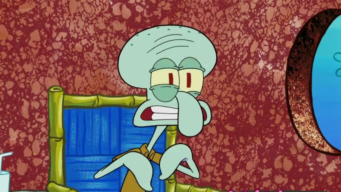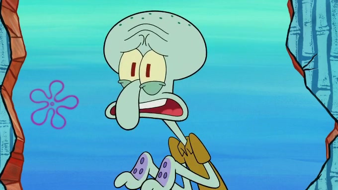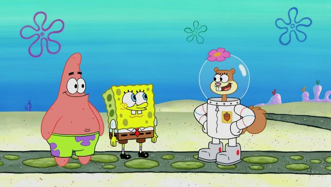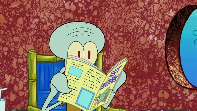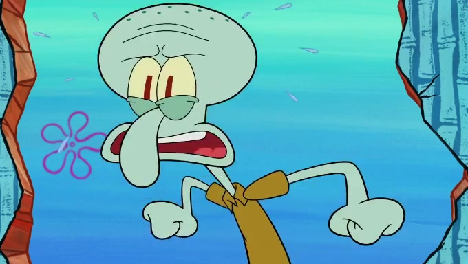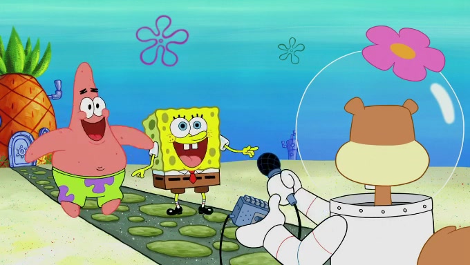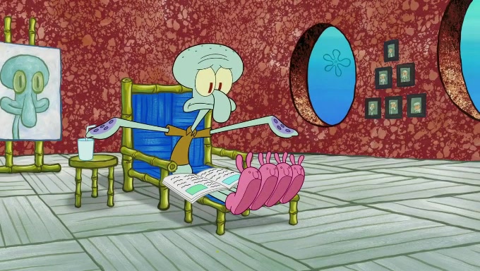 Sandy then starts her second experiment by putting two scoops of the same amount of ice cream into two different sized bowls to confuse Patrick, which she gives to the two disguised as a mustached ice cream man. Squidward tries to get the ice cream, but when he comes, Sandy says the ice cream is sold out and slams the window on his nose, leaving him annoyed. Patrick likes the bigger bowl but believes the ice cream in the other bowl is bigger and SpongeBob and Patrick constantly trade before Patrick says the only way for it to be fair is for him to eat both, causing SpongeBob to protest before Patrick selfishly reminds him that he is in charge.