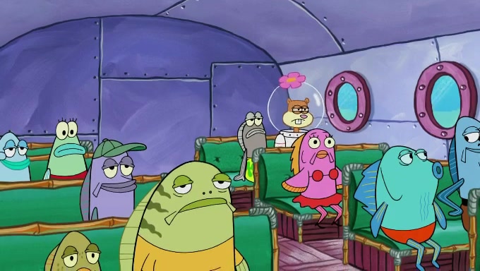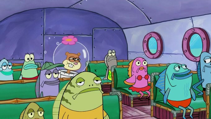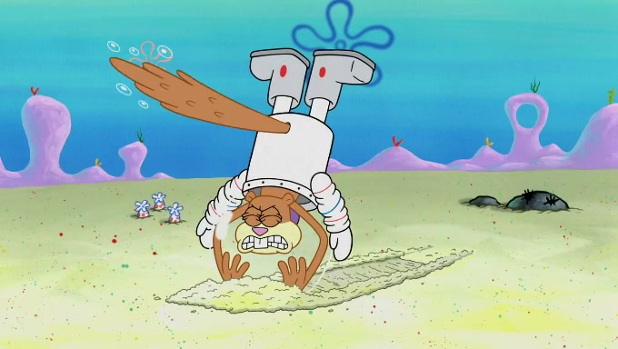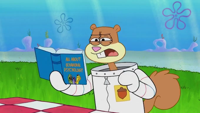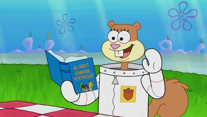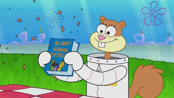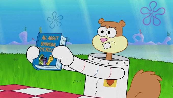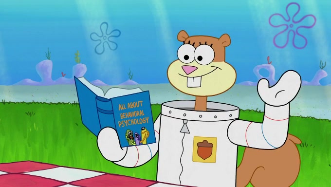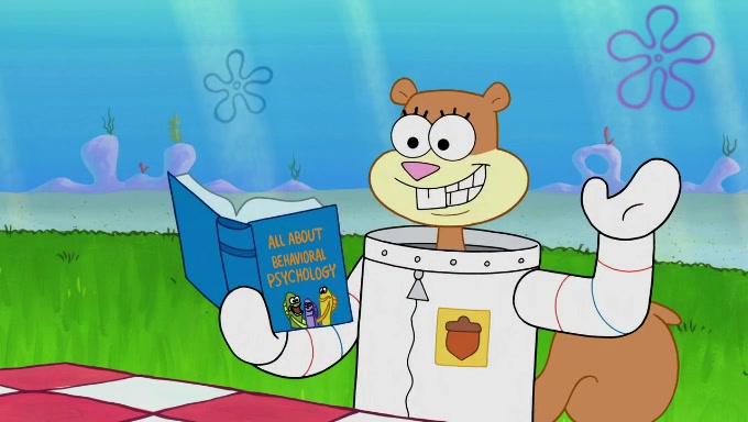 The episode starts off with Sandy sitting in her pool lounge chair listening to music when suddenly a book she ordered arrives at her dome. The book is about behavioral psychology, which Sandy uses to observe the behavior of fishes underwater. She begins off by riding a bus full of fish, who seem to act naturally. However, she disturbs and annoys the Bikini Bottomites by eavesdropping and reading her observations out loud. The fish throw her and her equipment out of the bus and she decides to find someone who will not mind being observed. She then sees SpongeBob and Patrick playing with each other and decides to ask them since they do not mind being test subjects in her experiments. The two both don't know what they're supposed to do during natural observance and just stand straight while saying actions and forms of the word "natural". They are also very nervous due to the microphone and recorder; the nervousness immediately goes away when Sandy ends her experiment. Despite her experiment being unsuccessful, she gives them both an A+ for their effort and when they start cheering, she observes them again, only to provoke the same reaction. She proceeds to give up.