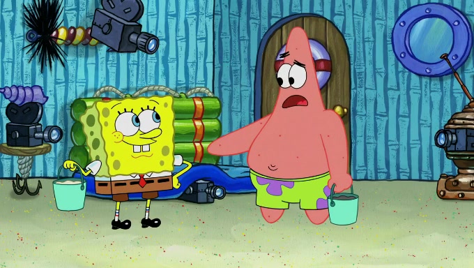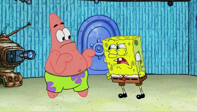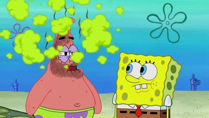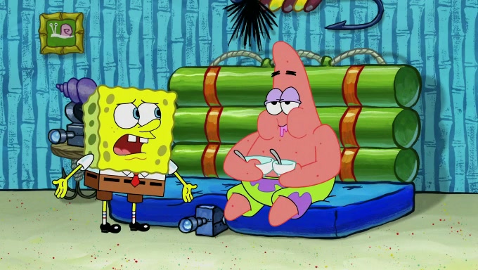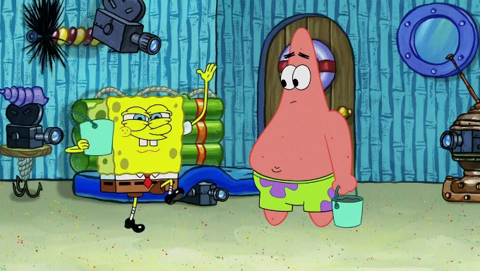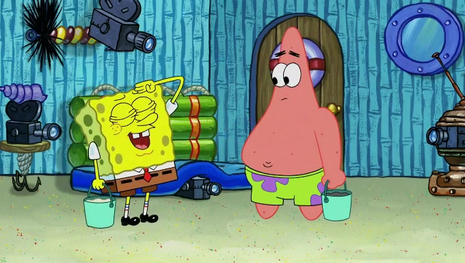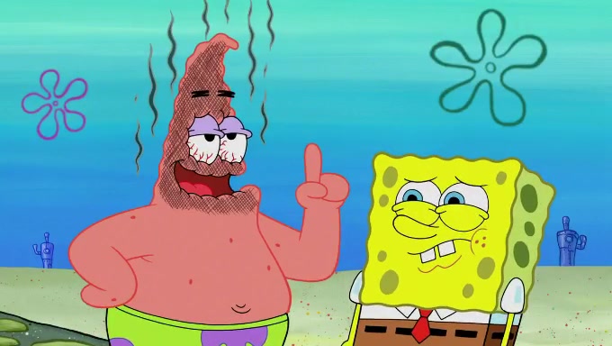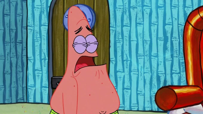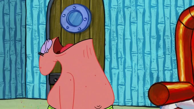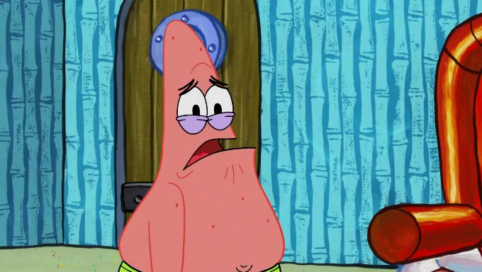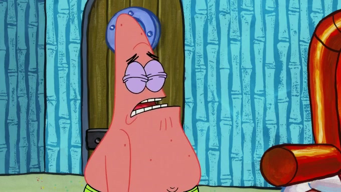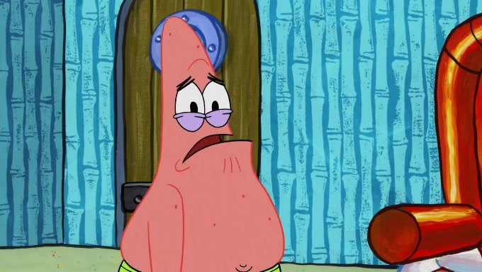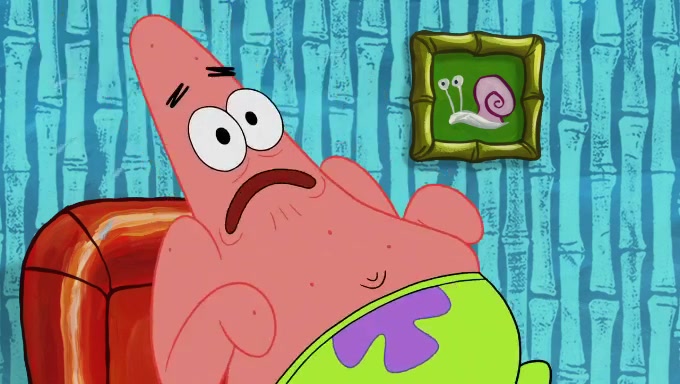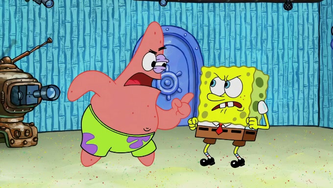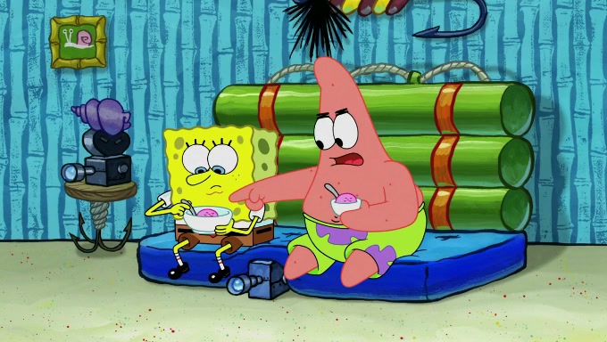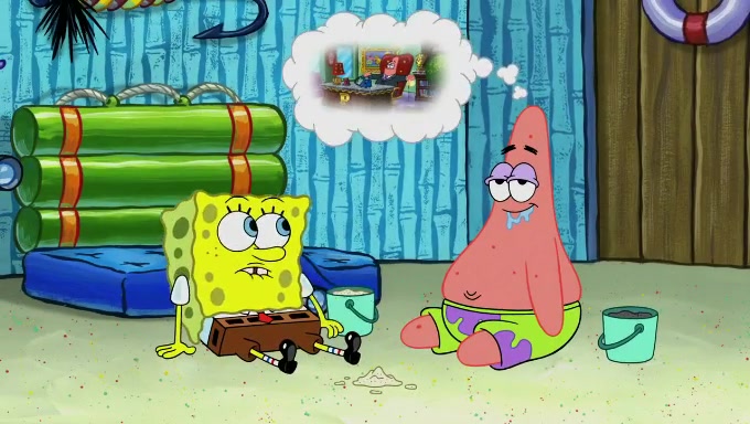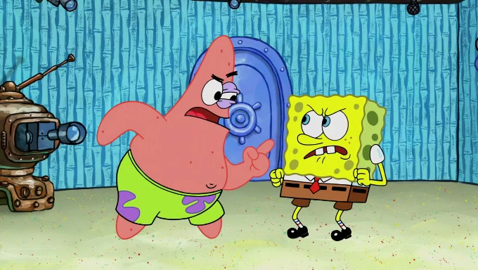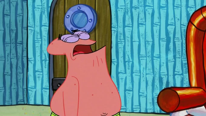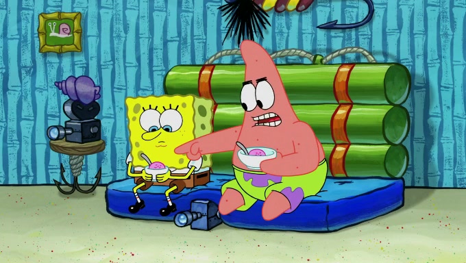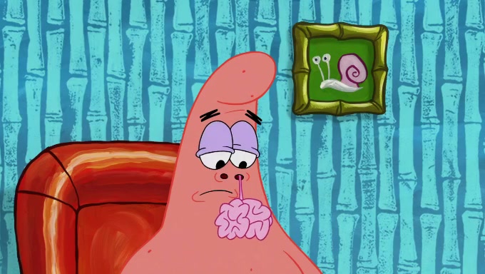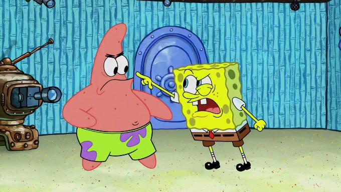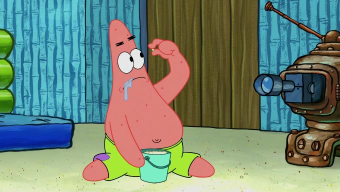 When SpongeBob and Patrick get back home, Patrick is unable to stop thinking about being in charge. SpongeBob asks which method they will use to count the sand, but Patrick does not pay attention and continues to think about the phrase "I'm in charge." After SpongeBob asks how he wants to count the sand, he simply says that first suggestion, which is both of them counting the white sand first and then the black sand. While counting the sand, Patrick continues to think about being in charge and imagines himself running an organization called "Patrick Corp.". When SpongeBob snaps him back into reality, having been stuck at 47 grains, Patrick decides he doesn't like how they are doing it and has SpongeBob count the black sand while he counts the white sand. He has trouble counting the sand but SpongeBob does it flawlessly. Patrick then makes the error of missing the digit in the tens place as SpongeBob has the same digit in the ones place as him, causing him to get frustrated with SpongeBob.