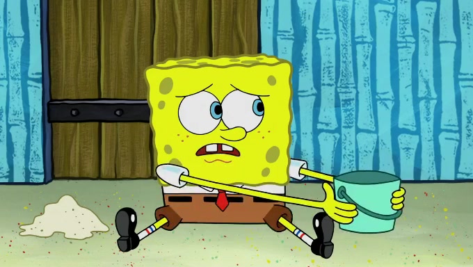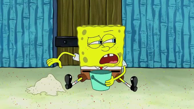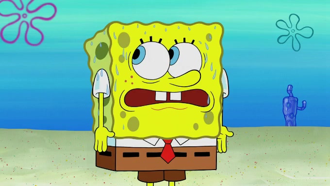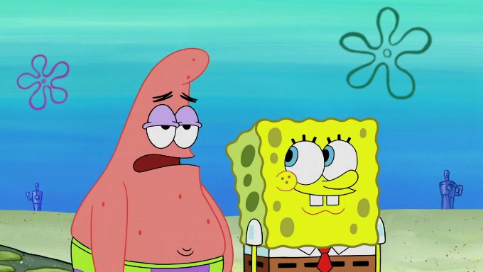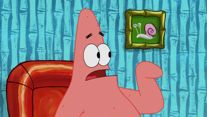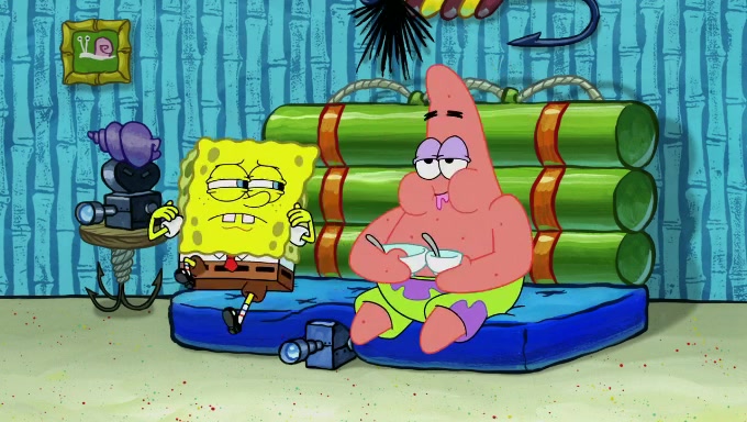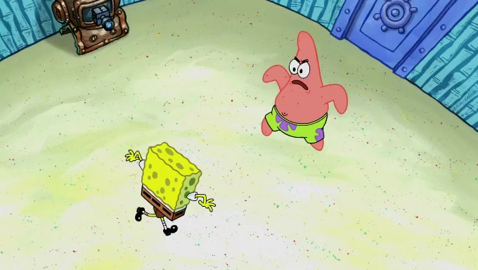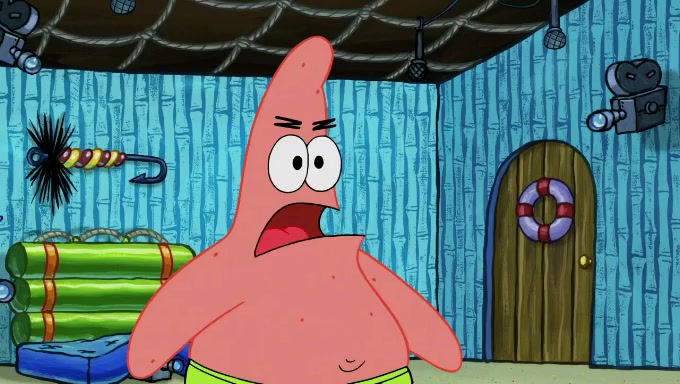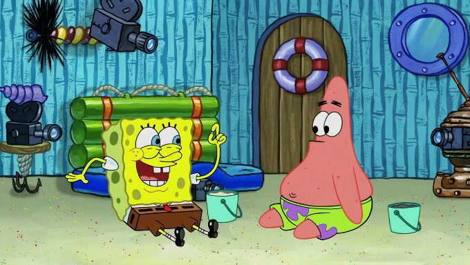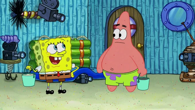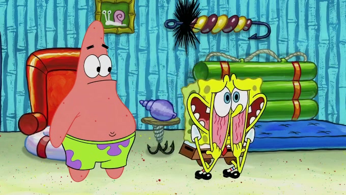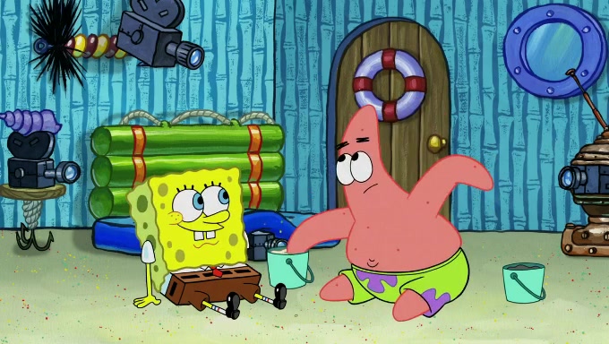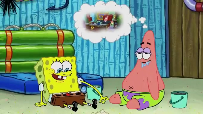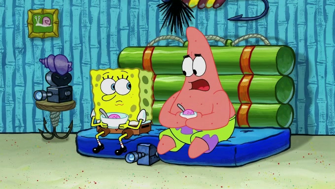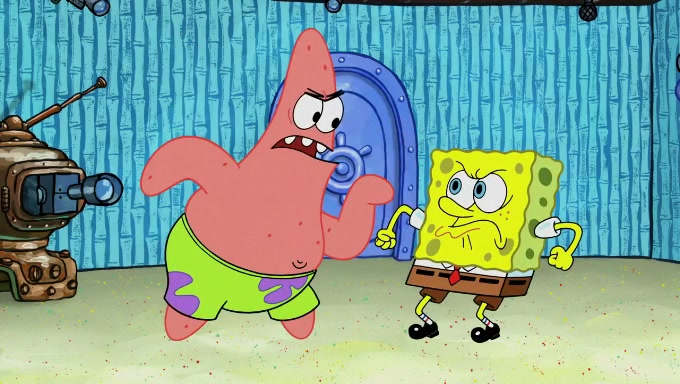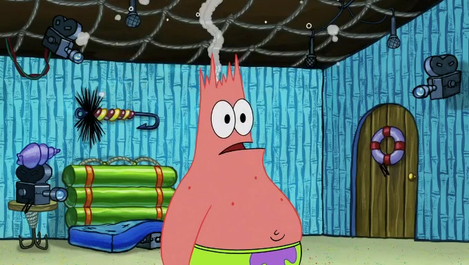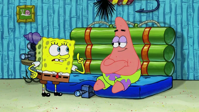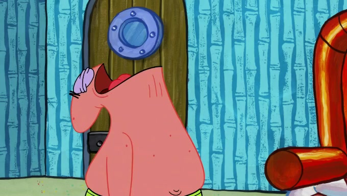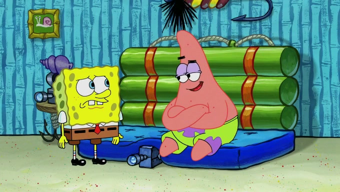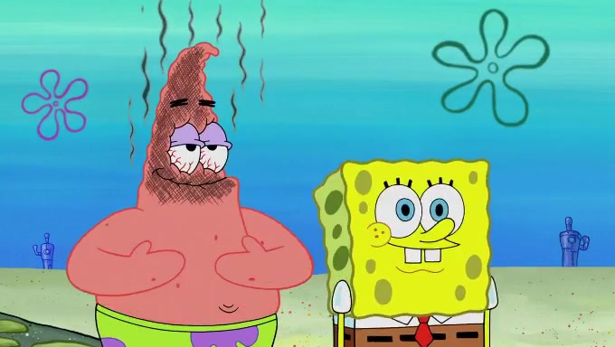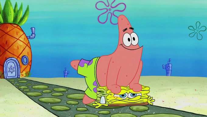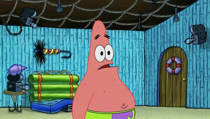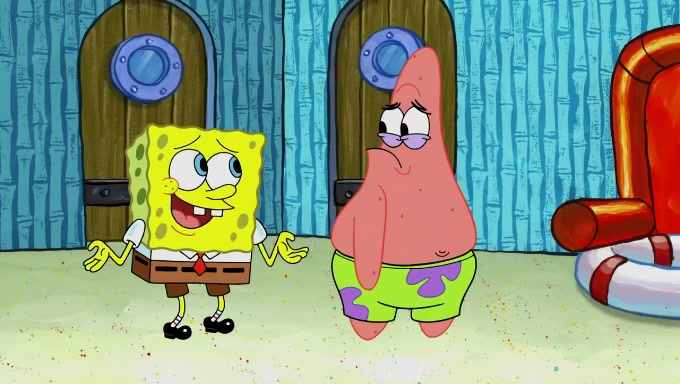 When SpongeBob and Patrick get back home, Patrick is unable to stop thinking about being in charge. SpongeBob asks which method they will use to count the sand, but Patrick does not pay attention and continues to think about the phrase "I'm in charge." After SpongeBob asks how he wants to count the sand, he simply says that first suggestion, which is both of them counting the white sand first and then the black sand. While counting the sand, Patrick continues to think about being in charge and imagines himself running an organization called "Patrick Corp.". When SpongeBob snaps him back into reality, having been stuck at 47 grains, Patrick decides he doesn't like how they are doing it and has SpongeBob count the black sand while he counts the white sand. He has trouble counting the sand but SpongeBob does it flawlessly. Patrick then makes the error of missing the digit in the tens place as SpongeBob has the same digit in the ones place as him, causing him to get frustrated with SpongeBob.