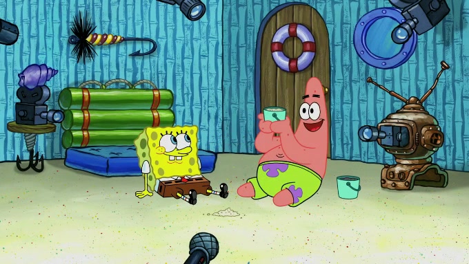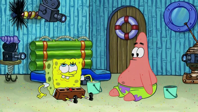 Reading from the book again, Sandy learns that the test subject will behave abnormally if they are aware that they are being watched and may cause inaccurate results, so she decides to watch them in secret. She starts off by assigning them to go to the beach, to fill one bucket with white sand and one bucket with black sand to count. She also puts Patrick in charge. After that, Sandy hides microphones and cameras everywhere, puts Gary in charge of spying on the two, and observes the cameras from a van disguised as an ice cream truck.