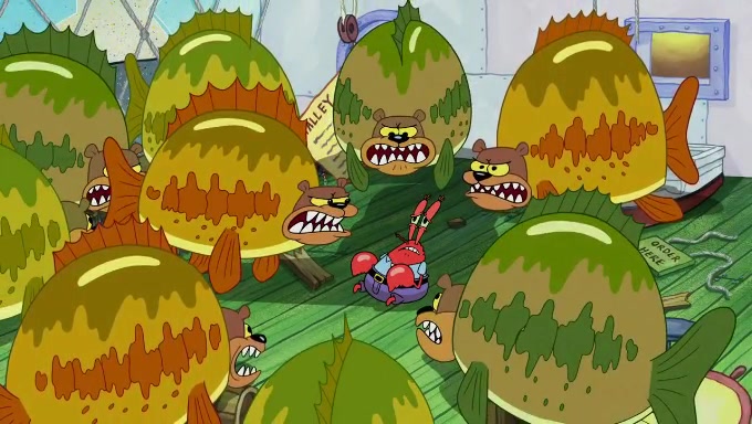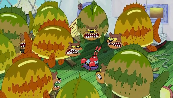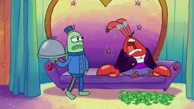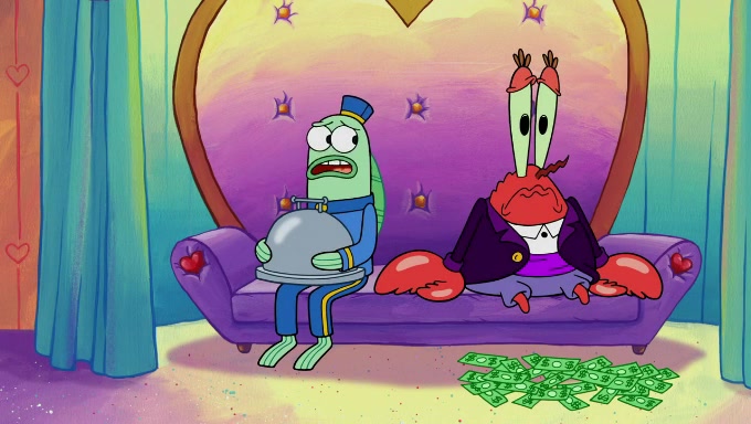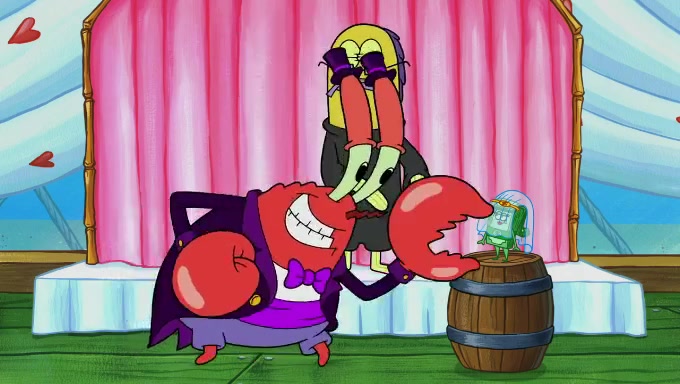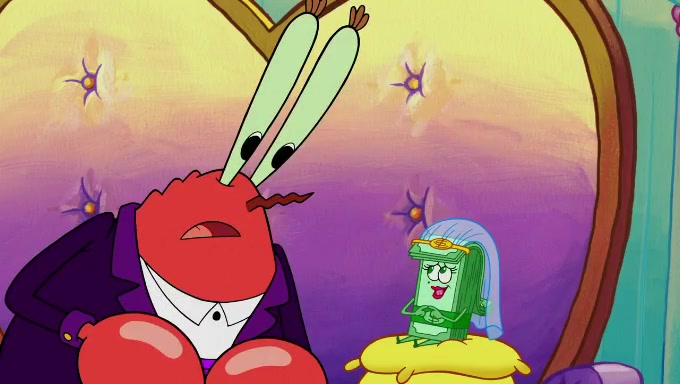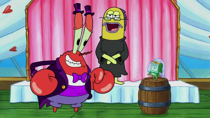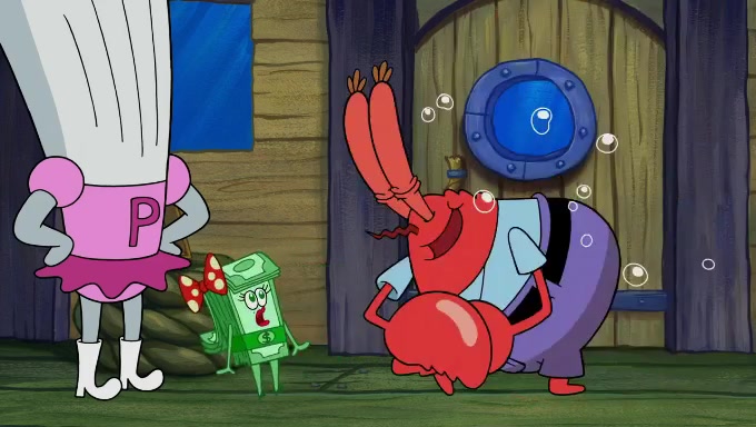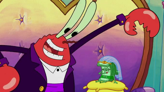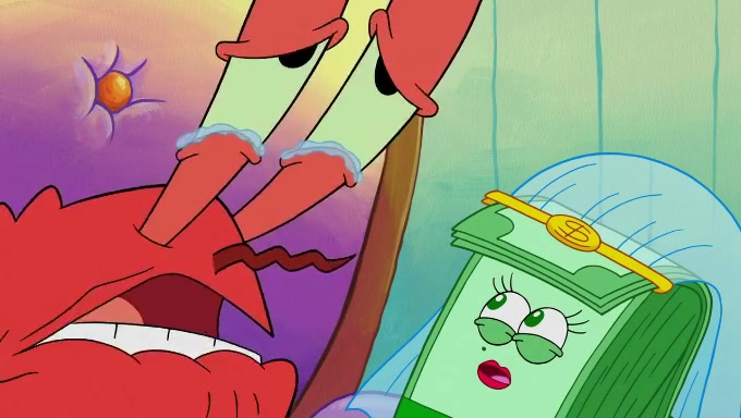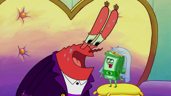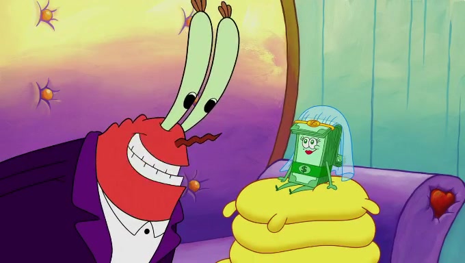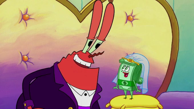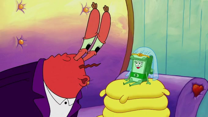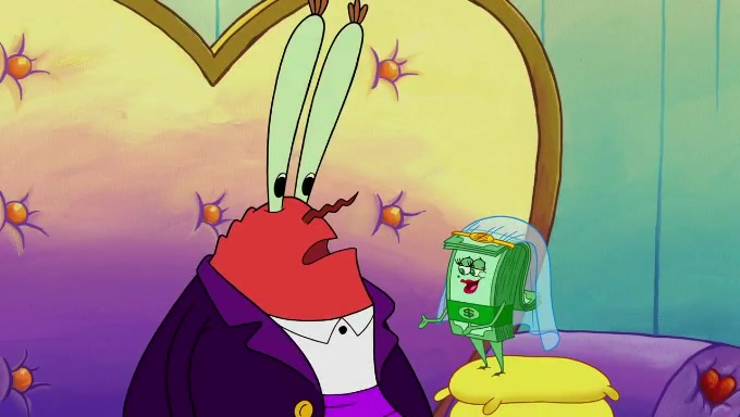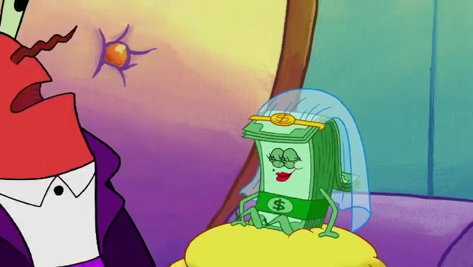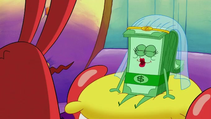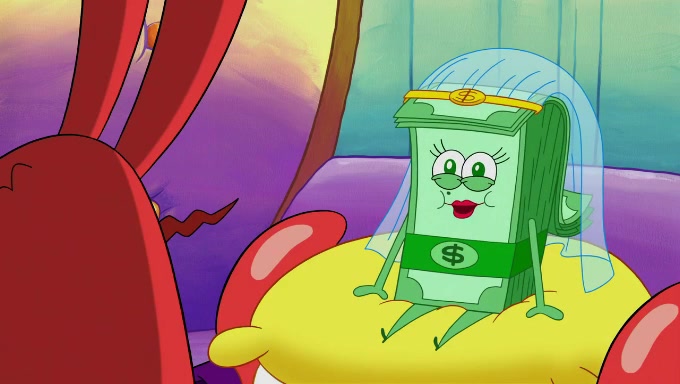 Plankton has another attempt to steal the Krabby Patty secret formula using sea bears, but SpongeBob stops him by tickling the sea bears and covering himself with Jellyfish Honey, which sea bears apparently crave. Then Plankton and Mr. Krabs argue, and after Mr. Krabs says that he likes money a lot, Plankton says, "If you love money so much, why don’t you marry it?" Mr. Krabs says that it's not such a bad idea, giving Plankton an idea.