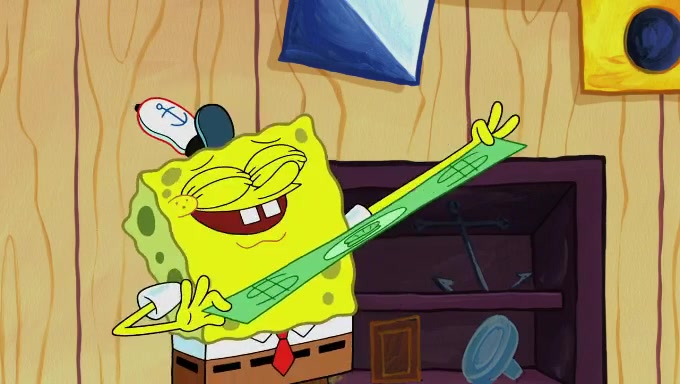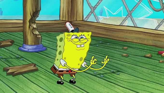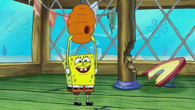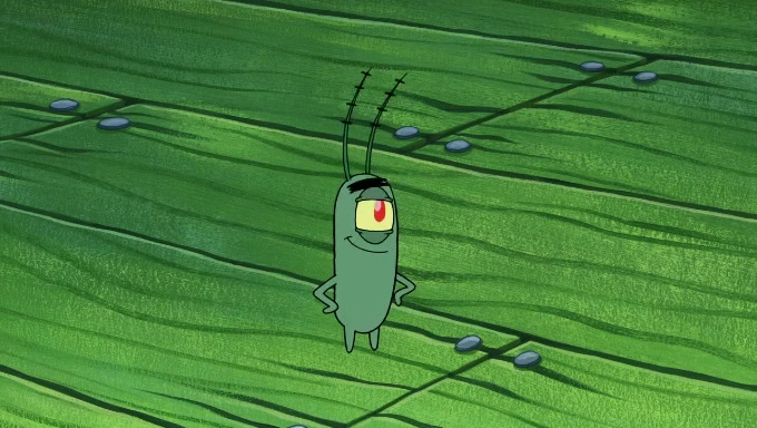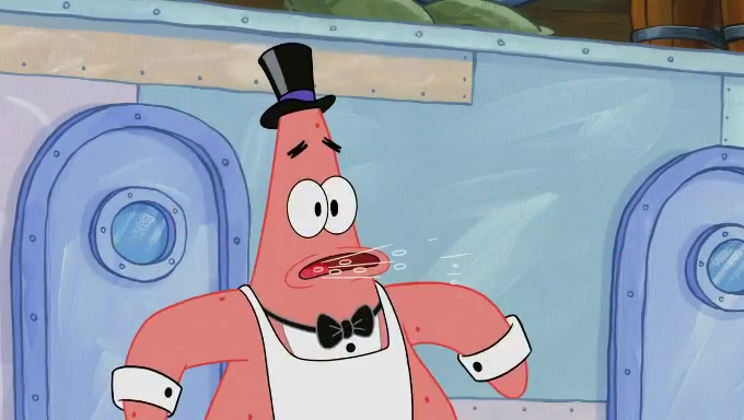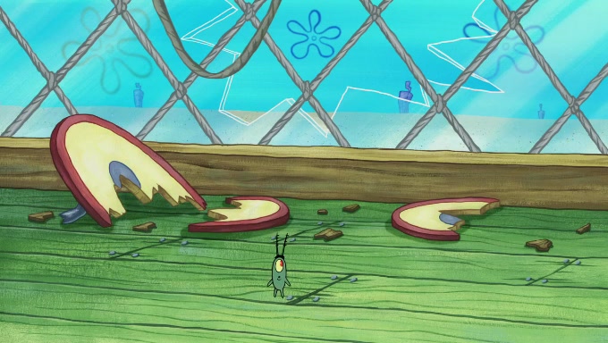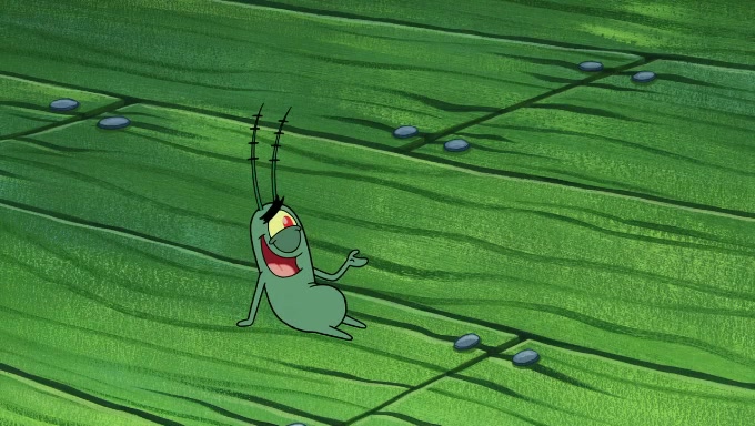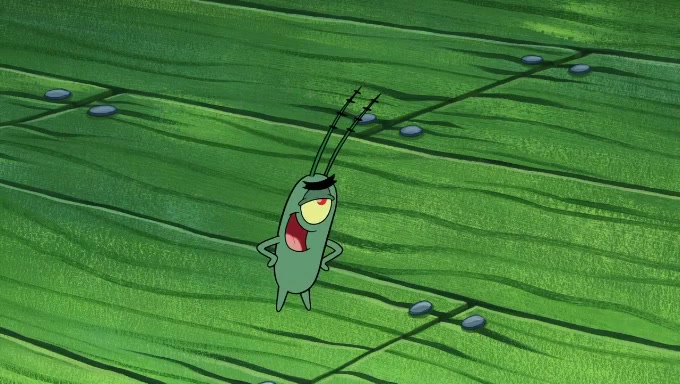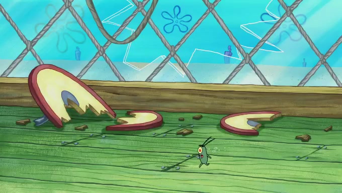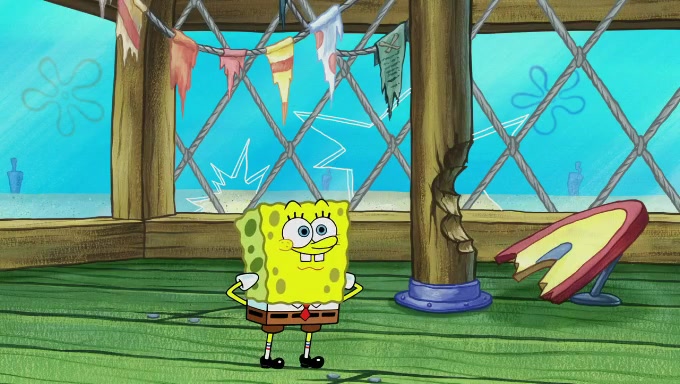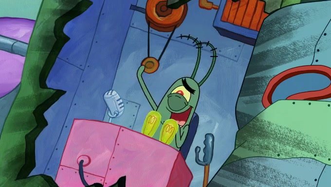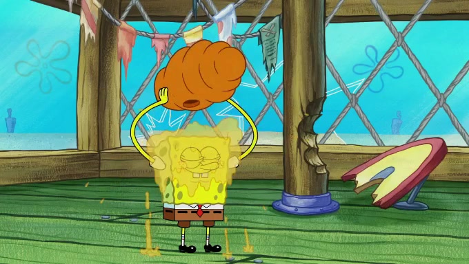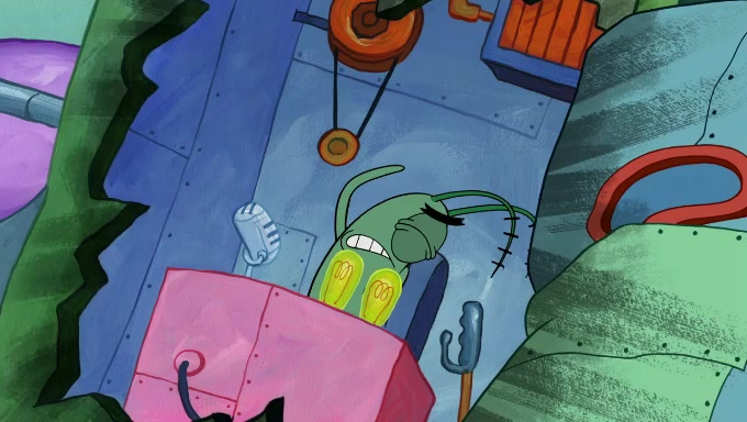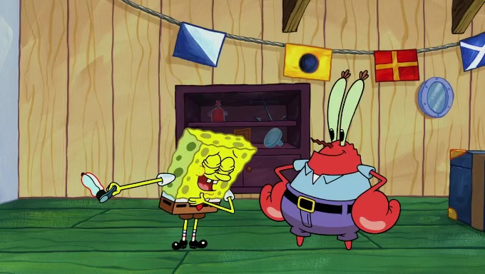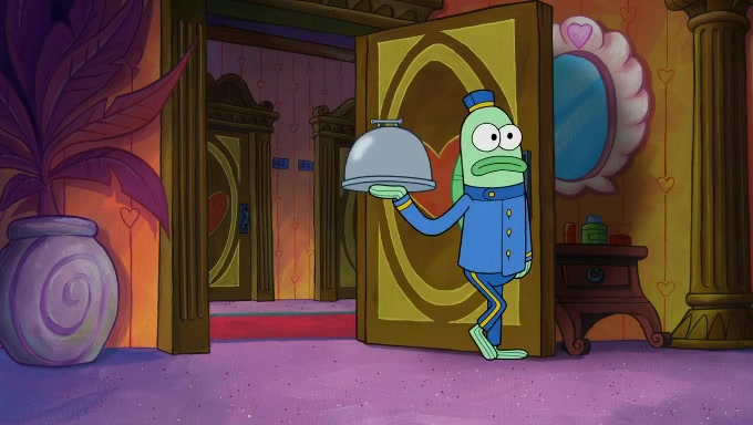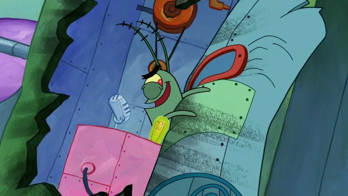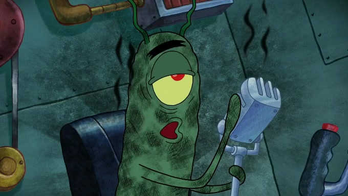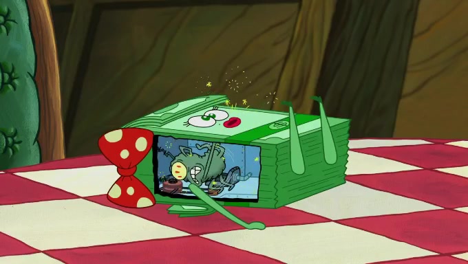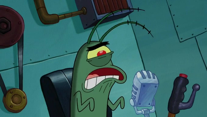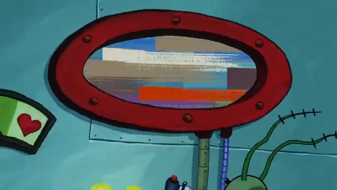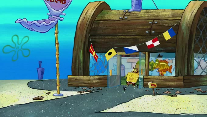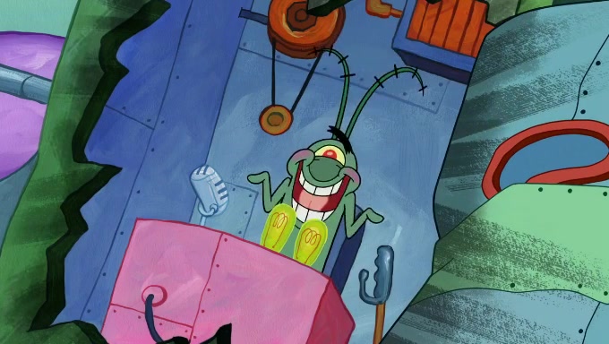Mr. Krabs and Cashina later go out to Honeymoon Hotel where he proceeds to kiss her again, only to be stopped. Cashina asks Mr. Krabs to tell her the secret formula and he says that he will. However, just as Mr. Krabs is about to tell her the formula, he starts sweating nervously and his eyes get watery. A teardrop falls on Cashina, causing her to malfunction and explode, revealing Plankton inside it. Mr. Krabs, shocked at the revelation, starts to get angry, but then gets depressed. He says that he's been alone for so long and that it was the first time that he fell for someone, and that although Cashina wasn't real, his feelings were. Plankton just concludes that he was being crazy and runs out of the room, declaring that he will get the formula next time. Mr. Krabs breaks down sobbing, and a bellhop tries to console him, only to say that he has to tip him. Mr. Krabs then stashes away the money from when Cashina exploded and gives the bellhop a nickel.