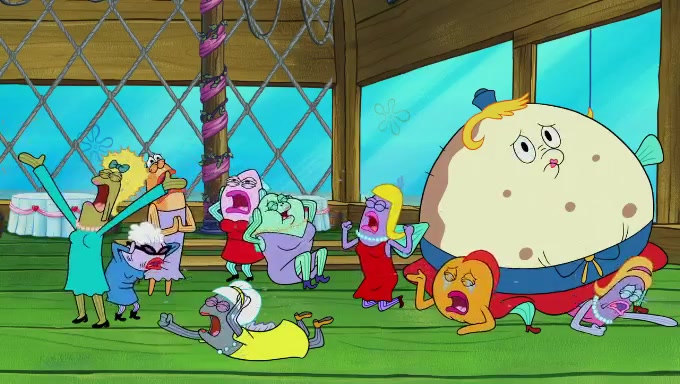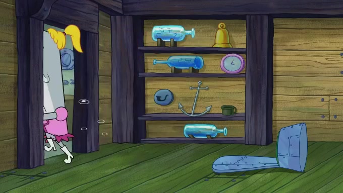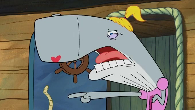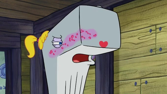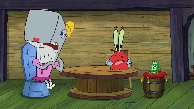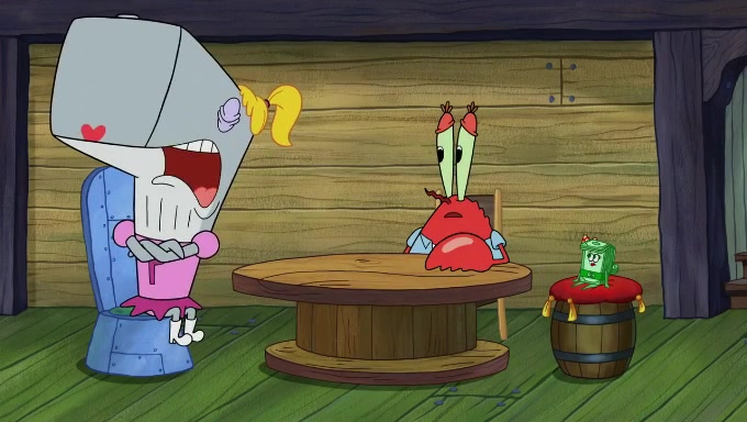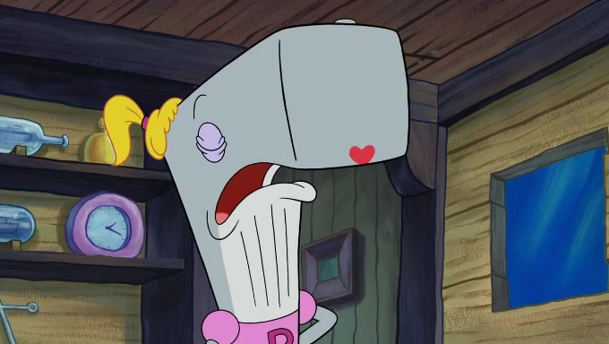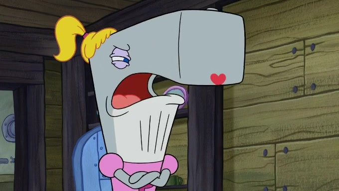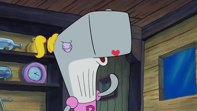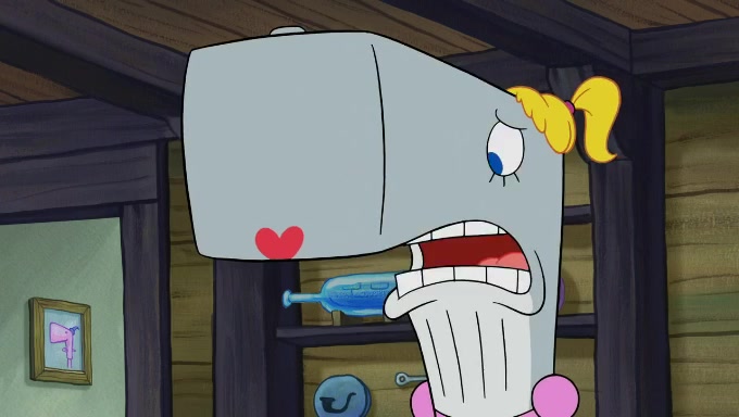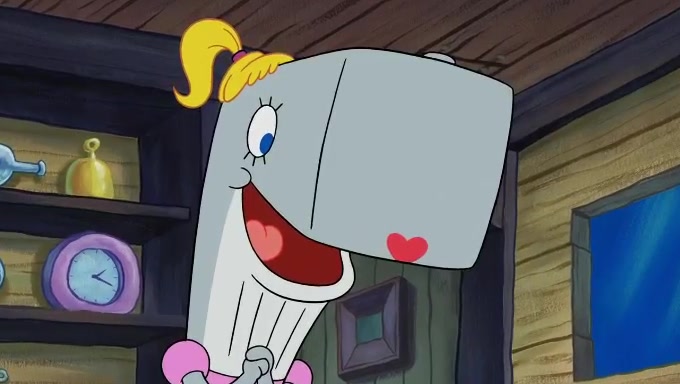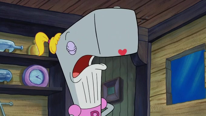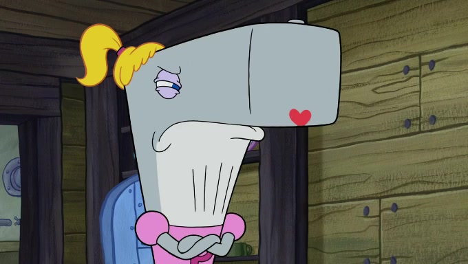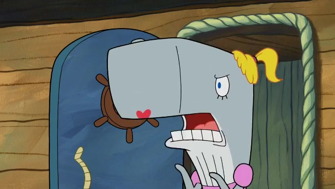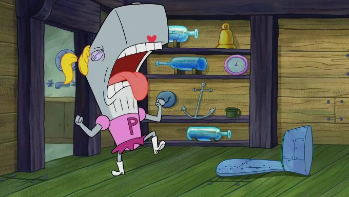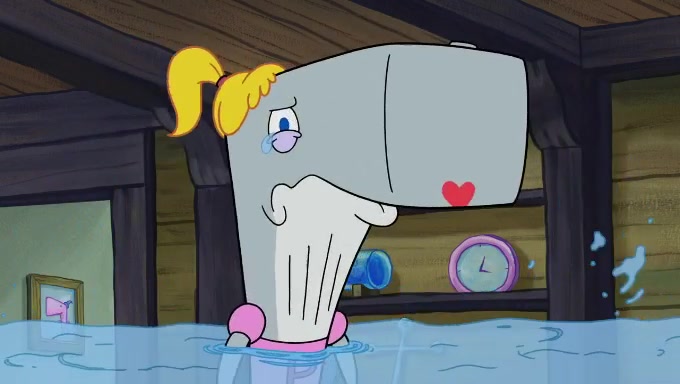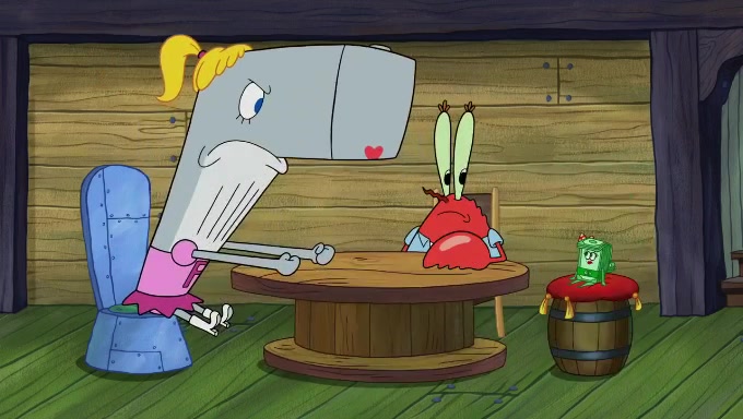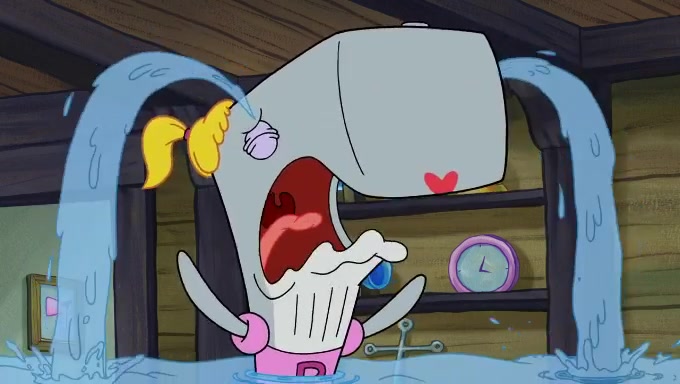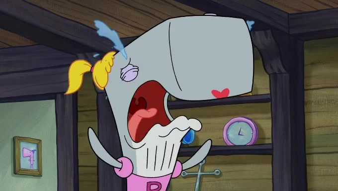 At Mr. Krabs' house, Pearl finds out about his relationship with Cashina and disapproves it, claiming that she can't have a stepmother like the ones she saw in the movies because then she won't get her "Prince Charming." In an attempt to change her mind, Mr. Krabs introduces Pearl to Cashina. However, Pearl immediately doesn't like her and storms off to her room. Mr. Krabs wants to talk to Pearl, but Cashina says that she will do it alone. She successfully manages to get Pearl to like her, talking about girl things. Witnessing this, Mr. Krabs decides to propose to Cashina, bringing Plankton one step closer to the formula.