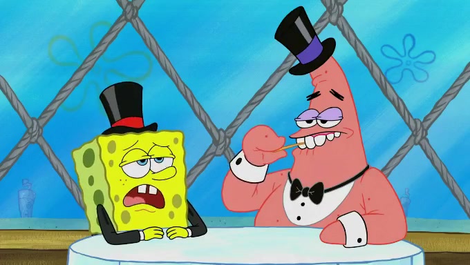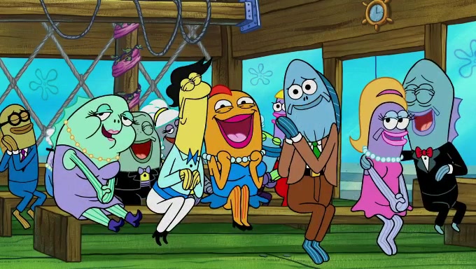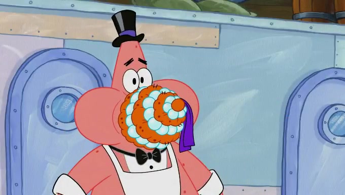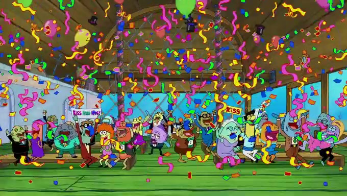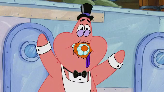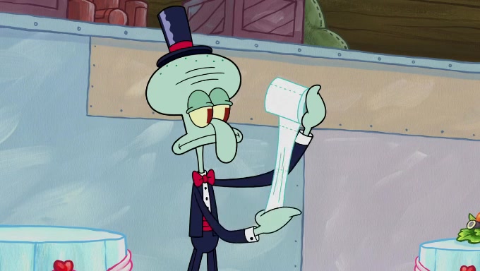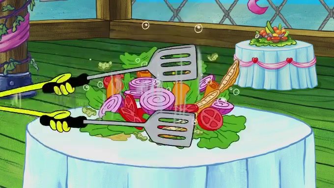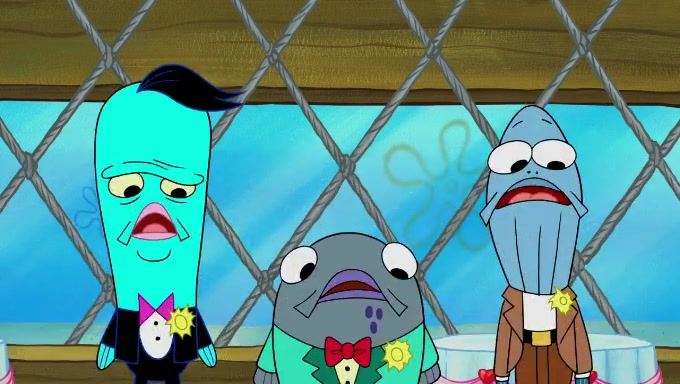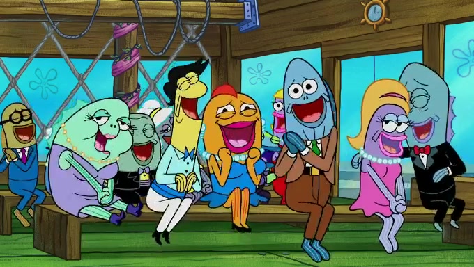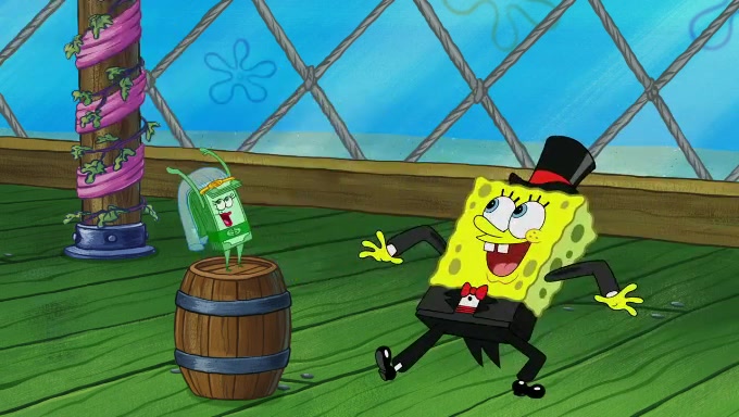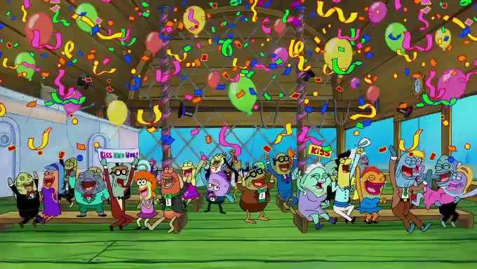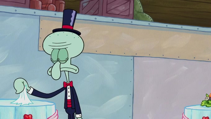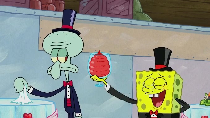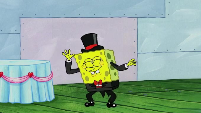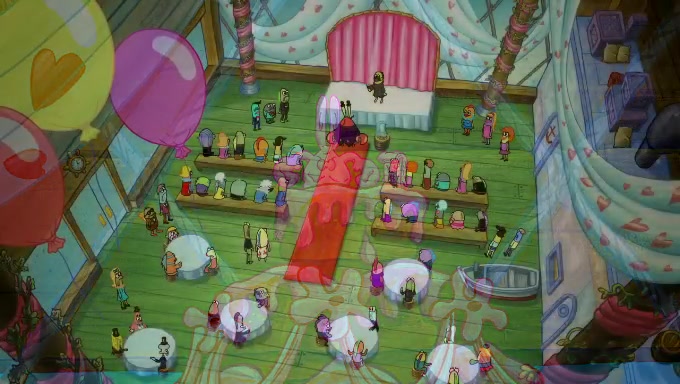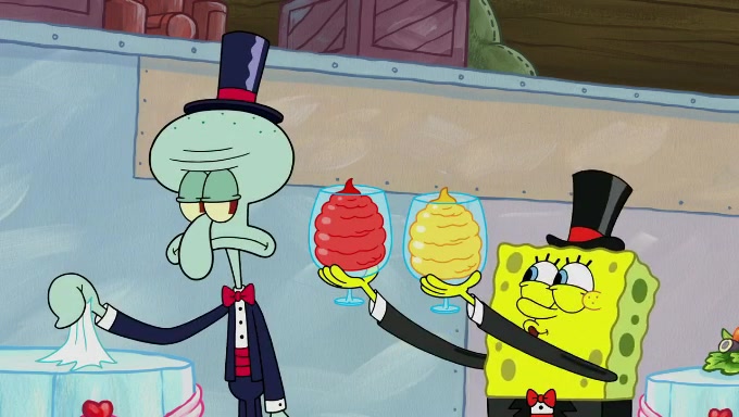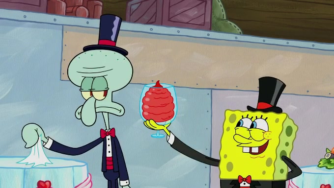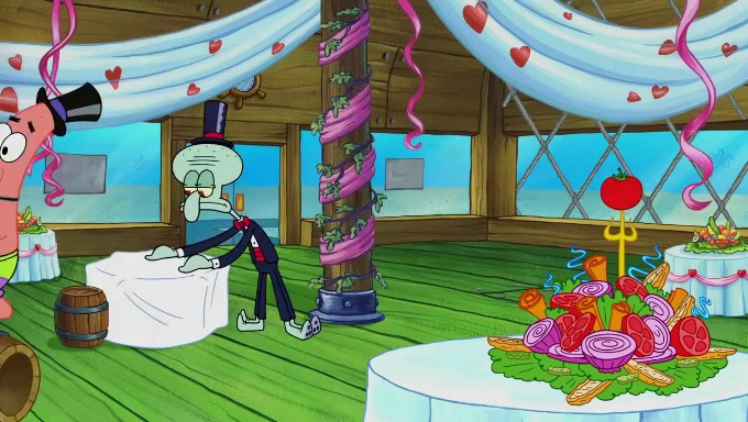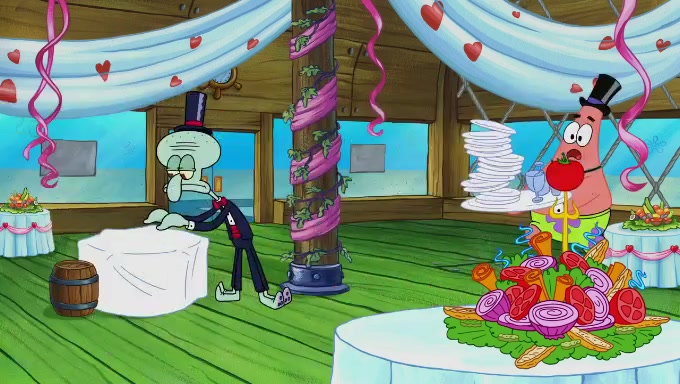 The next day, SpongeBob, Patrick, and Squidward set up wedding decorations all over the Krusty Krab. As the wedding between Mr. Krabs and Cashina takes place, the two exchange vows and then kiss, causing Mr. Krabs to be electrocuted again. Thus, Mr. Krabs and Cashina are officially married. SpongeBob then provides Cashina a bouquet of flowers to toss towards a group of ladies attending the wedding, but Patrick catches and swallows the whole bouquet. At the reception, SpongeBob wonders where Plankton was the whole time as Mr. Krabs dances with Cashina and swings her around, causing Plankton to become dizzy.