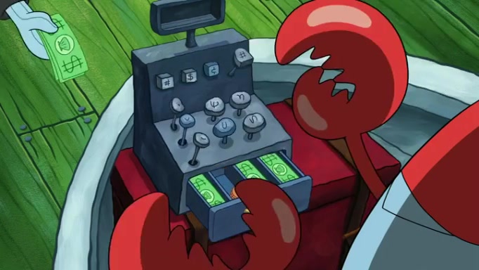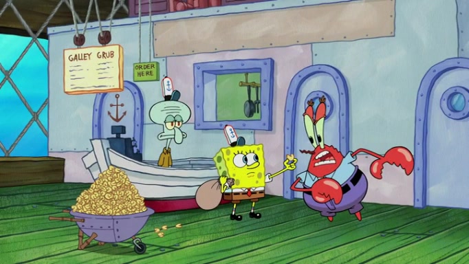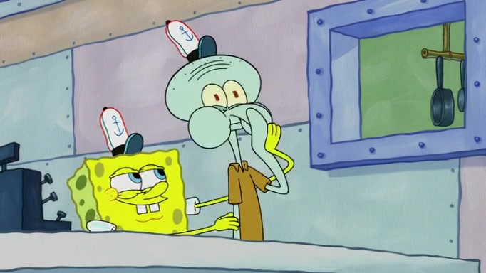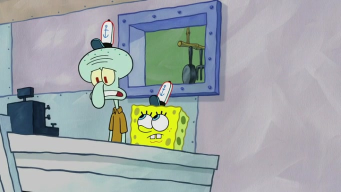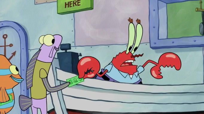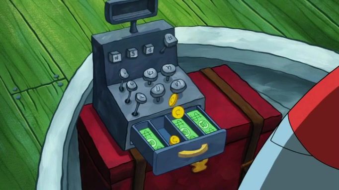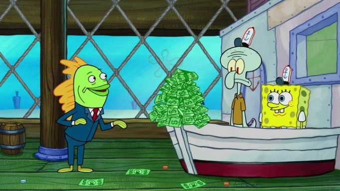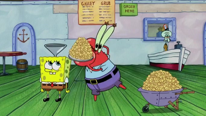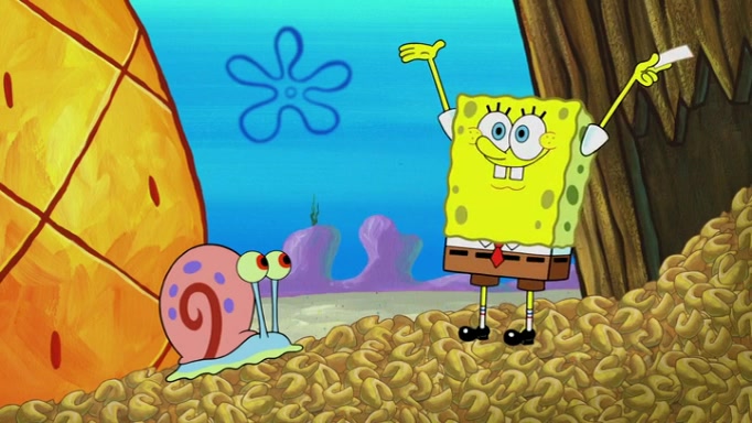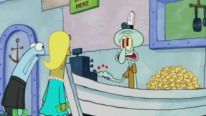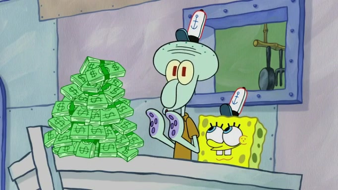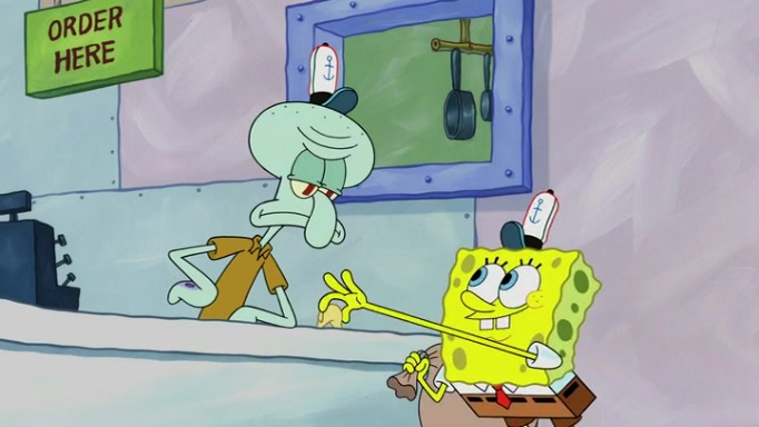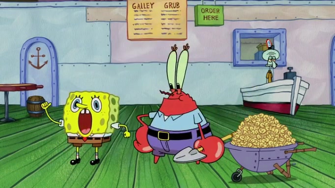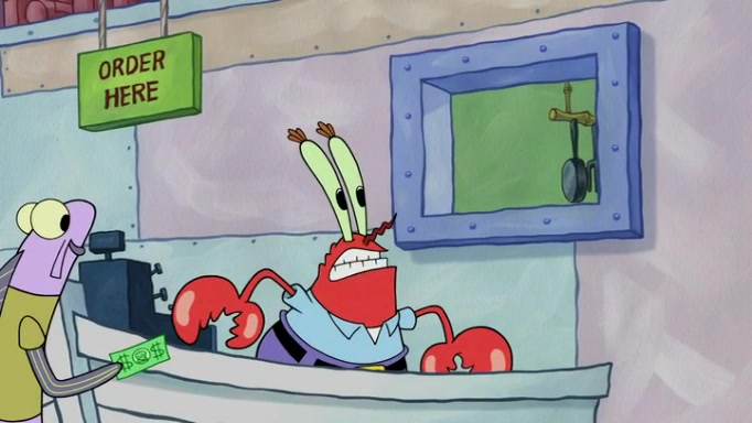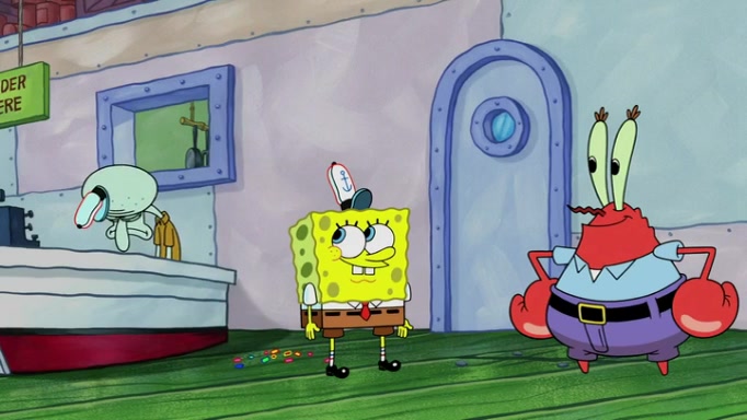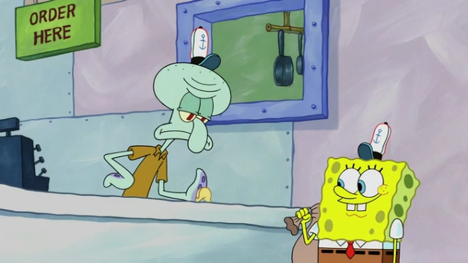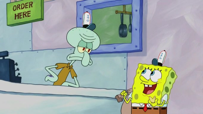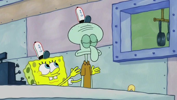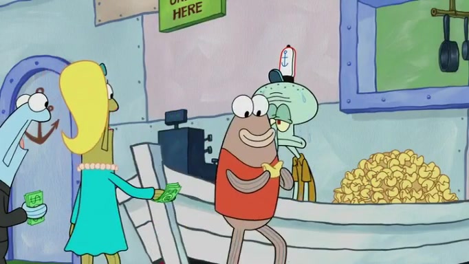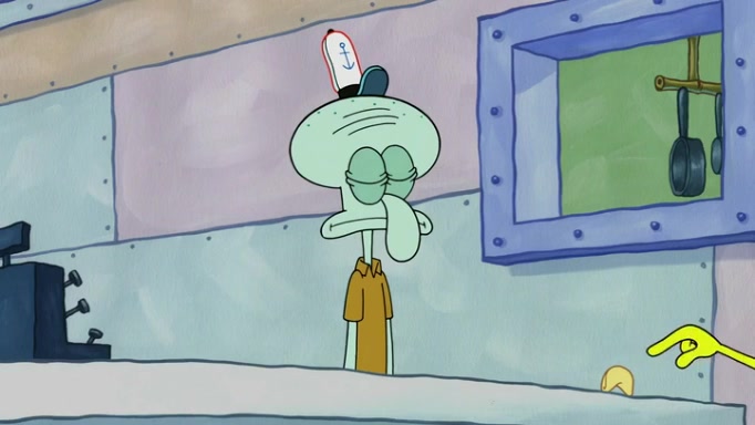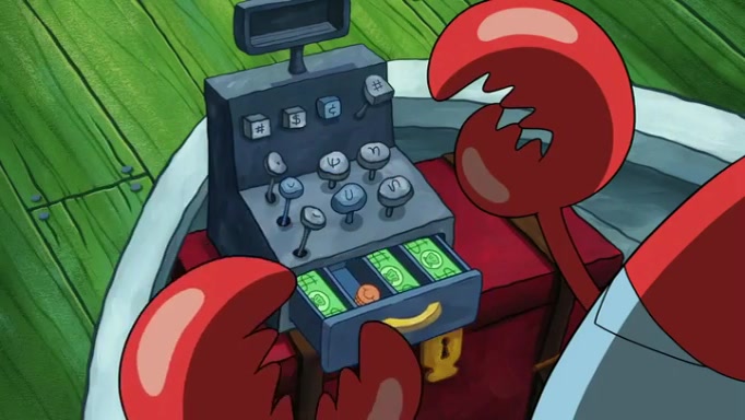 SpongeBob then takes them to the Krusty Krab where he tries to convince Mr. Krabs to give them away with every purchase but Mr. Krabs shuts down his idea. Squidward backs him up by saying that they are lame and that fortune cookies never come true. SpongeBob tells Squidward to try one, and when he opens it, it reads, "You will be rewarded for your particular talents." Squidward is presumably about to say how that will not happen before he wins the "most miserable cashier in Bikini Bottom" contest. He then gets a cash prize, which gets immediately purloined by Mr. Krabs. Soon after Mr. Krabs snatches Squidward's prize, SpongeBob assures Mr. Krabs about selling his magical cookies, which flips his thoughts about selling them, and decides to share them with the folks of Bikini Bottom.