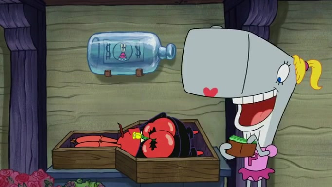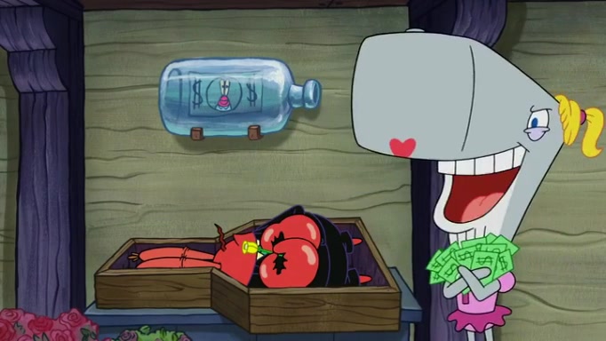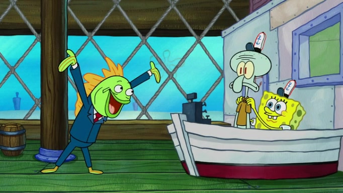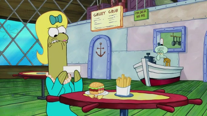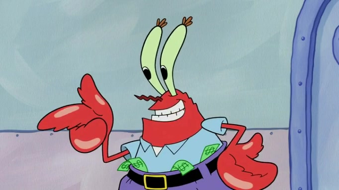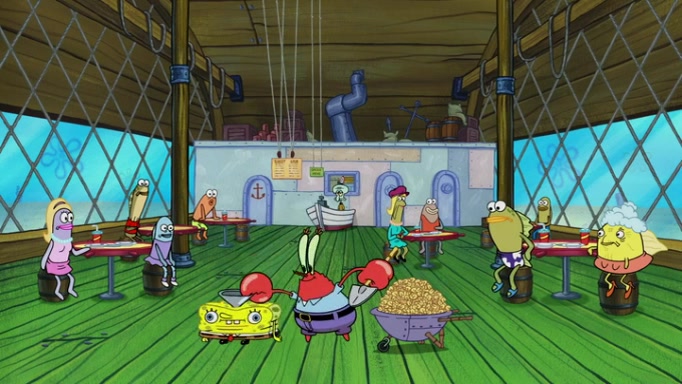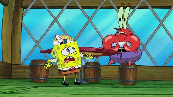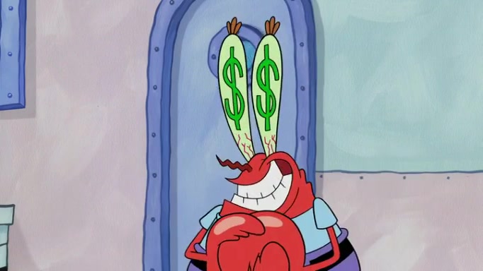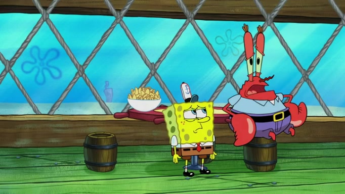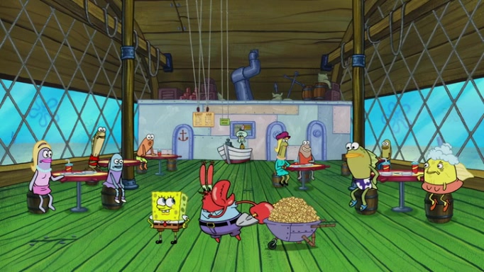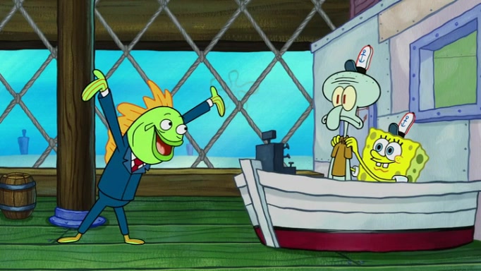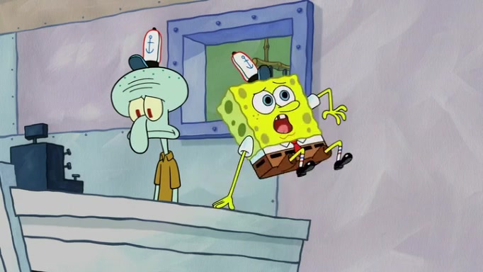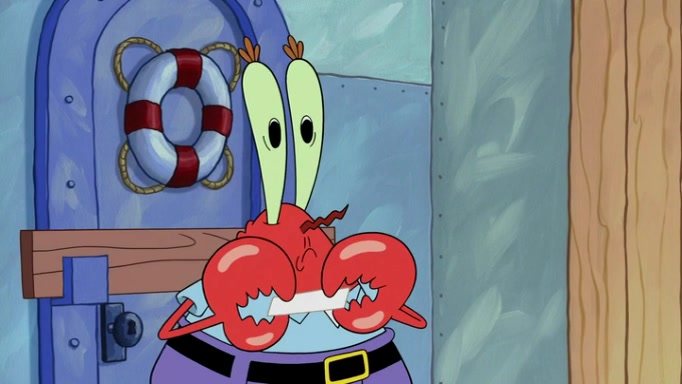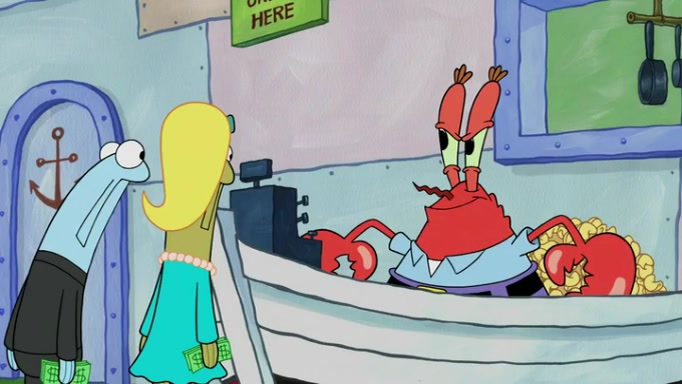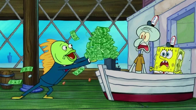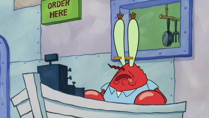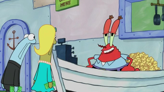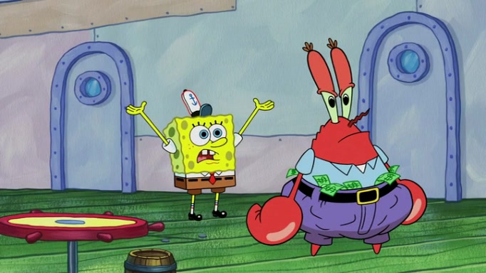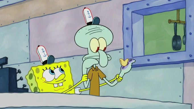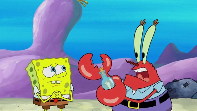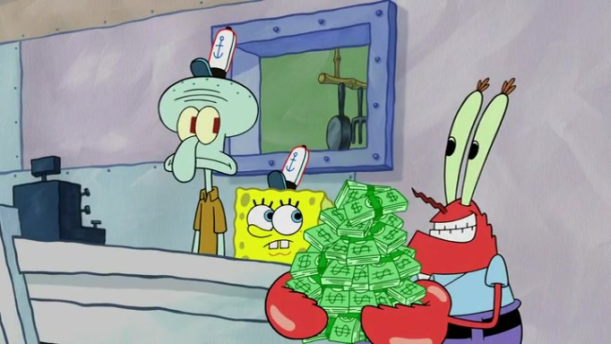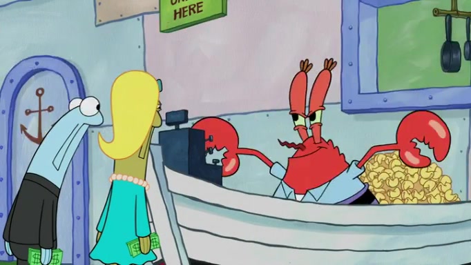 SpongeBob then takes them to the Krusty Krab where he tries to convince Mr. Krabs to give them away with every purchase but Mr. Krabs shuts down his idea. Squidward backs him up by saying that they are lame and that fortune cookies never come true. SpongeBob tells Squidward to try one, and when he opens it, it reads, "You will be rewarded for your particular talents." Squidward is presumably about to say how that will not happen before he wins the "most miserable cashier in Bikini Bottom" contest. He then gets a cash prize, which gets immediately purloined by Mr. Krabs. Soon after Mr. Krabs snatches Squidward's prize, SpongeBob assures Mr. Krabs about selling his magical cookies, which flips his thoughts about selling them, and decides to share them with the folks of Bikini Bottom.