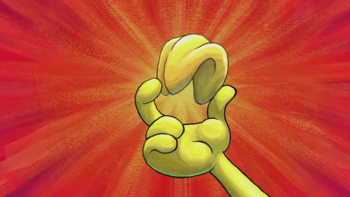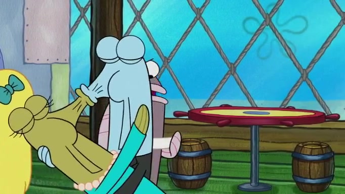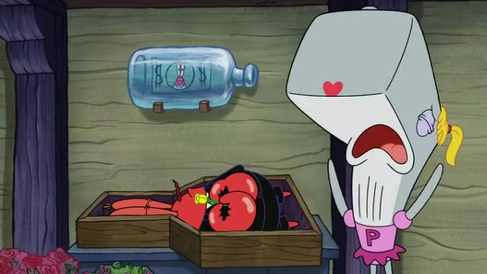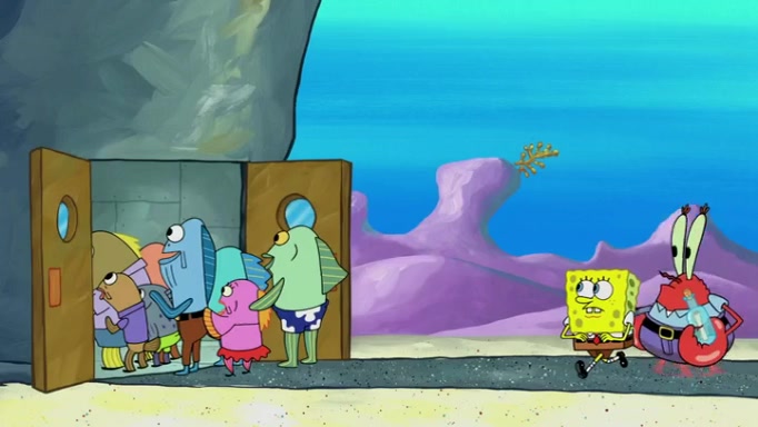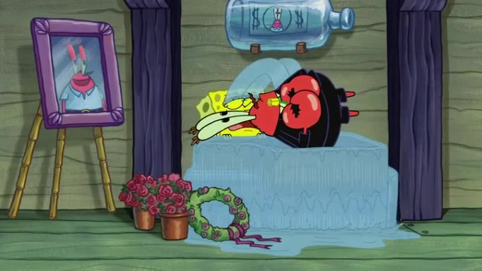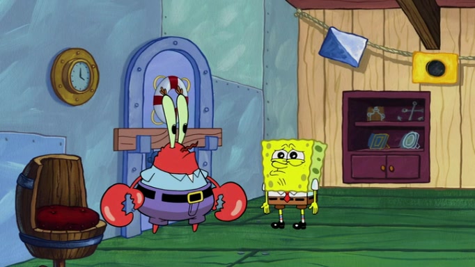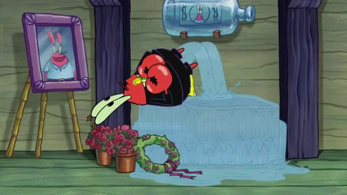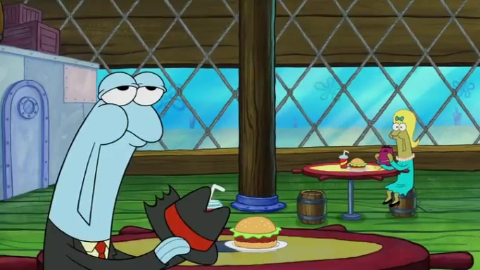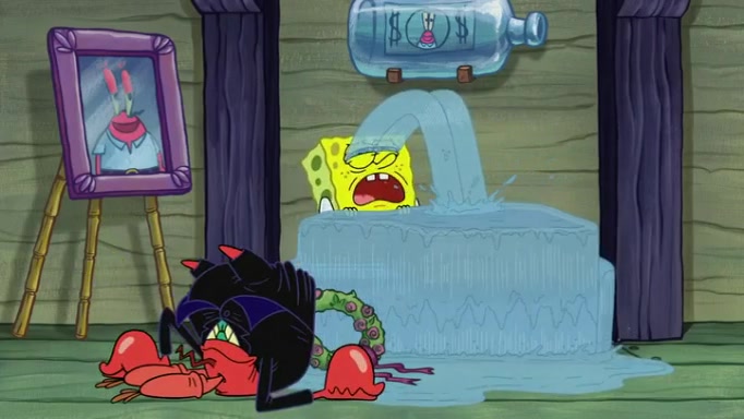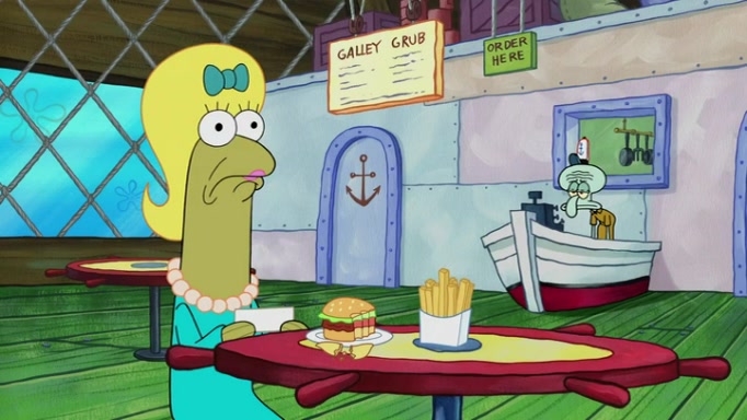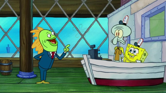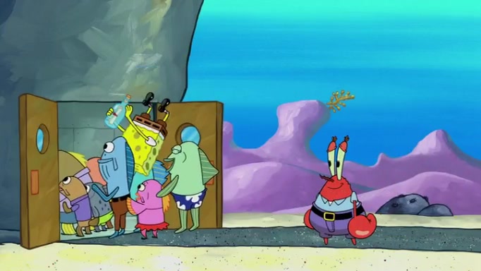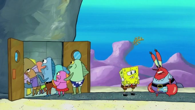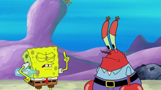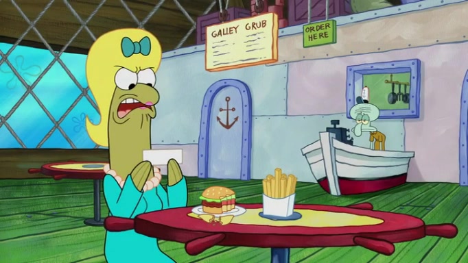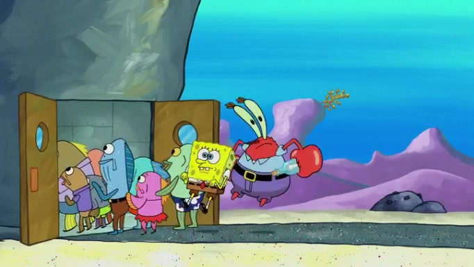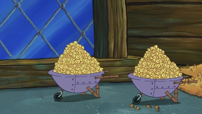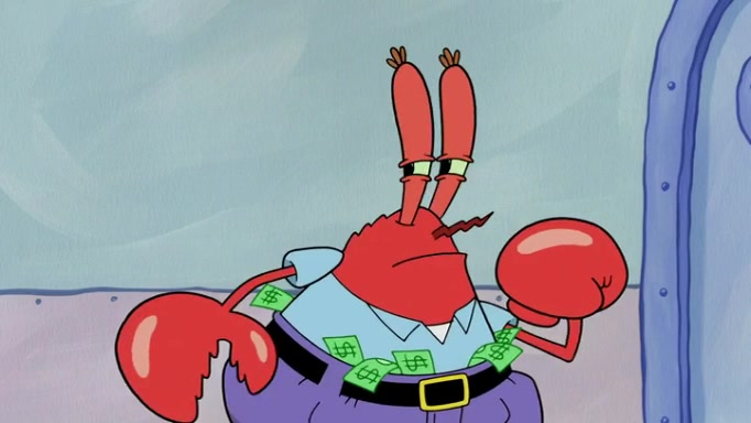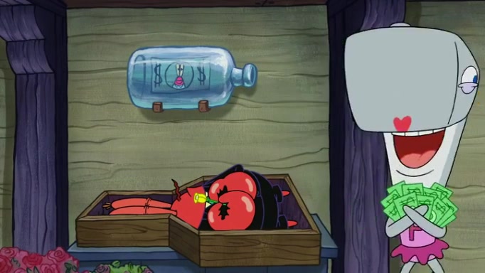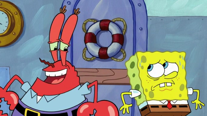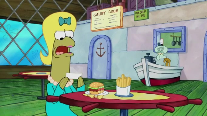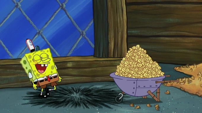 SpongeBob then takes them to the Krusty Krab where he tries to convince Mr. Krabs to give them away with every purchase but Mr. Krabs shuts down his idea. Squidward backs him up by saying that they are lame and that fortune cookies never come true. SpongeBob tells Squidward to try one, and when he opens it, it reads, "You will be rewarded for your particular talents." Squidward is presumably about to say how that will not happen before he wins the "most miserable cashier in Bikini Bottom" contest. He then gets a cash prize, which gets immediately purloined by Mr. Krabs. Soon after Mr. Krabs snatches Squidward's prize, SpongeBob assures Mr. Krabs about selling his magical cookies, which flips his thoughts about selling them, and decides to share them with the folks of Bikini Bottom.