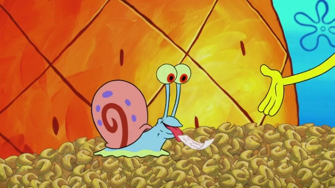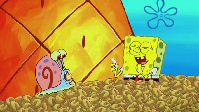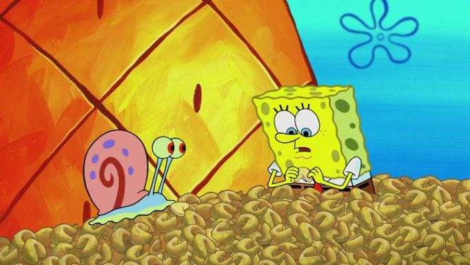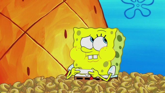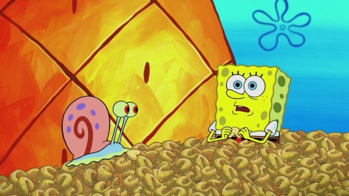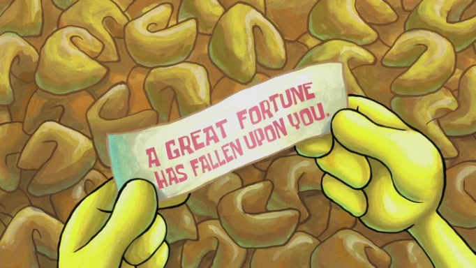 The episode starts with a crane being lowered, looking as though the load is going to land onto a boat, but instead sinks into Bikini Bottom. SpongeBob and Gary are looking at clouds, until they see the box full of fortune cookies, before it lands on SpongeBob. Gary realizes that it is not a cloud, and decide to look inside where they find many fortune cookies. SpongeBob tries it with one of them, as does Gary. Before coming to the conclusion that they can indeed accurately predict the future, giving SpongeBob an idea to sell them at the Krusty Krab.