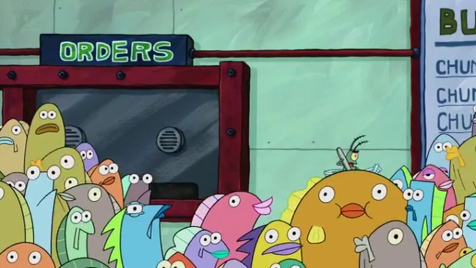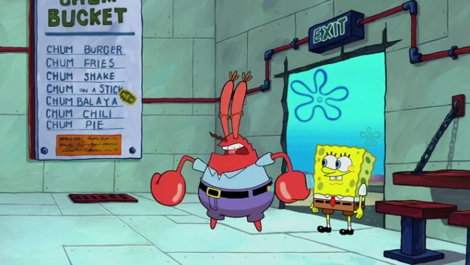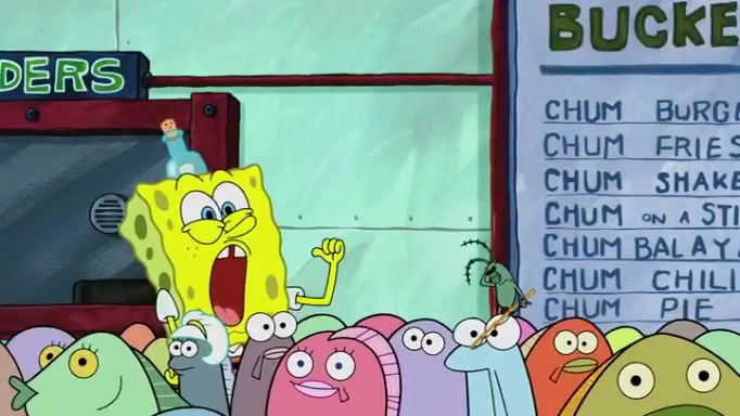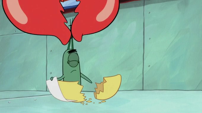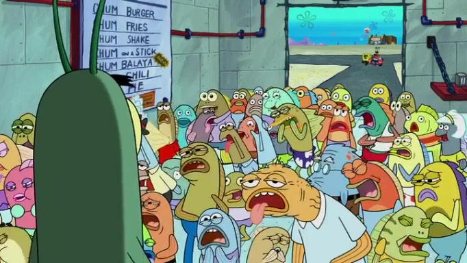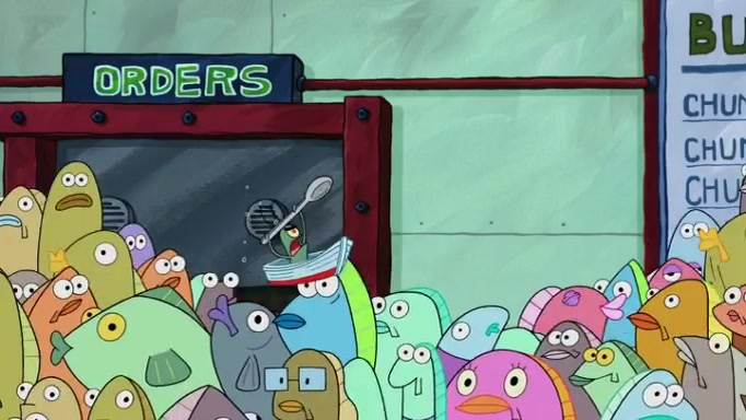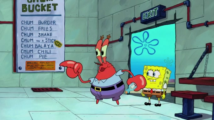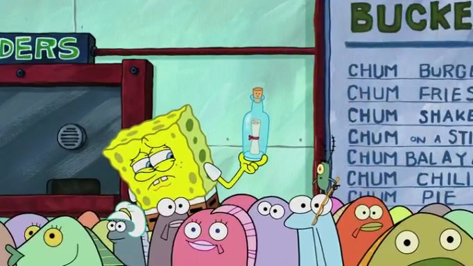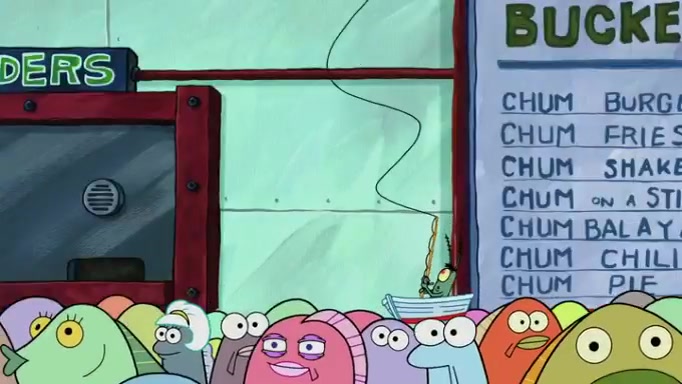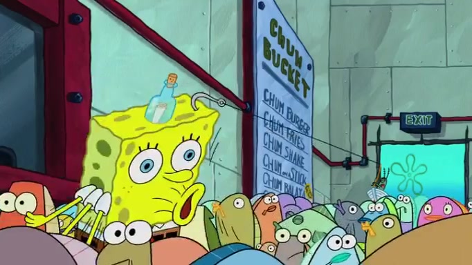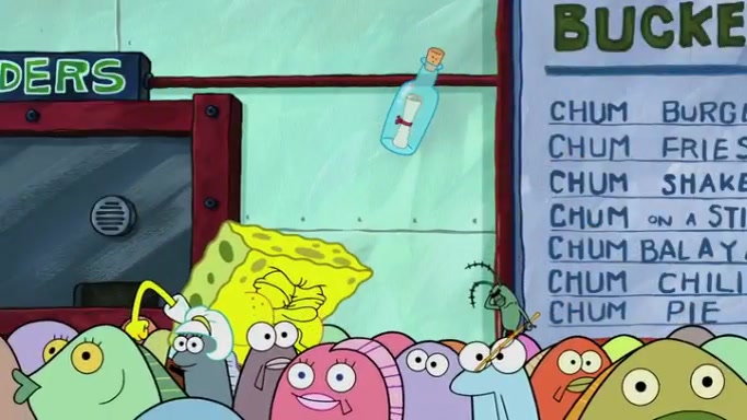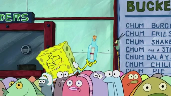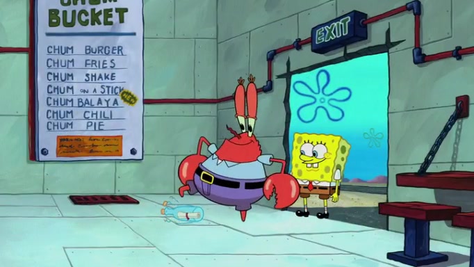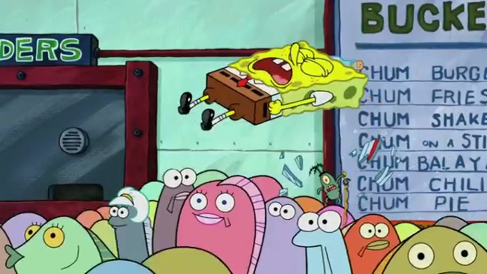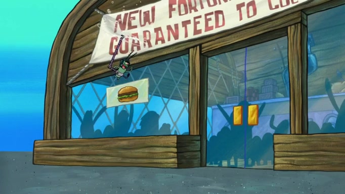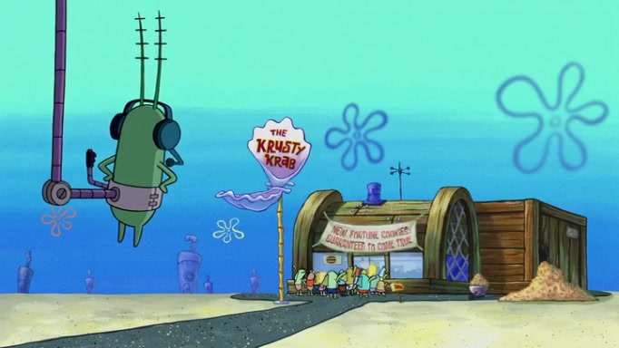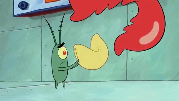 Plankton finds out that this is happening and says Mr. Krabs is assured he is going to fail. Karen then yells for Plankton, causing him to crash into the Chum Bucket. She then asks if he could take out the trash. But he told Karen he had a plan to make fortunes that say bad things about the Krusty Krab. He then makes the fortunes. As soon as he finishes making fortunes, there was another can full of cookies but he destroyed it. As soon as SpongeBob took the cookies, the customers get fortunes that falsely advertise the Chum Bucket and slander the Krusty Krab.