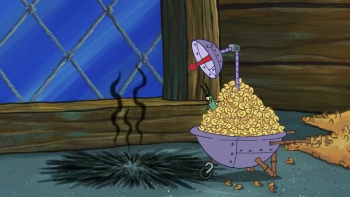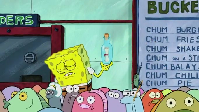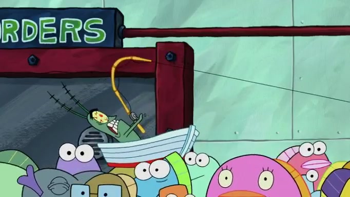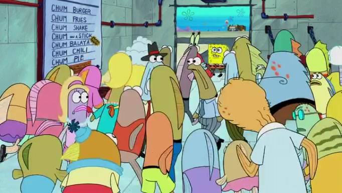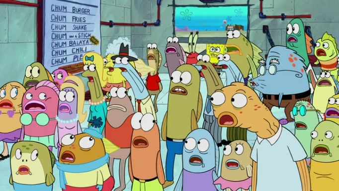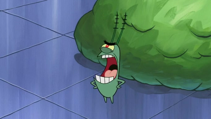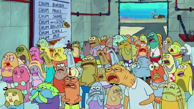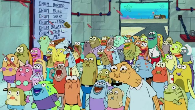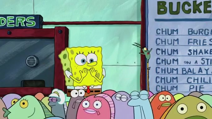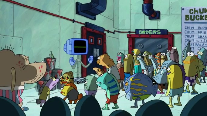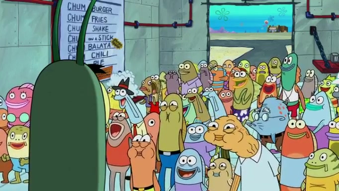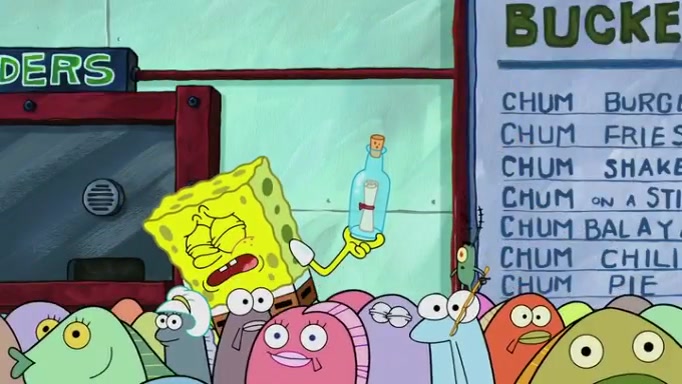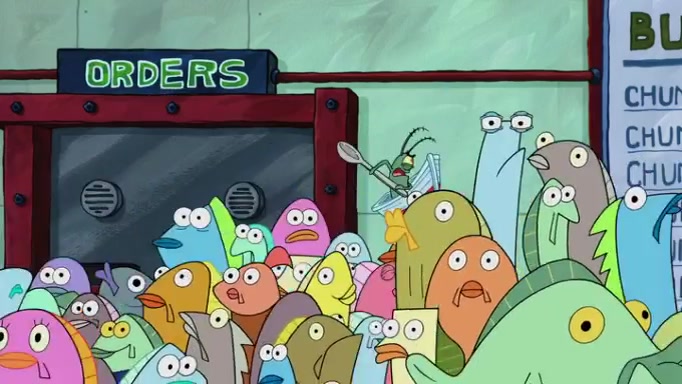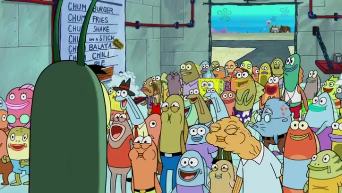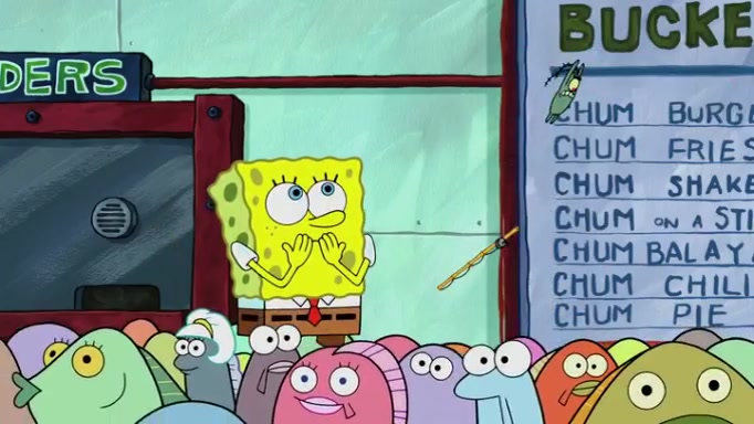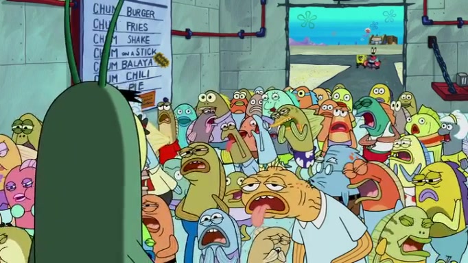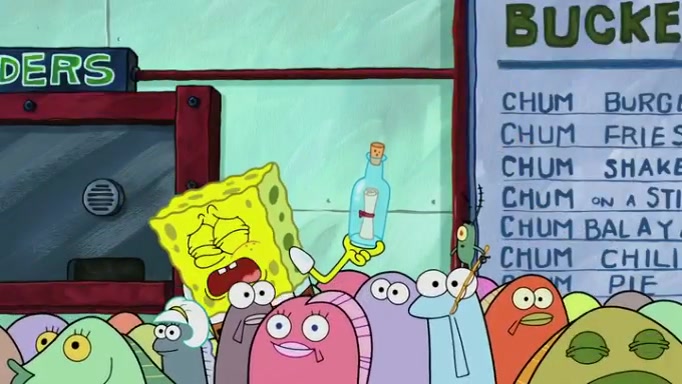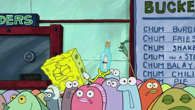 Plankton finds out that this is happening and says Mr. Krabs is assured he is going to fail. Karen then yells for Plankton, causing him to crash into the Chum Bucket. She then asks if he could take out the trash. But he told Karen he had a plan to make fortunes that say bad things about the Krusty Krab. He then makes the fortunes. As soon as he finishes making fortunes, there was another can full of cookies but he destroyed it. As soon as SpongeBob took the cookies, the customers get fortunes that falsely advertise the Chum Bucket and slander the Krusty Krab.