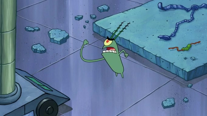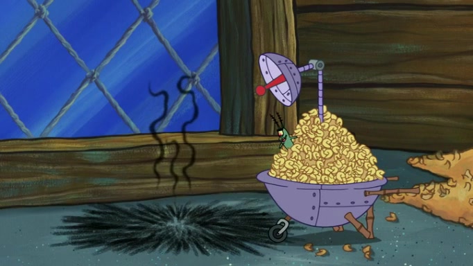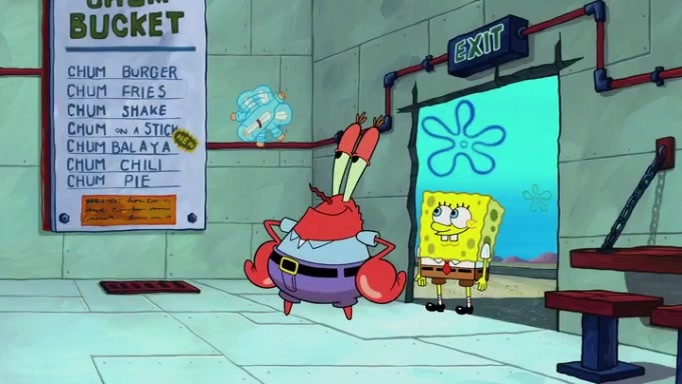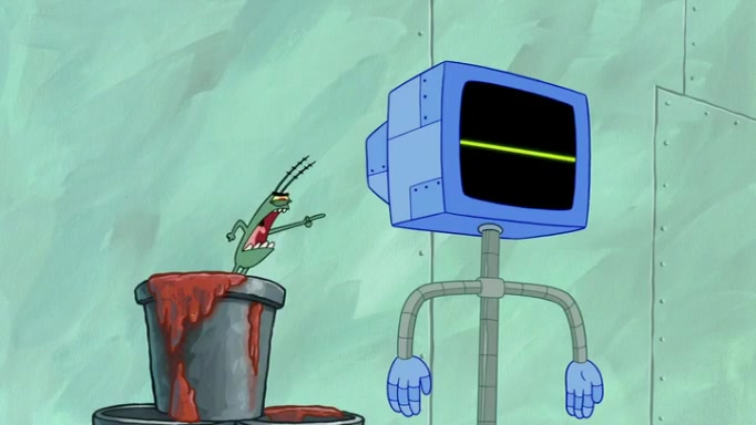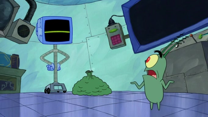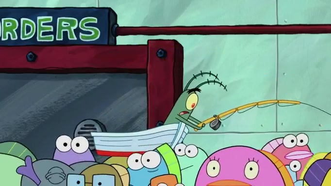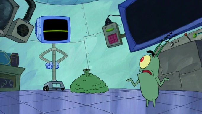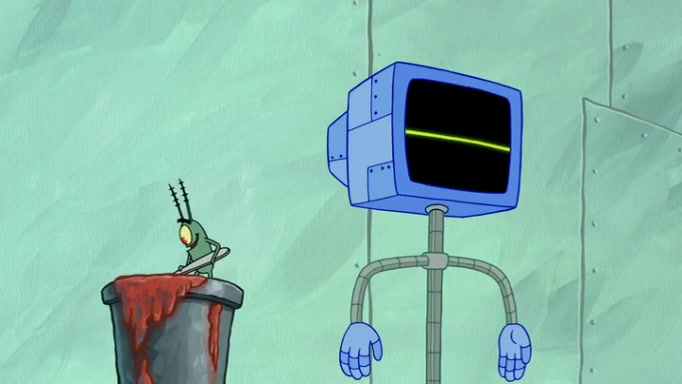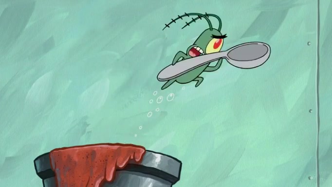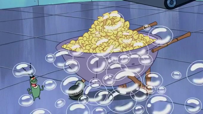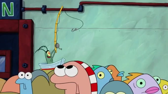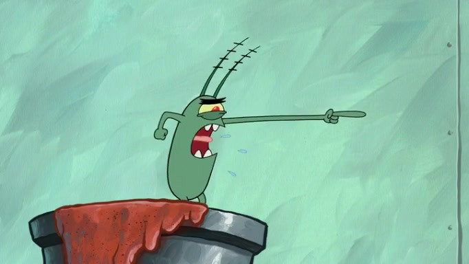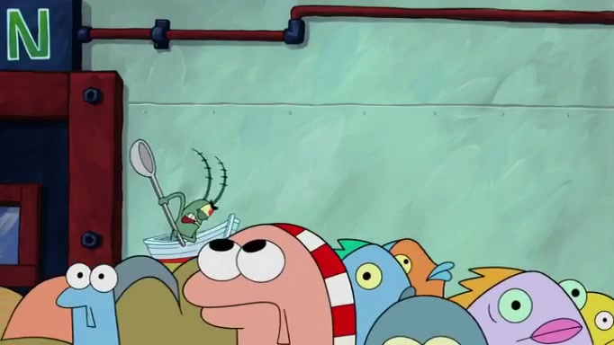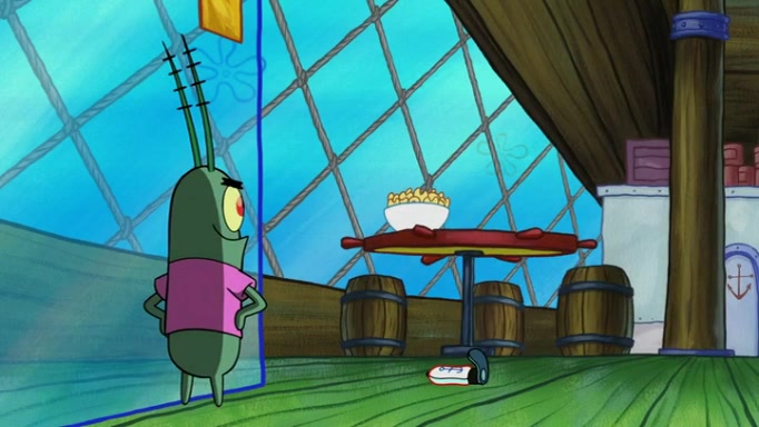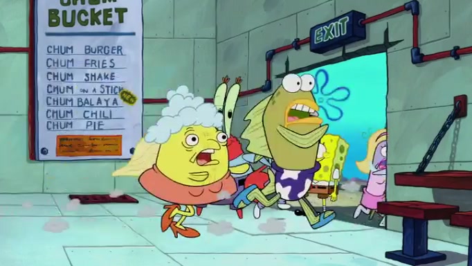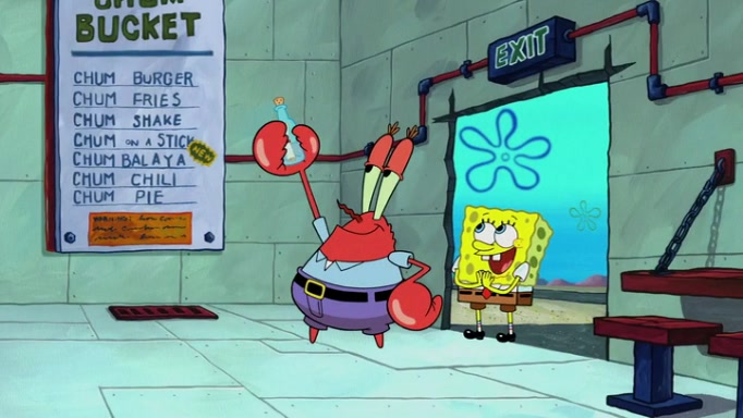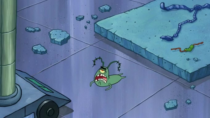 Plankton finds out that this is happening and says Mr. Krabs is assured he is going to fail. Karen then yells for Plankton, causing him to crash into the Chum Bucket. She then asks if he could take out the trash. But he told Karen he had a plan to make fortunes that say bad things about the Krusty Krab. He then makes the fortunes. As soon as he finishes making fortunes, there was another can full of cookies but he destroyed it. As soon as SpongeBob took the cookies, the customers get fortunes that falsely advertise the Chum Bucket and slander the Krusty Krab.
