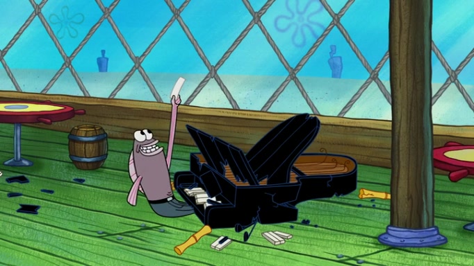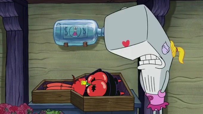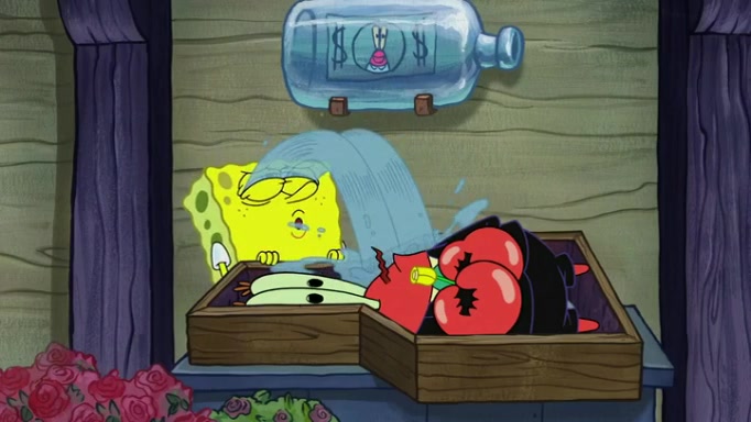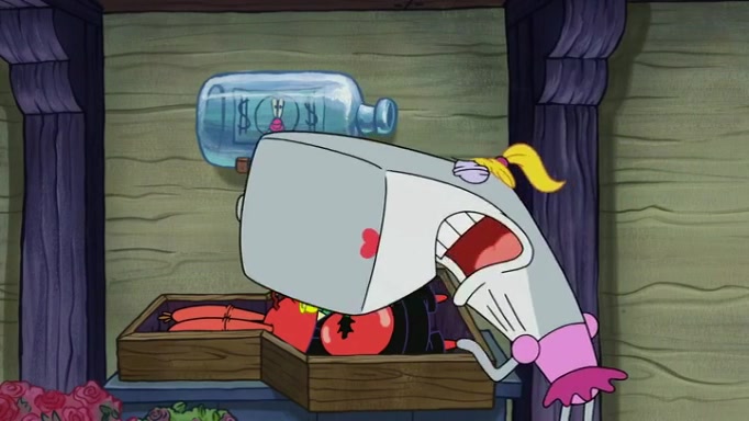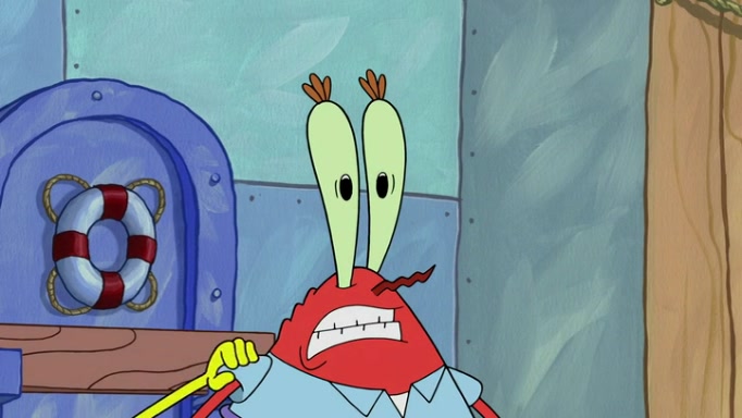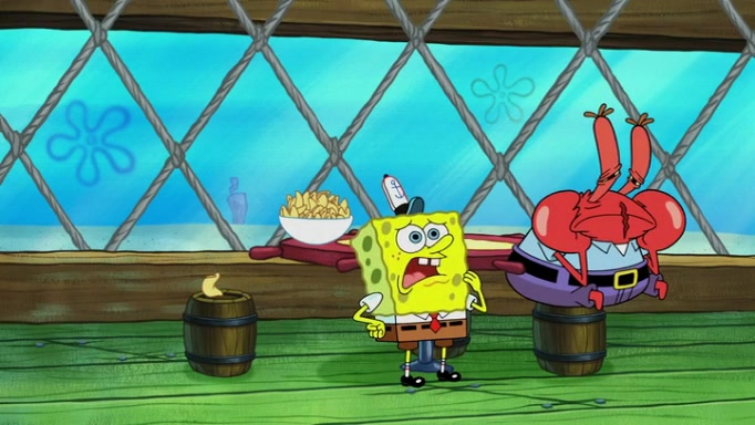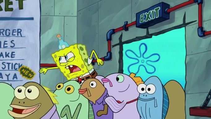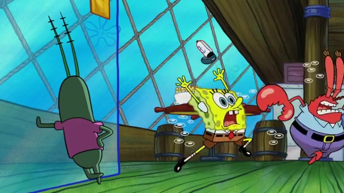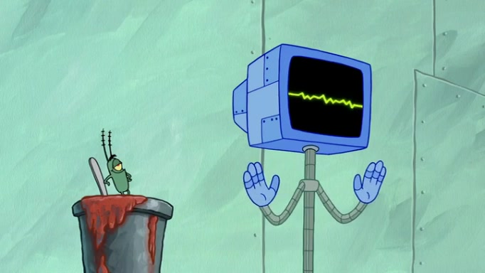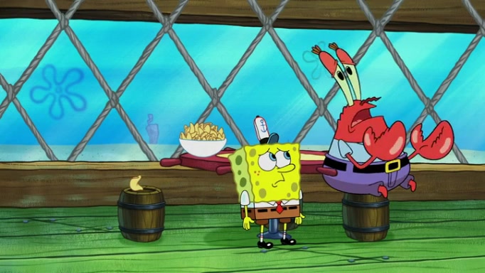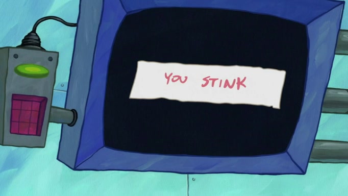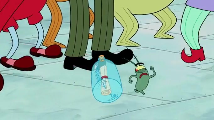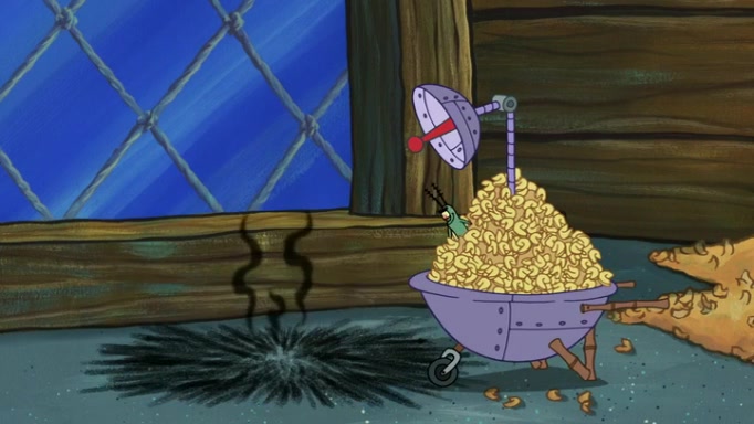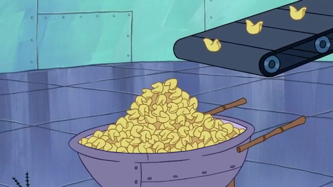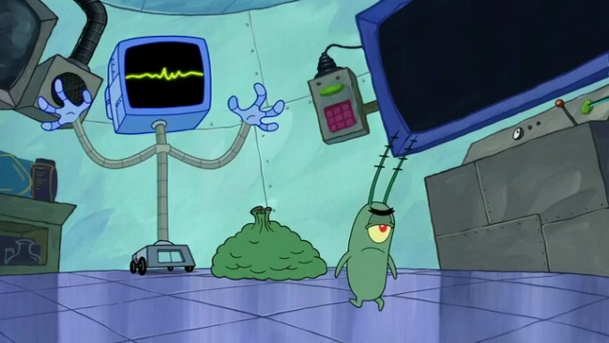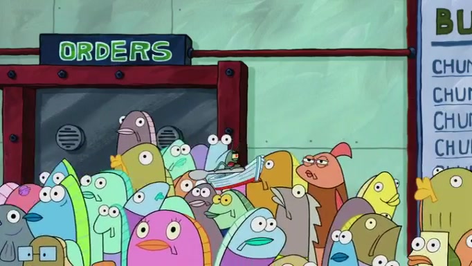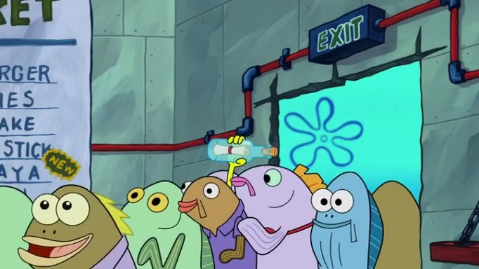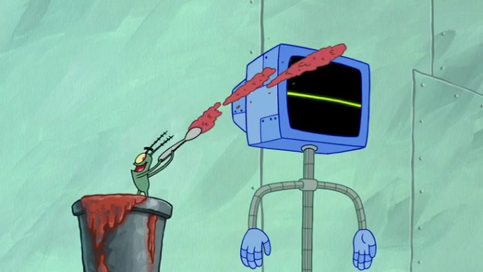 Plankton finds out that this is happening and says Mr. Krabs is assured he is going to fail. Karen then yells for Plankton, causing him to crash into the Chum Bucket. She then asks if he could take out the trash. But he told Karen he had a plan to make fortunes that say bad things about the Krusty Krab. He then makes the fortunes. As soon as he finishes making fortunes, there was another can full of cookies but he destroyed it. As soon as SpongeBob took the cookies, the customers get fortunes that falsely advertise the Chum Bucket and slander the Krusty Krab.
