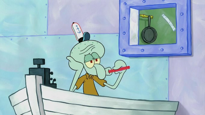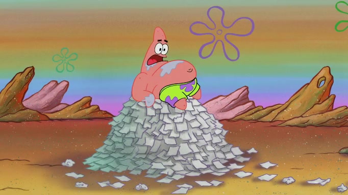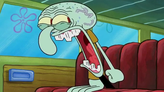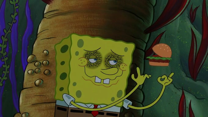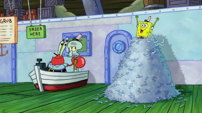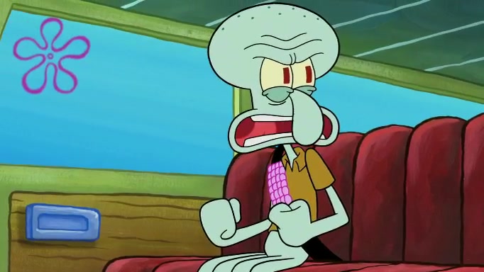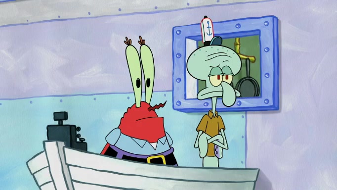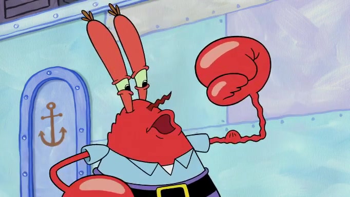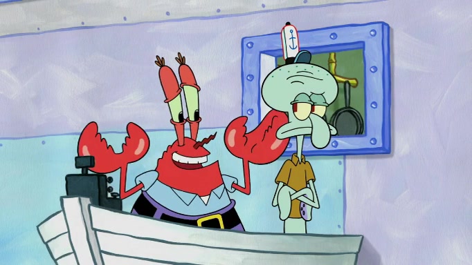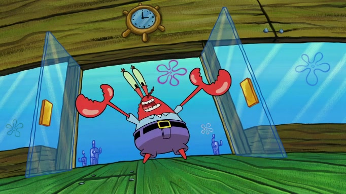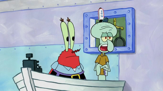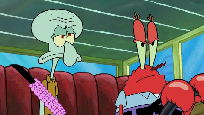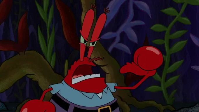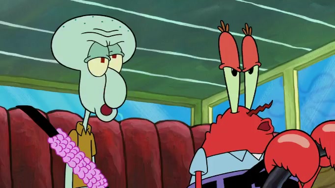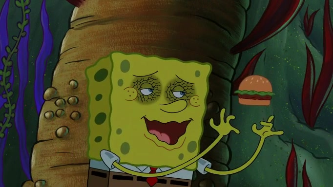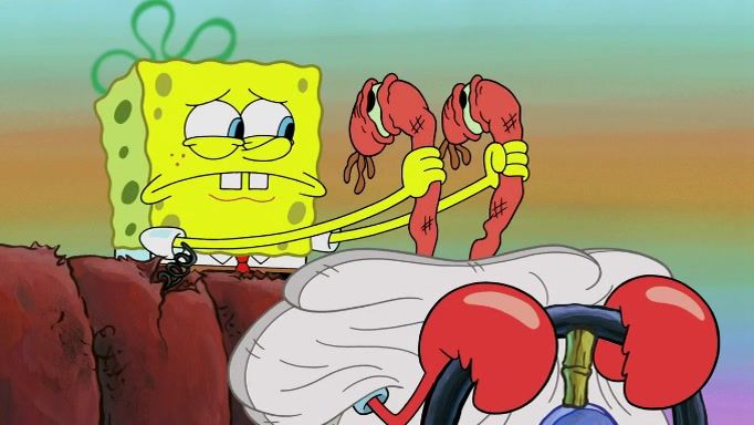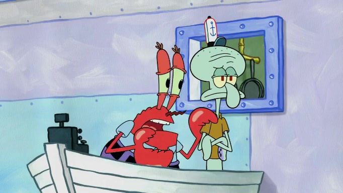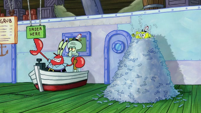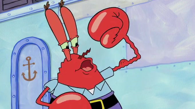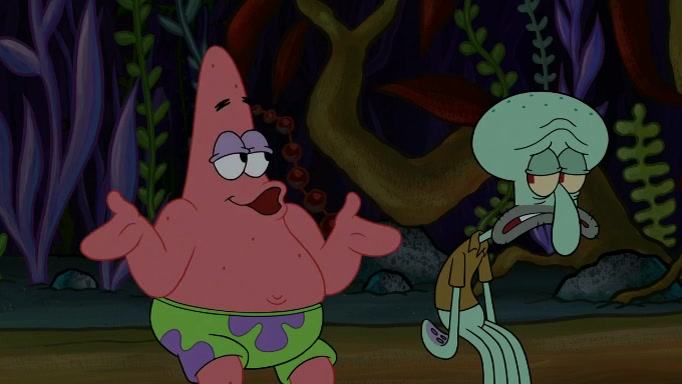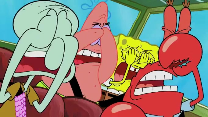 More time later, Patrick, Squidward, and Mr. Krabs are showing signs of hunger and think about eating the Krabby Patty. SpongeBob tries to get everyone not to eat the Krabby Patty but the others only care for eating it now. Patrick nearly eats the Krabby Patty by tricking SpongeBob but his plan fails. Squidward then tries to put SpongeBob to sleep with his clarinet, but the Snail Monster returns and grabs Squidward by his head. It then drops Squidward on his face and he comments "Everybody's a critic." Mr. Krabs' turn to trick SpongeBob as he created a safe to put the Krabby Patty in. However, the other side of the safe leads into Mr. Krabs' mouth and SpongeBob backs him away. SpongeBob then offers everyone a solution: Nature Patties. Only Patrick seems to enjoy these patties while Squidward and Mr. Krab show great disgust for them. Having enough, Mr. Krabs, Squidward, and Patrick all decide to chase SpongeBob down to get to the Krabby Patty.