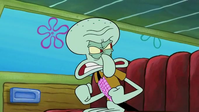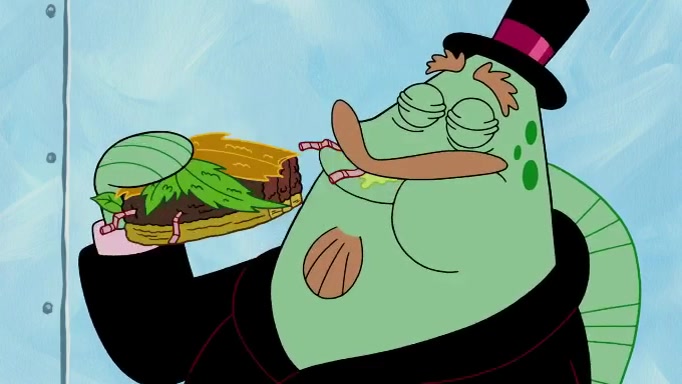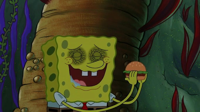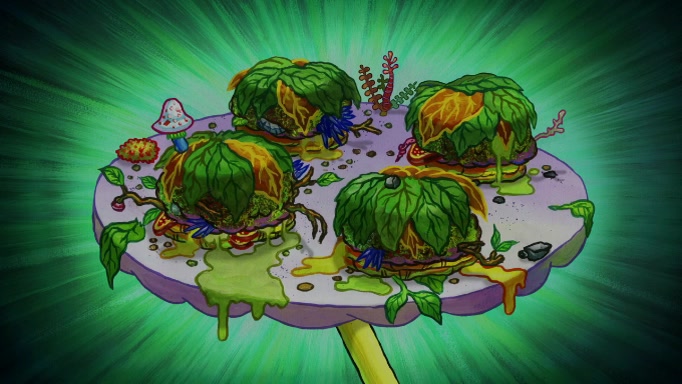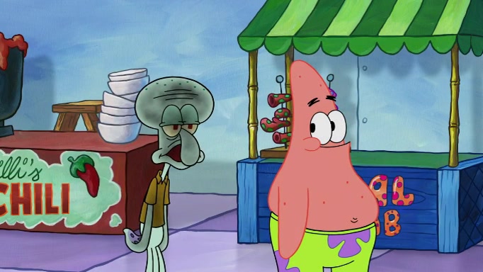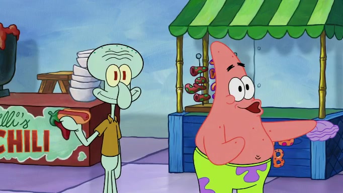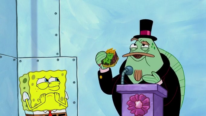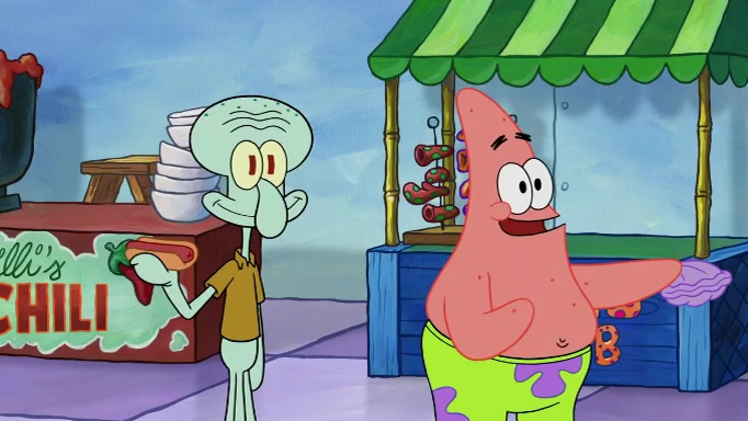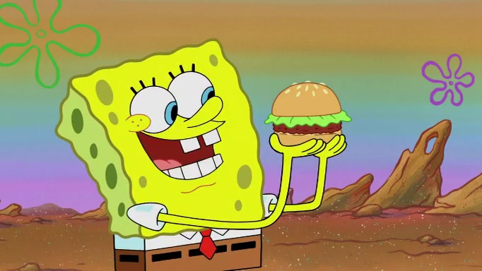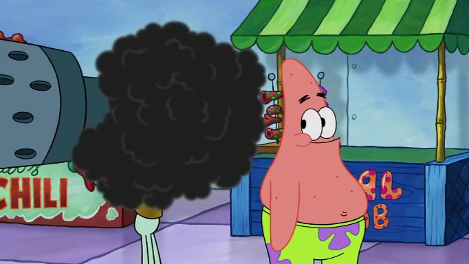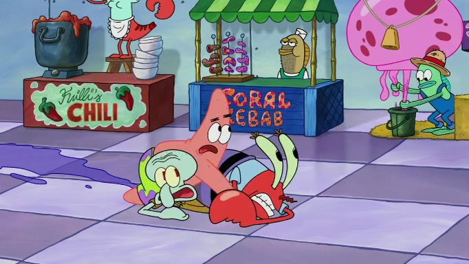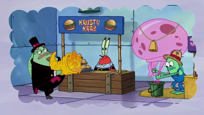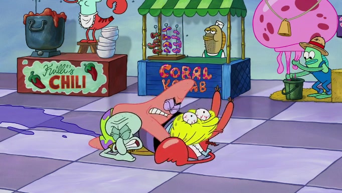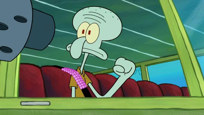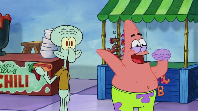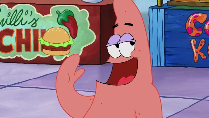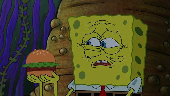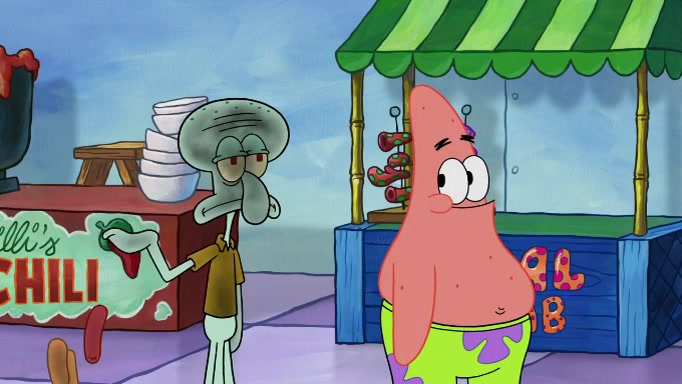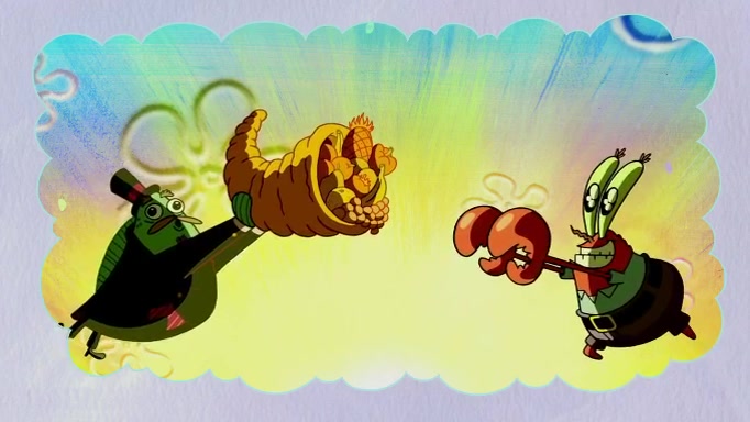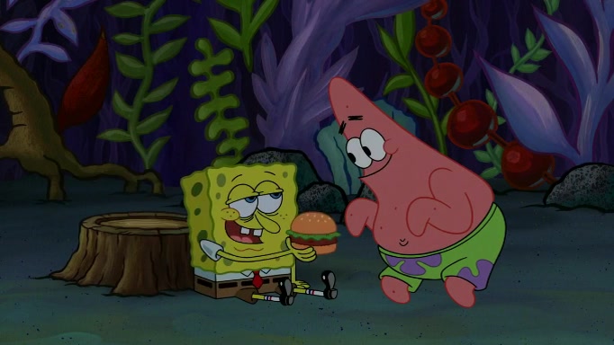 SpongeBob manages to outrun them and fight his own urges to eat it and makes it to Food Con. However, Mr. Krabs, Squidward, and Patrick are still chasing him for the Krabby Patty and SpongeBob makes it inside. SpongeBob hands over the Krabby Patty to the Mayor, but upon closer inspection, it's actually one of the Nature Patties from before. Patrick somehow switched the real Krabby Patty with the fake one and eats it. Fortunately, the Mayor ends up enjoying the Nature Patty and rewards the Golden Corncupia to the Krusty Krab. Everyone cheers, but Squidward gets more exhaust blown in his face. Then the episode ends.