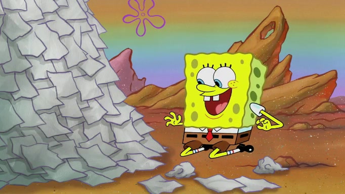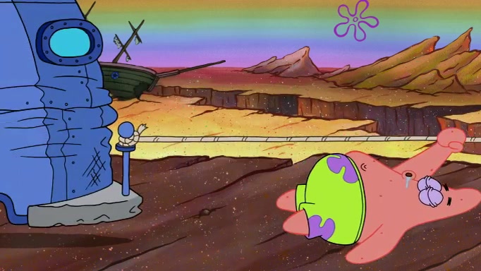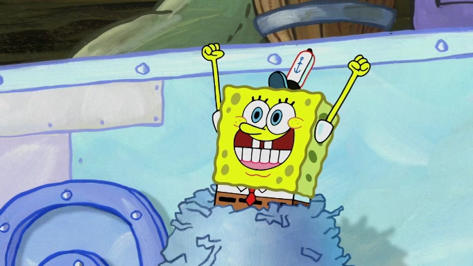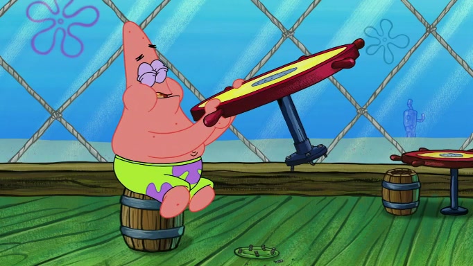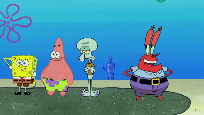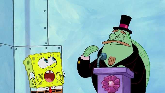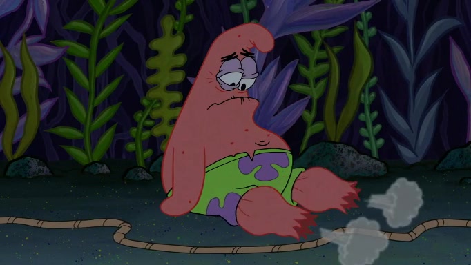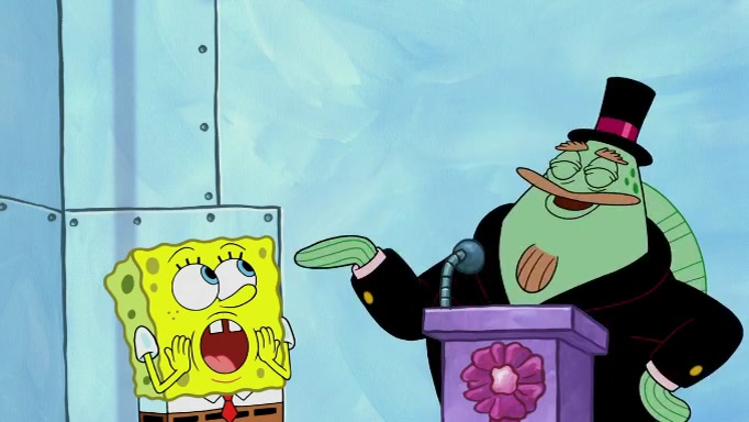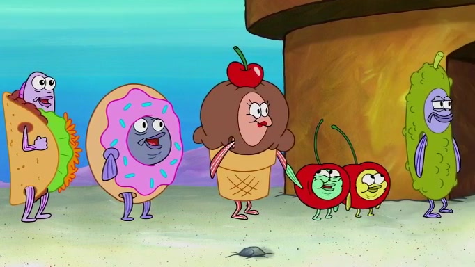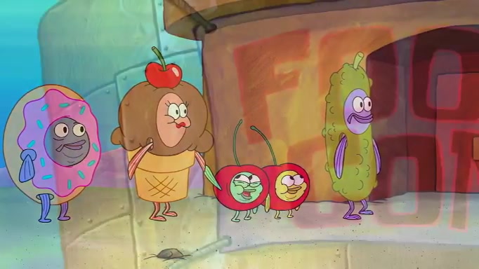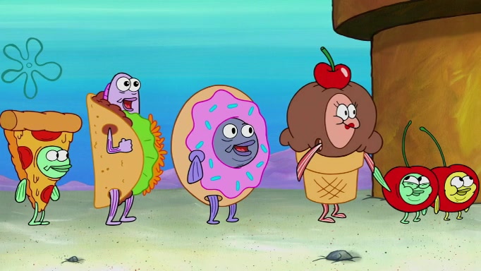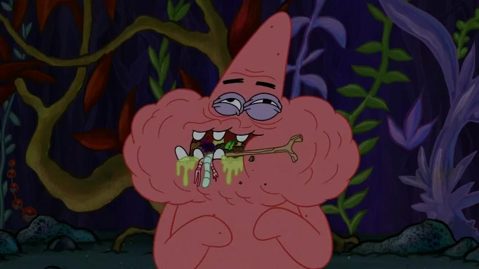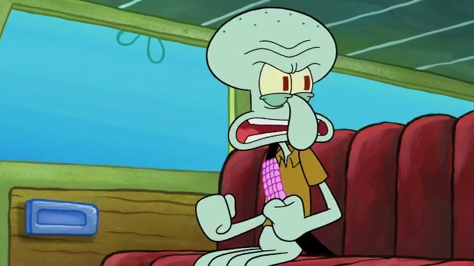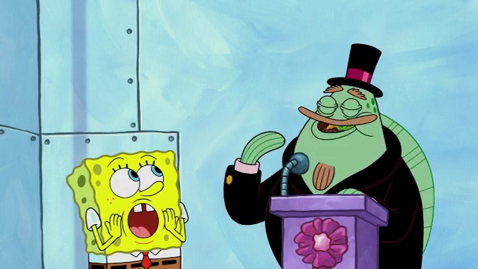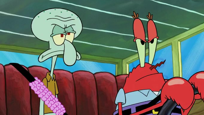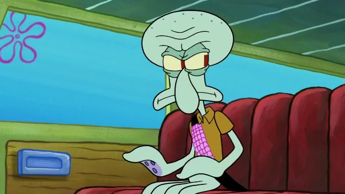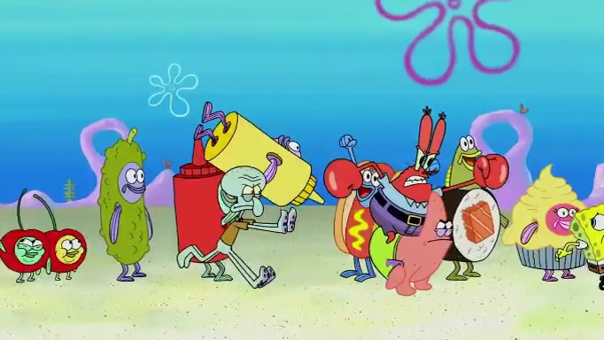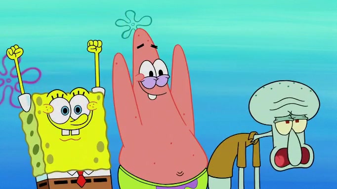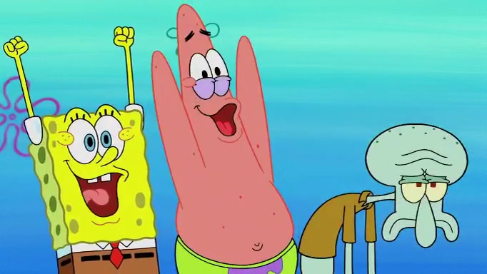 SpongeBob manages to outrun them and fight his own urges to eat it and makes it to Food Con. However, Mr. Krabs, Squidward, and Patrick are still chasing him for the Krabby Patty and SpongeBob makes it inside. SpongeBob hands over the Krabby Patty to the Mayor, but upon closer inspection, it's actually one of the Nature Patties from before. Patrick somehow switched the real Krabby Patty with the fake one and eats it. Fortunately, the Mayor ends up enjoying the Nature Patty and rewards the Golden Corncupia to the Krusty Krab. Everyone cheers, but Squidward gets more exhaust blown in his face. Then the episode ends.