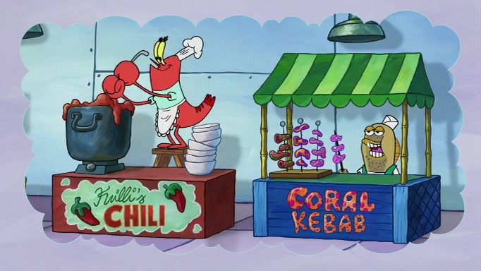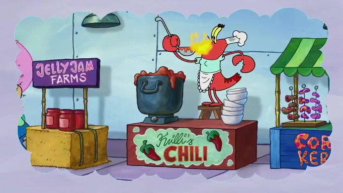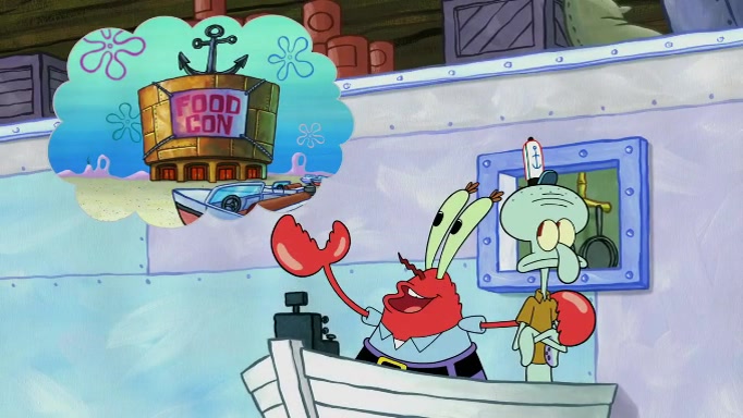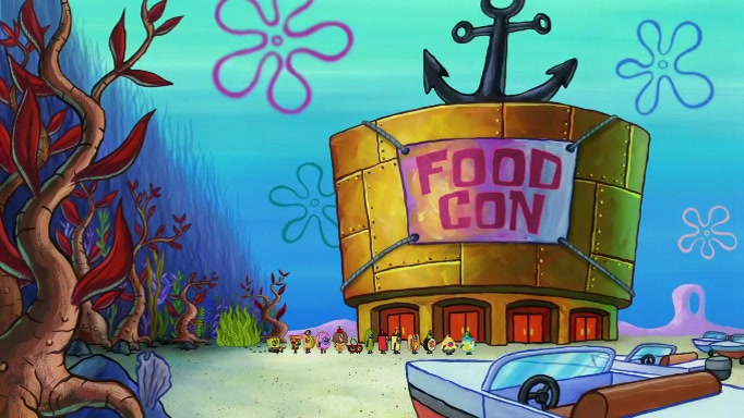 The episode opens at the Krusty Krab with a bored Squidward blowing a bunch of paper from straws onto a stack. Mr. Krabs suddenly busts into the Krusty Krab and announces that tommorow is Food Con. SpongeBob asks what it is and Mr. Krabs replies that it is an event where cooks and chefs battle for the top prize: the Golden Cornucopia. Mr. Krabs plans to win with the Krabby Patty and decides to take SpongeBob and Squidward with him and even Patrick needing the extra muscle. Mr. Krabs leads everyone to his car and shows that he has a bunch of Krabby Patties packed in a trailer to sell at the event. SpongeBob and Patrick are excited to be going on a road trip with Squidward being the only one not too thrilled to go.