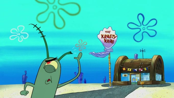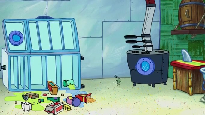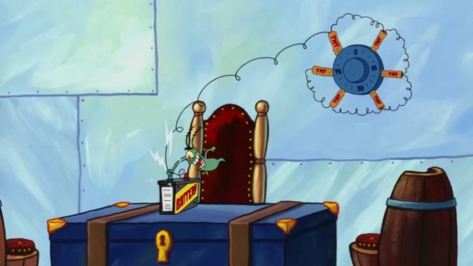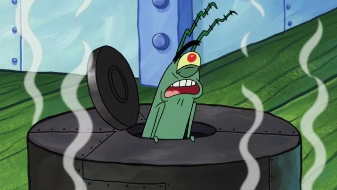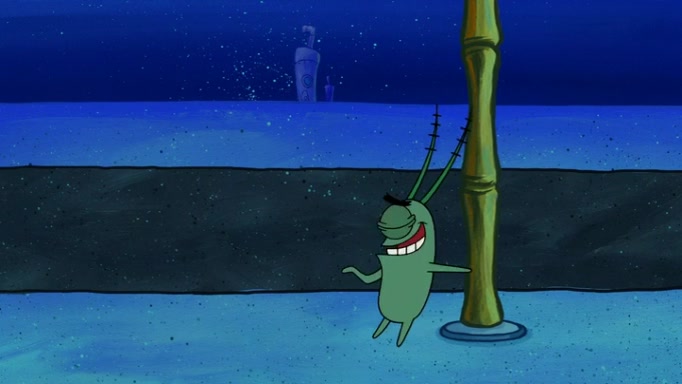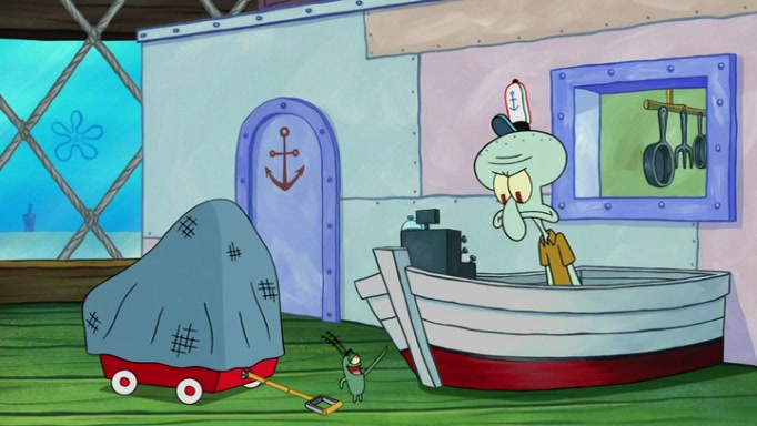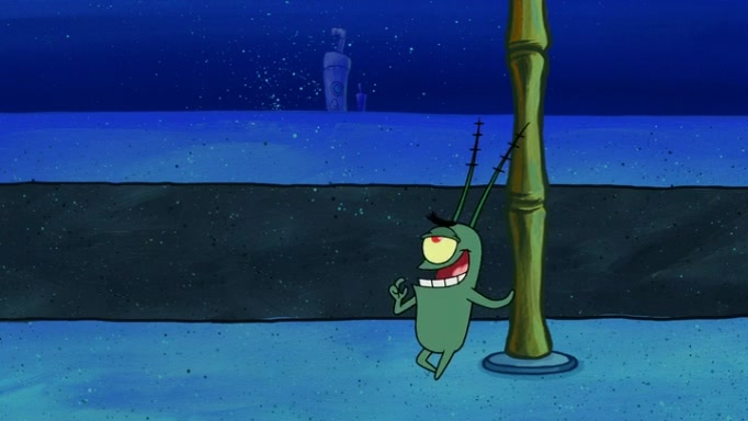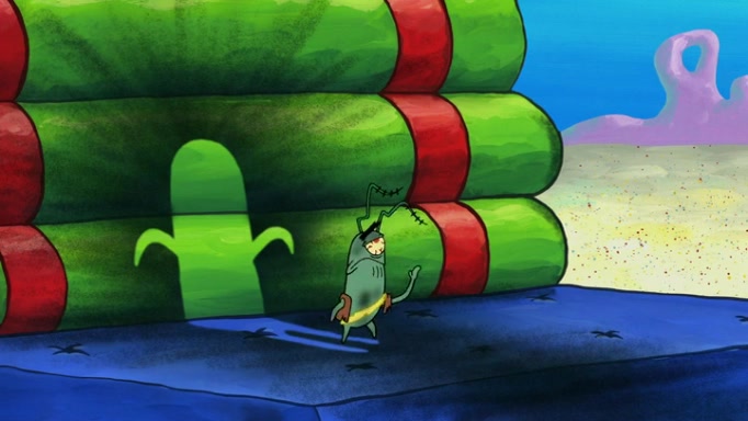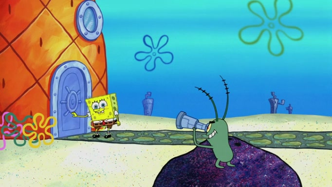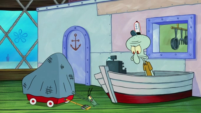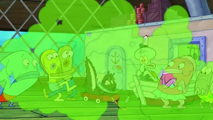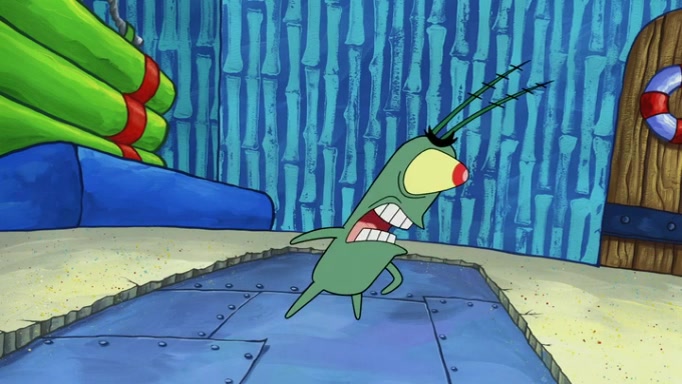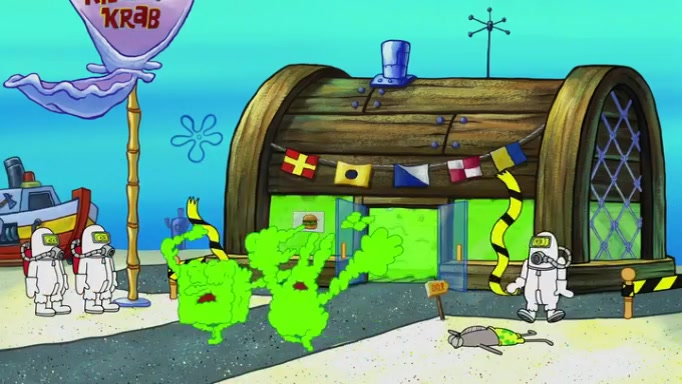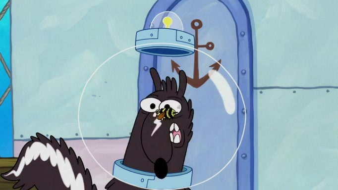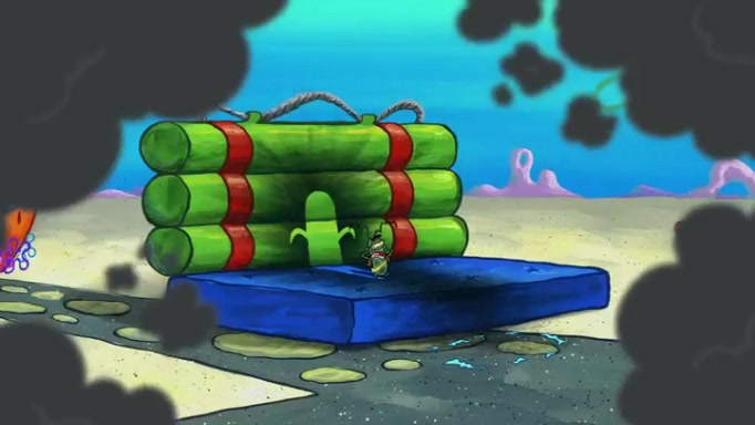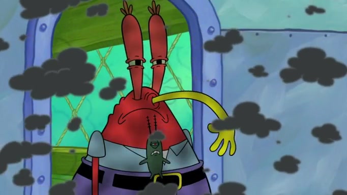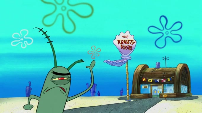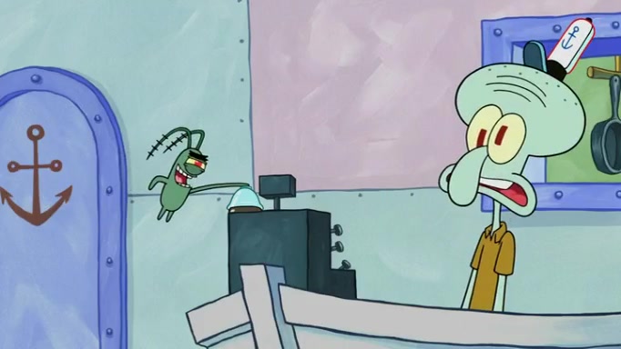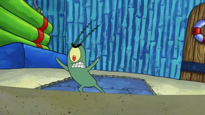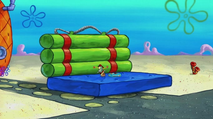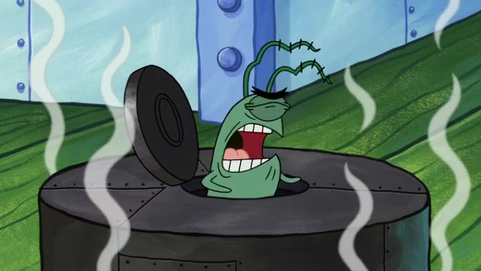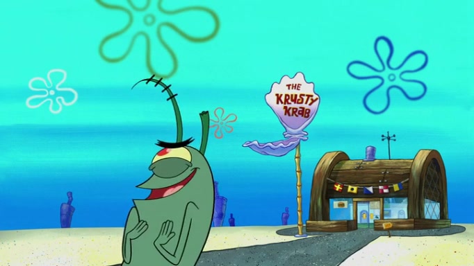 At the Chum Bucket, Plankton is on a wagon preparing for another attempt to steal the Krabby Patty Secret Formula. Plankton is pushed into the Krusty Krab and reveals to everyone there that he has a skunk (which he named Mr. Stinky). The customers think it's just a cat but Plankton sets the skunk off by scaring it with a bee. All of the customers, Squidward, SpongeBob, and Mr. Krabs frantically leave the Krusty Krab due to the stink. Mr. Krabs knows that Plankton is in the Krusty Krab alone and takes one of SpongeBob's arms to use as a nose plug and heads inside. Mr. Krabs heads into his office to find Plankton surrounded the safe with dynamite. Unfortunately for Plankton, the safe has another safe inside and Mr. Krabs crushes Plankton with his fist and is tossed out of the window by SpongeBob. The skunk is sent away toward Bikini Bottom causing the people to run away. Mr. Krabs, worried something like that will happen again, wants SpongeBob to take the secret formula home with him while he makes adjustments to his safe. However, the two of them didn't know Plankton was listening to everything with is severed antenna.