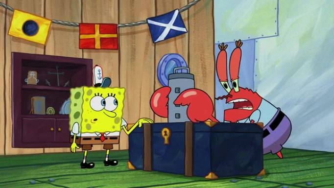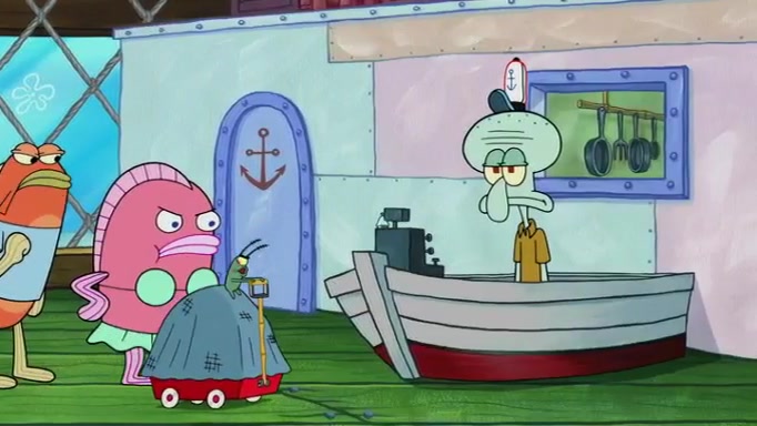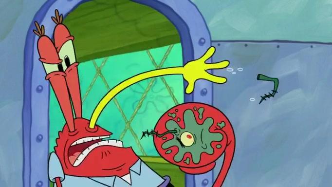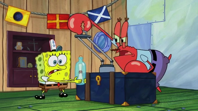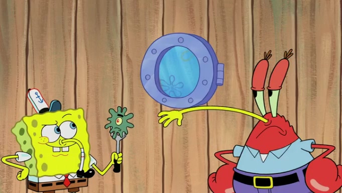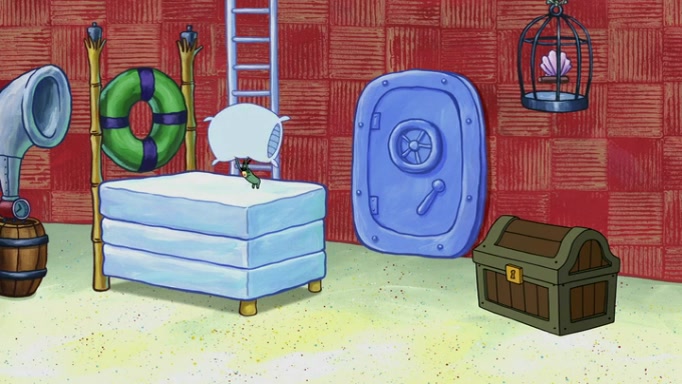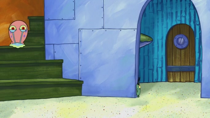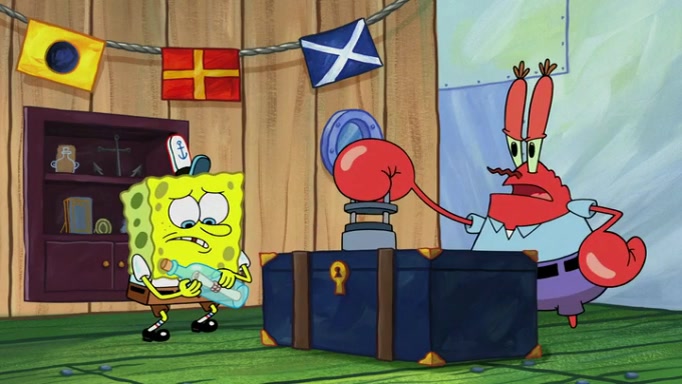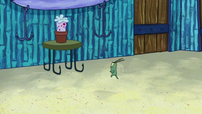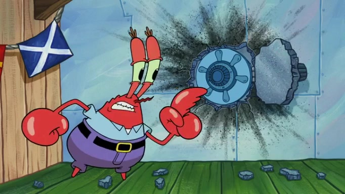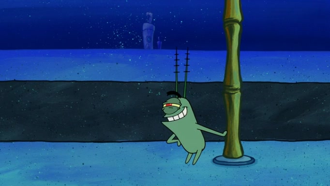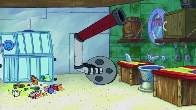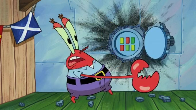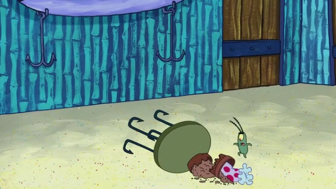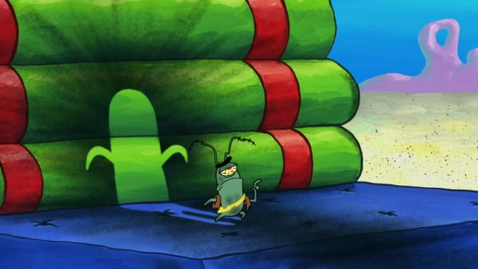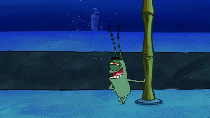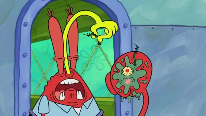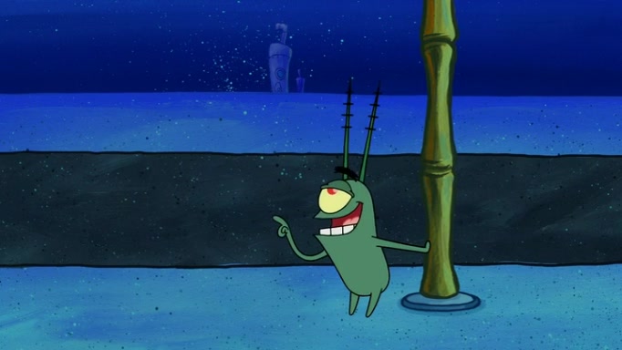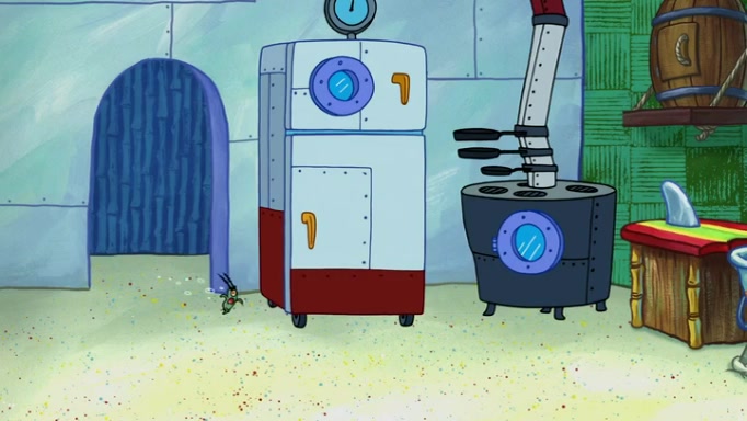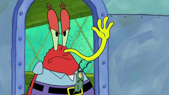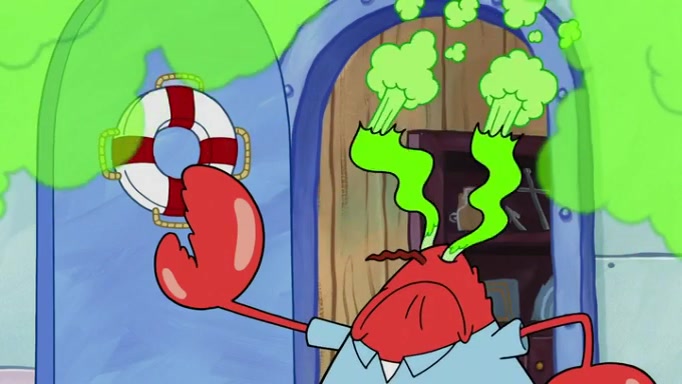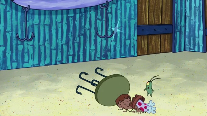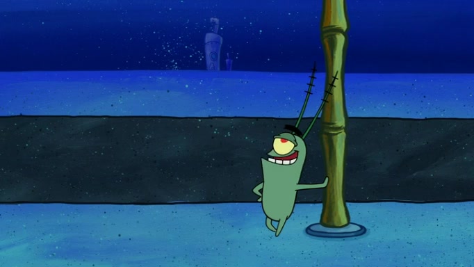 At the Chum Bucket, Plankton is on a wagon preparing for another attempt to steal the Krabby Patty Secret Formula. Plankton is pushed into the Krusty Krab and reveals to everyone there that he has a skunk (which he named Mr. Stinky). The customers think it's just a cat but Plankton sets the skunk off by scaring it with a bee. All of the customers, Squidward, SpongeBob, and Mr. Krabs frantically leave the Krusty Krab due to the stink. Mr. Krabs knows that Plankton is in the Krusty Krab alone and takes one of SpongeBob's arms to use as a nose plug and heads inside. Mr. Krabs heads into his office to find Plankton surrounded the safe with dynamite. Unfortunately for Plankton, the safe has another safe inside and Mr. Krabs crushes Plankton with his fist and is tossed out of the window by SpongeBob. The skunk is sent away toward Bikini Bottom causing the people to run away. Mr. Krabs, worried something like that will happen again, wants SpongeBob to take the secret formula home with him while he makes adjustments to his safe. However, the two of them didn't know Plankton was listening to everything with is severed antenna.