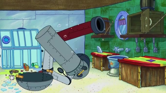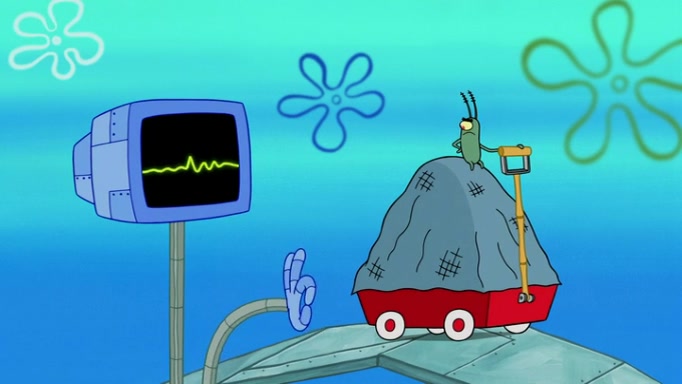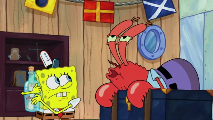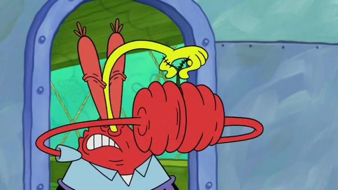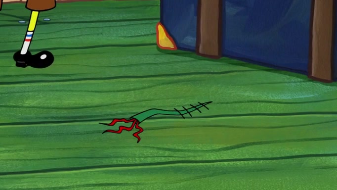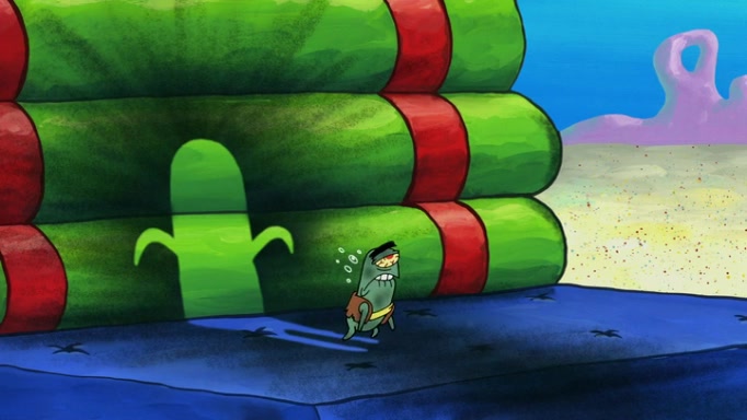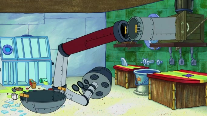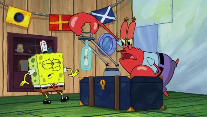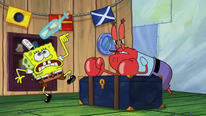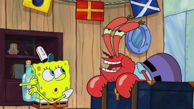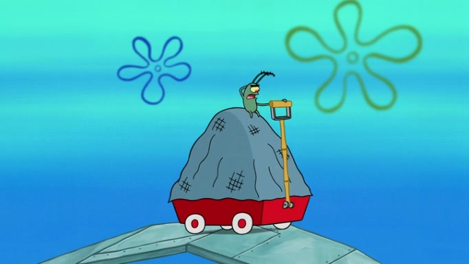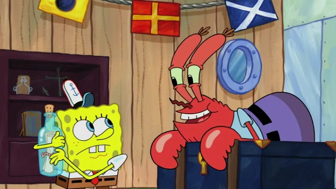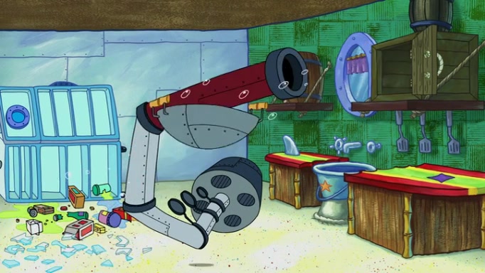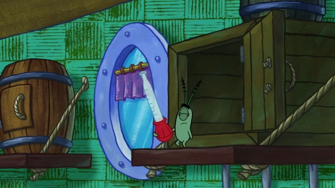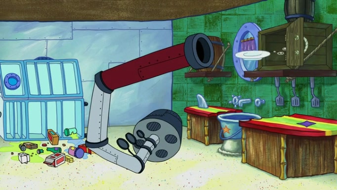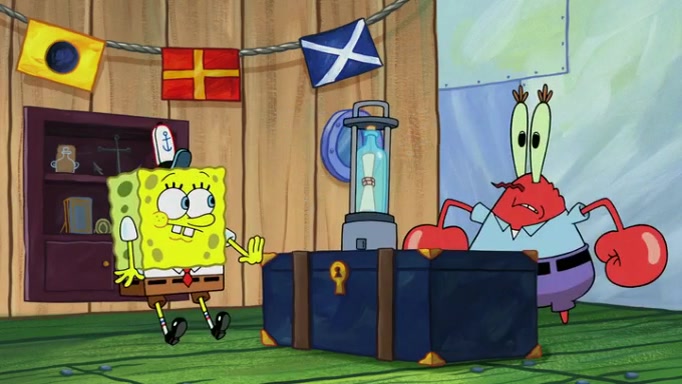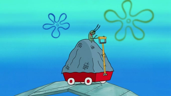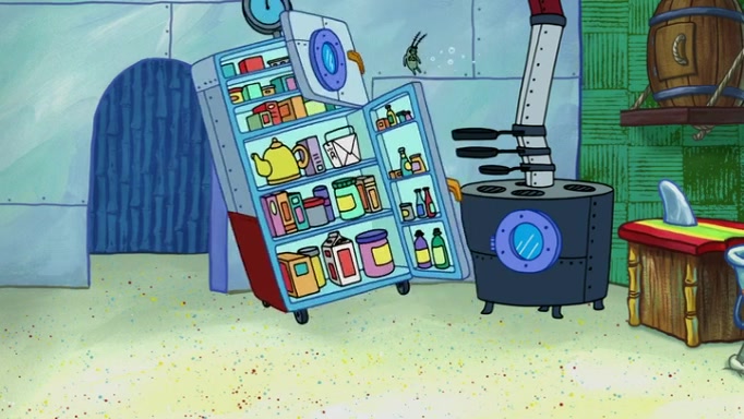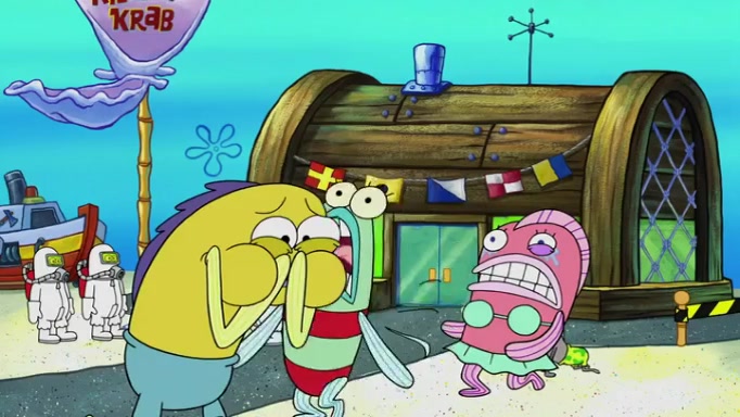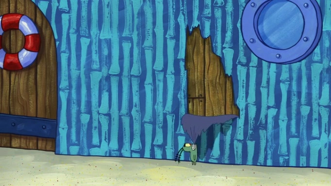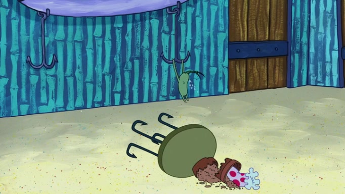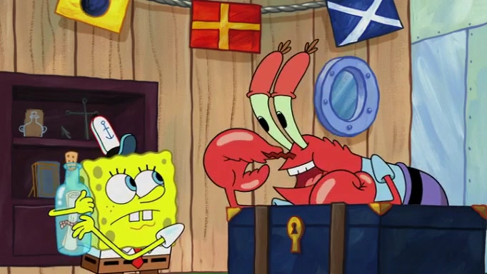 At the Chum Bucket, Plankton is on a wagon preparing for another attempt to steal the Krabby Patty Secret Formula. Plankton is pushed into the Krusty Krab and reveals to everyone there that he has a skunk (which he named Mr. Stinky). The customers think it's just a cat but Plankton sets the skunk off by scaring it with a bee. All of the customers, Squidward, SpongeBob, and Mr. Krabs frantically leave the Krusty Krab due to the stink. Mr. Krabs knows that Plankton is in the Krusty Krab alone and takes one of SpongeBob's arms to use as a nose plug and heads inside. Mr. Krabs heads into his office to find Plankton surrounded the safe with dynamite. Unfortunately for Plankton, the safe has another safe inside and Mr. Krabs crushes Plankton with his fist and is tossed out of the window by SpongeBob. The skunk is sent away toward Bikini Bottom causing the people to run away. Mr. Krabs, worried something like that will happen again, wants SpongeBob to take the secret formula home with him while he makes adjustments to his safe. However, the two of them didn't know Plankton was listening to everything with is severed antenna.