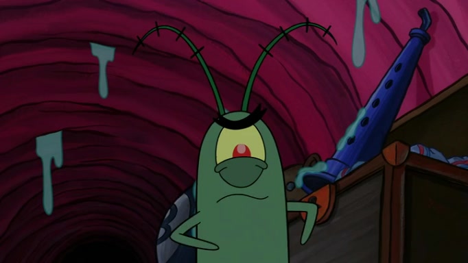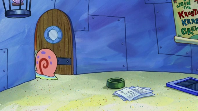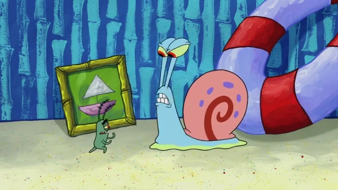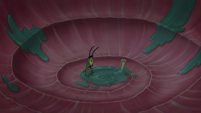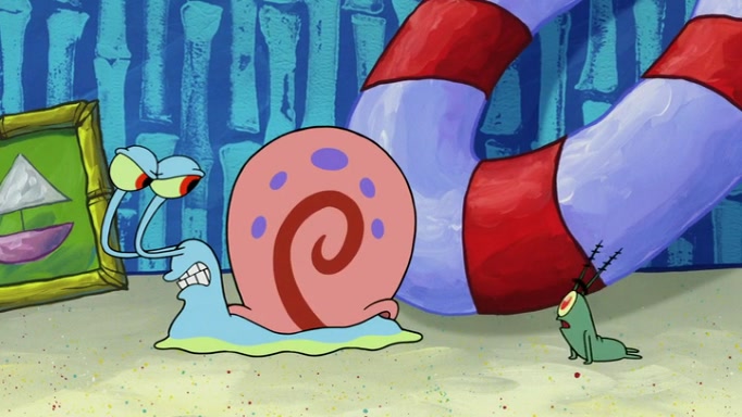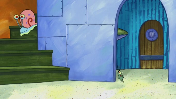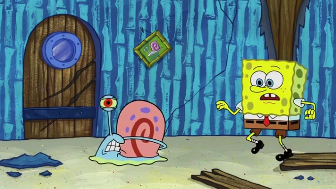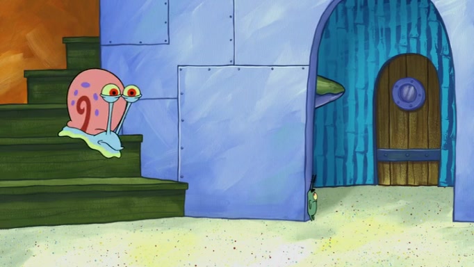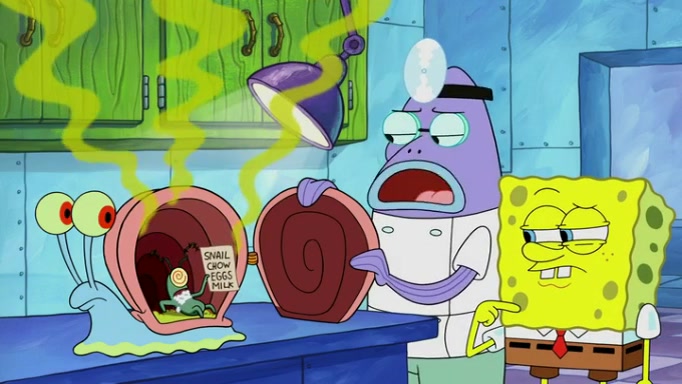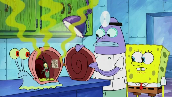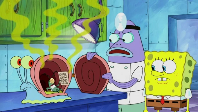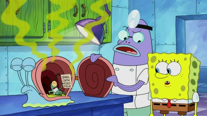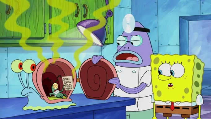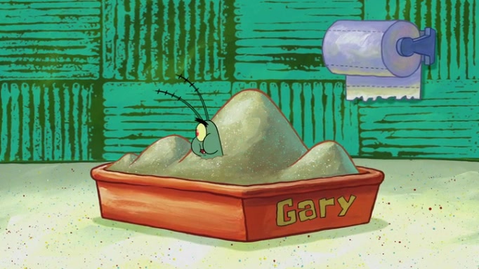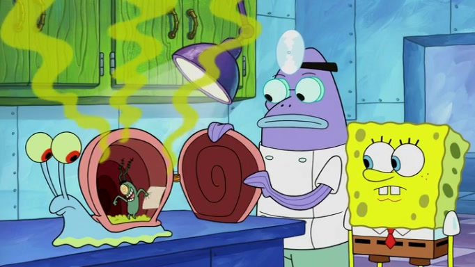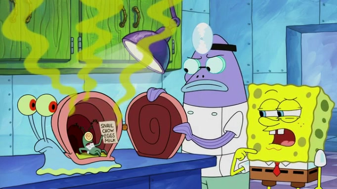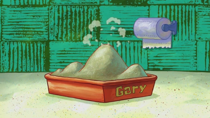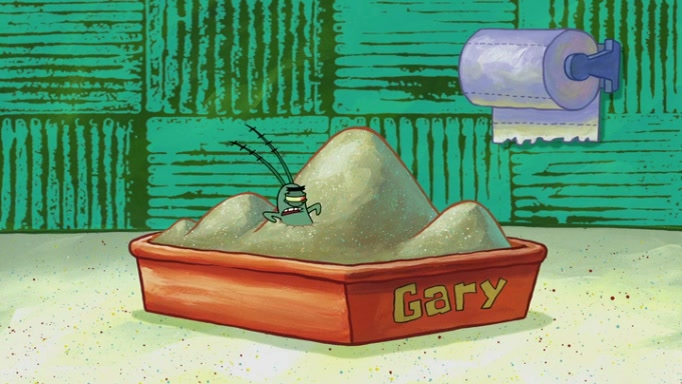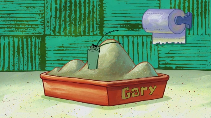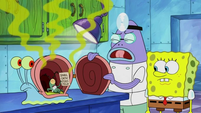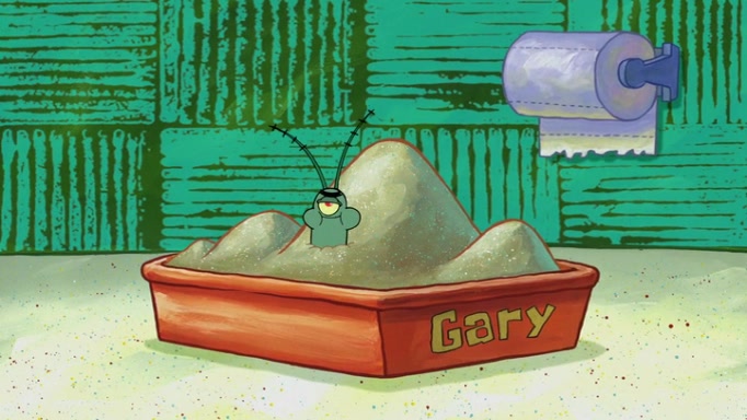 Plankton finally manages to get inside SpongeBob's house by distracting Gary with a fake cut-out of himself. Plankton searches through SpongeBob's house tearing up everything in sight until he is confronted by Gary. Gary manages to beat up Plankton until Plankton escapes through Gary's shell thinking the secret formula is inside. Gary's eyeball starts to chase Plankton throughout his shell. SpongeBob eventually comes home and is horrified by the condition of his house. However, he is glad that the secret formula is safe (which was on top of his television the entire time). SpongeBob notices something is wrong with Gary and decides to take him to the vet. Back inside Gary's shell, Plankton makes it to the center of the shell and appears to have gotten the secret formula. However, it turns out that Plankton was hallucinating the entire time due to the fumes from Gary's shell and runs off into the sunset with what he believes to be the formula (which was actually SpongeBob's grocery list).
