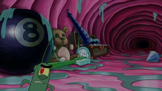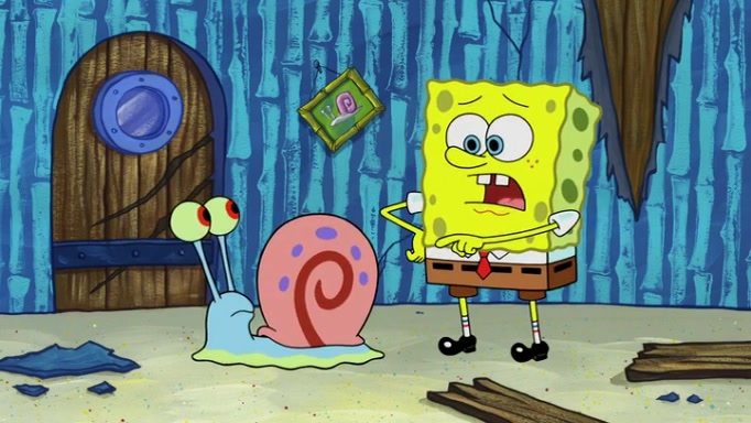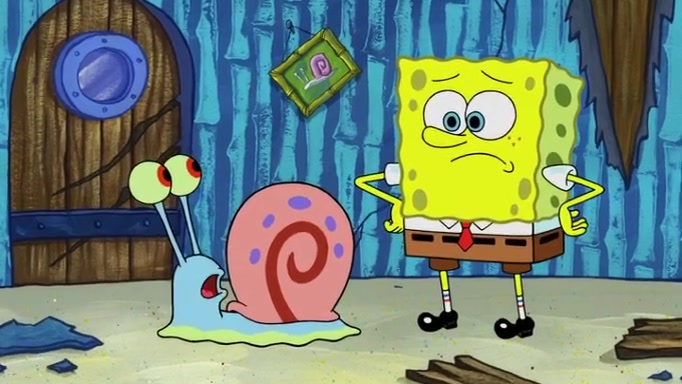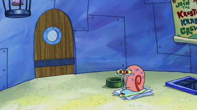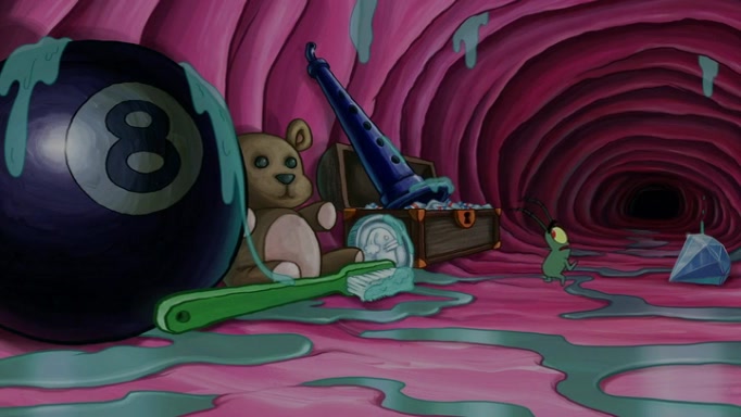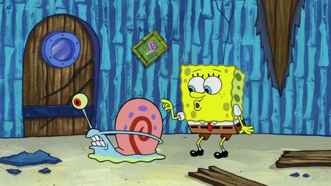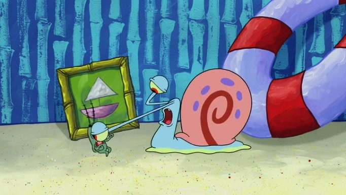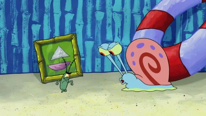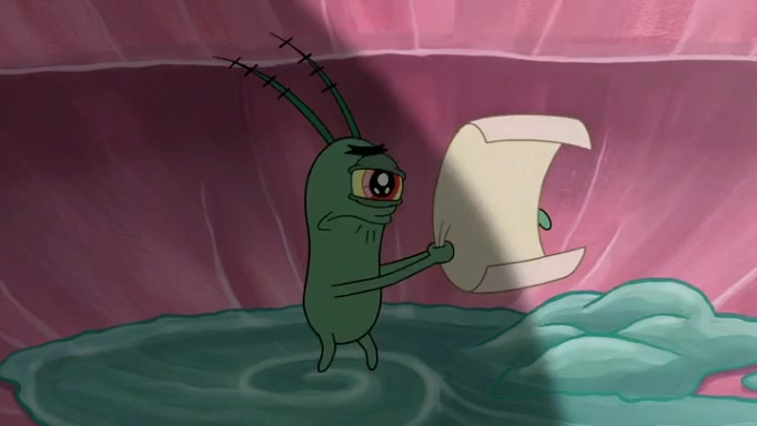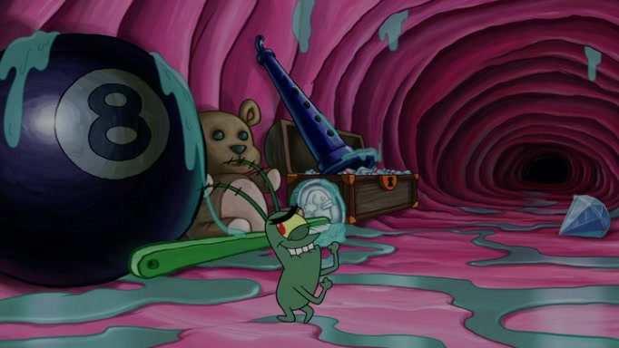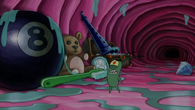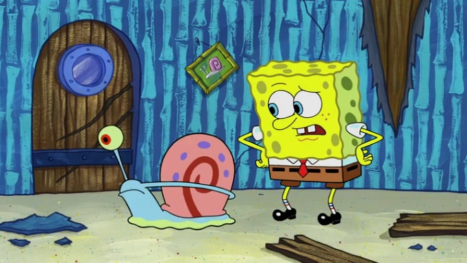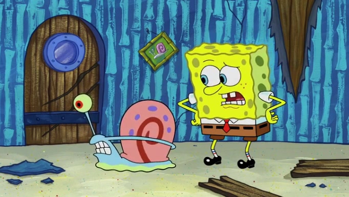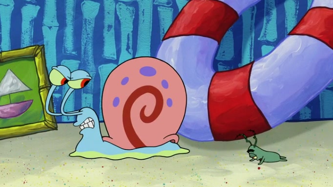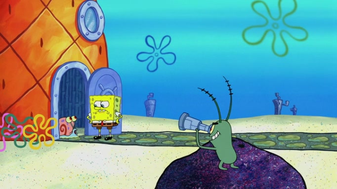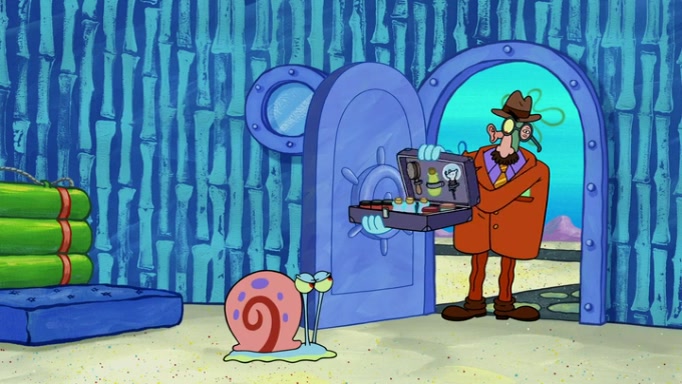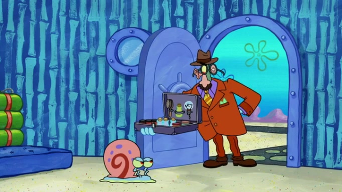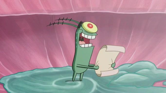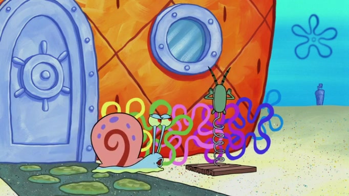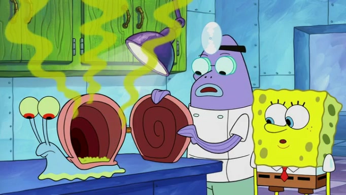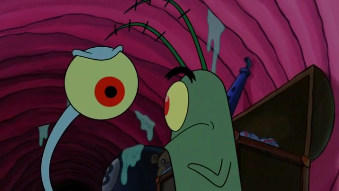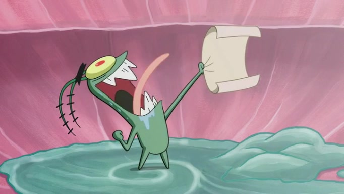 Plankton finally manages to get inside SpongeBob's house by distracting Gary with a fake cut-out of himself. Plankton searches through SpongeBob's house tearing up everything in sight until he is confronted by Gary. Gary manages to beat up Plankton until Plankton escapes through Gary's shell thinking the secret formula is inside. Gary's eyeball starts to chase Plankton throughout his shell. SpongeBob eventually comes home and is horrified by the condition of his house. However, he is glad that the secret formula is safe (which was on top of his television the entire time). SpongeBob notices something is wrong with Gary and decides to take him to the vet. Back inside Gary's shell, Plankton makes it to the center of the shell and appears to have gotten the secret formula. However, it turns out that Plankton was hallucinating the entire time due to the fumes from Gary's shell and runs off into the sunset with what he believes to be the formula (which was actually SpongeBob's grocery list).