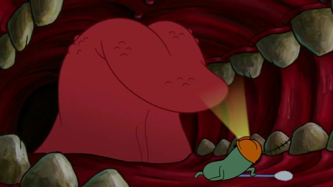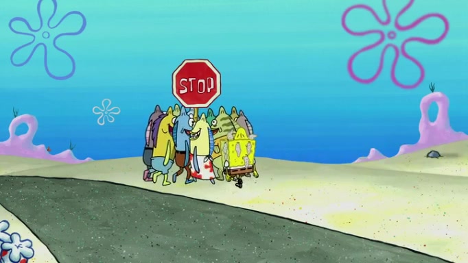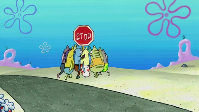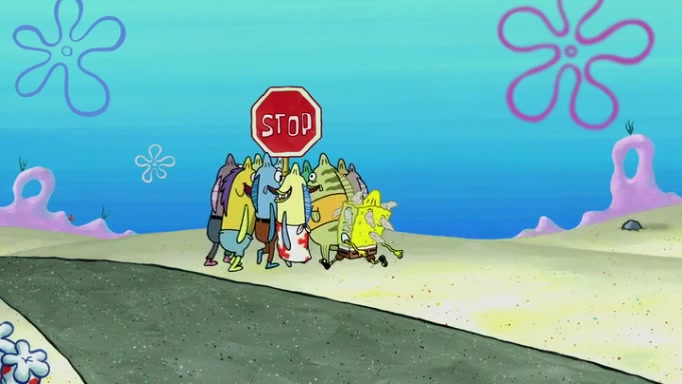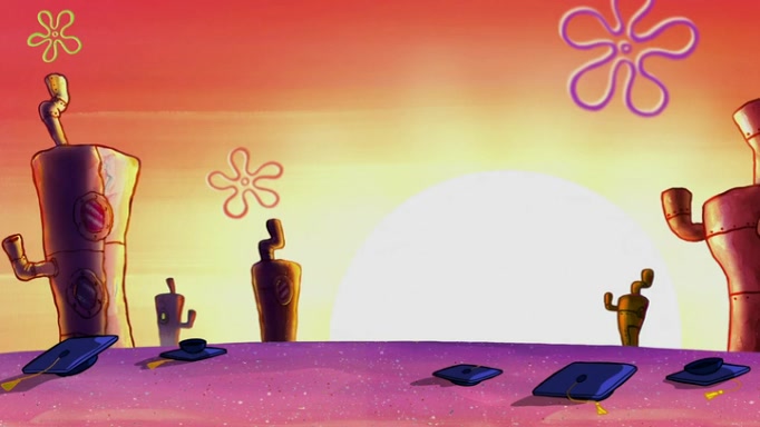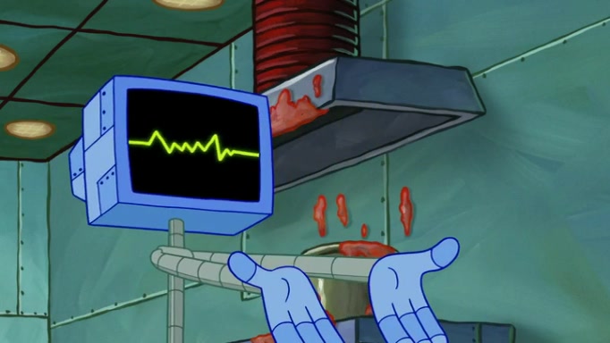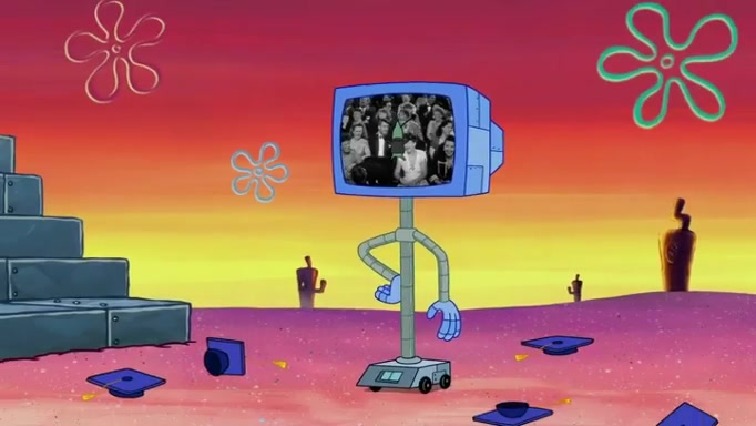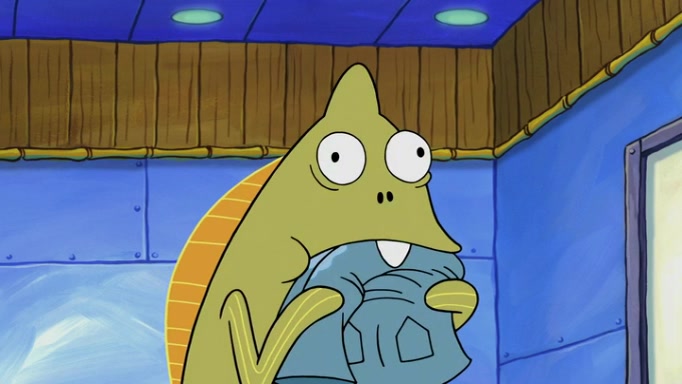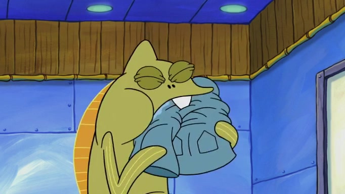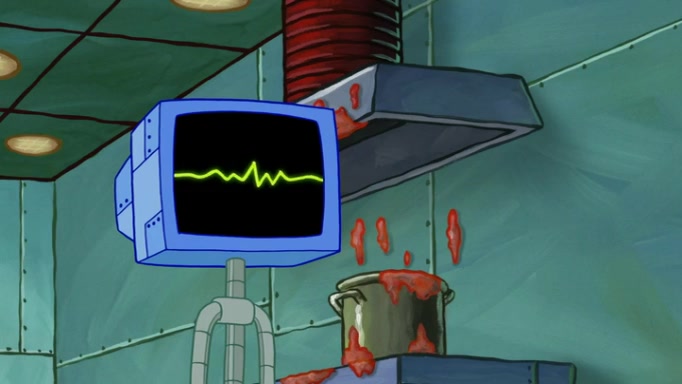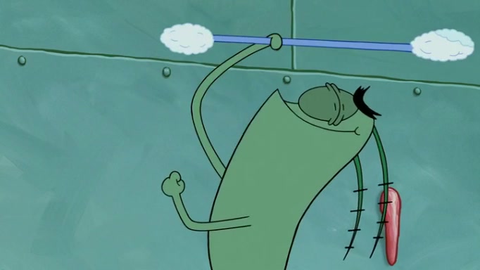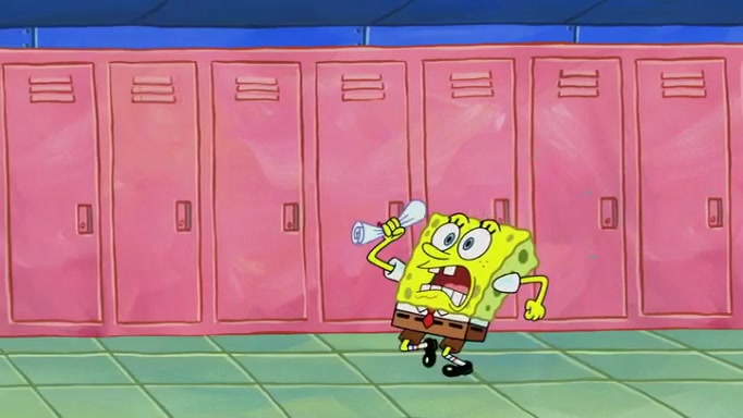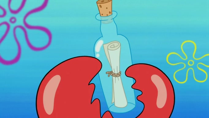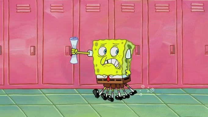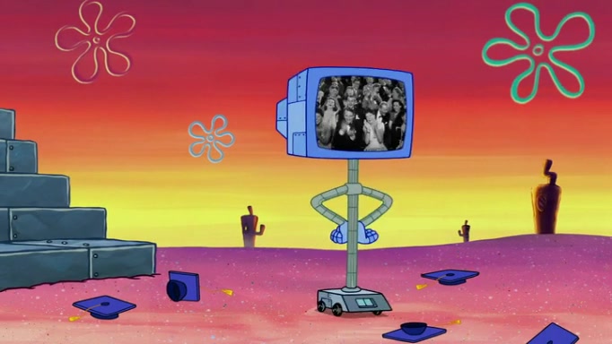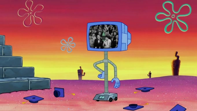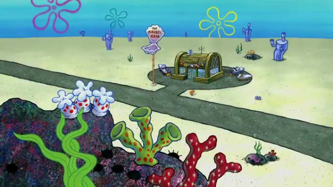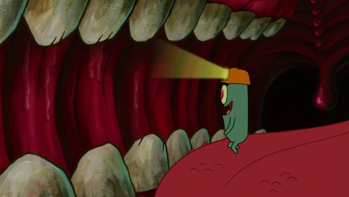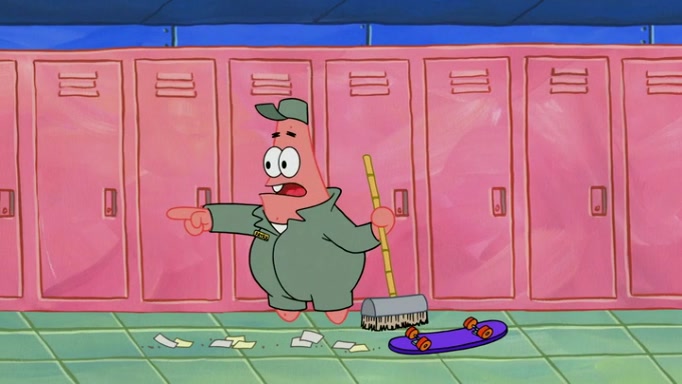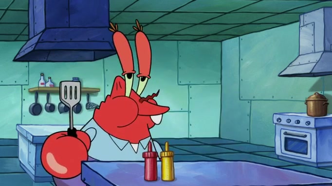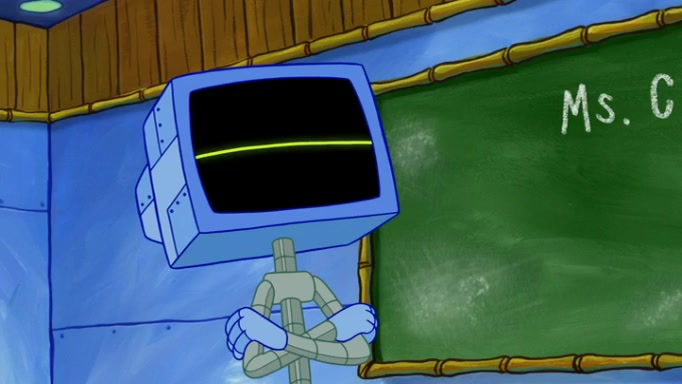 Plankton, on the other hand, was unable to learn anything because he continued to act dumb and became a school bully to Mr. Krabs. On the day of graduation, Mr. Krabs perfected the Krabby Patty formula in Home EC. However, when Plankton tasted the Krabby Patty, he demanded Mr. Krabs to hand him the formula, but was stopped by SpongeBob who inexplicably showed up to give Mr. Krabs his diploma. Mr. Krabs reveals that he took accelerated classes and graduated months ago. Plankton was confused as to why all this happened, but when Sandy showed up and graded Mr. Krabs an A+ for acting everything out, he realized the Mr. Krabs was only pretending to be scared. Defeated and humiliated, Mr. Krabs threw Plankton outside and made him land on Karen's computer screen. Karen carries Plankton away so he can start his post-college years.