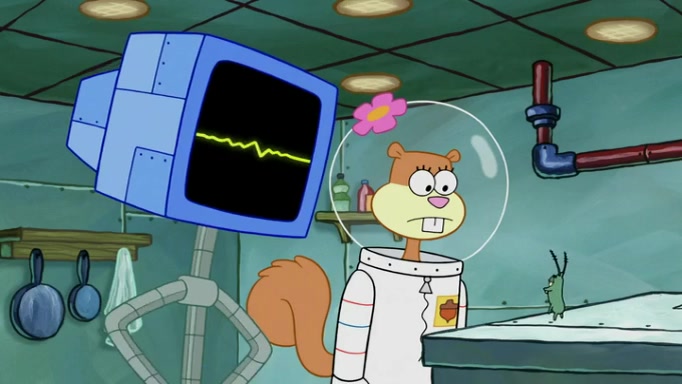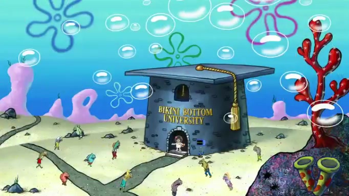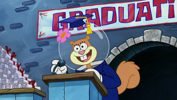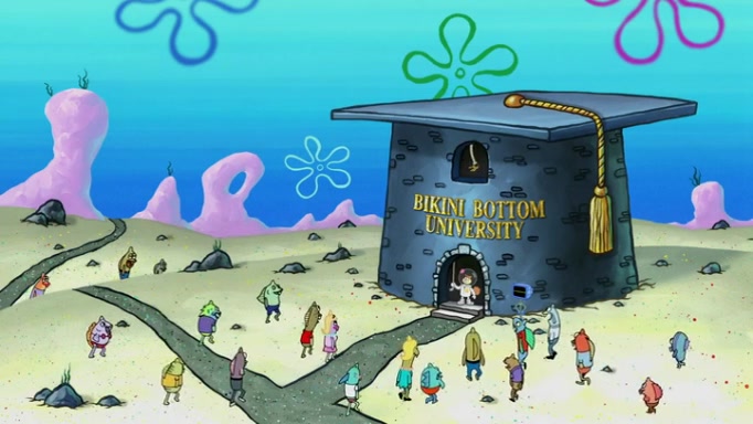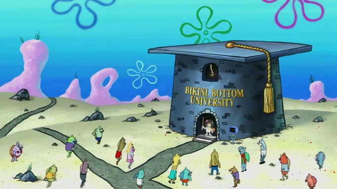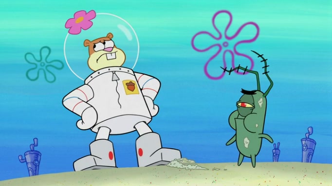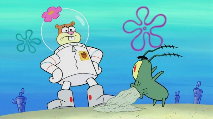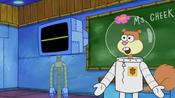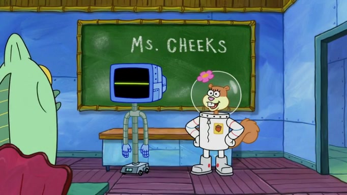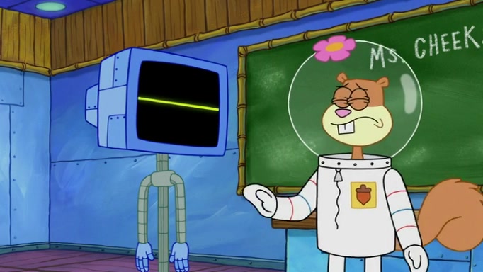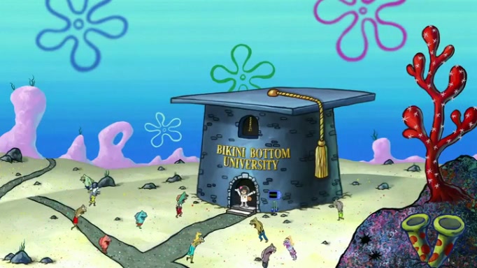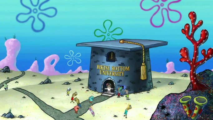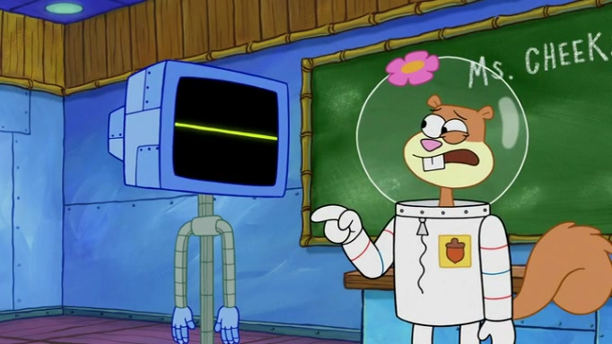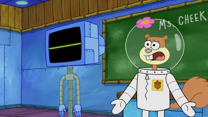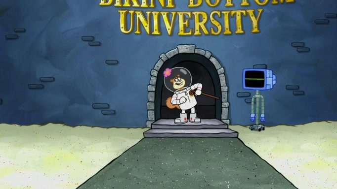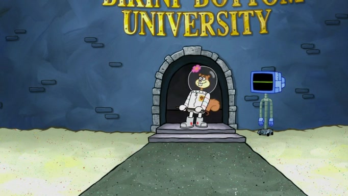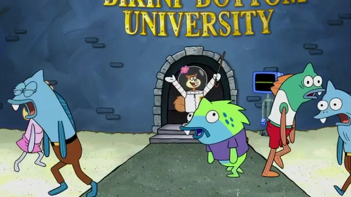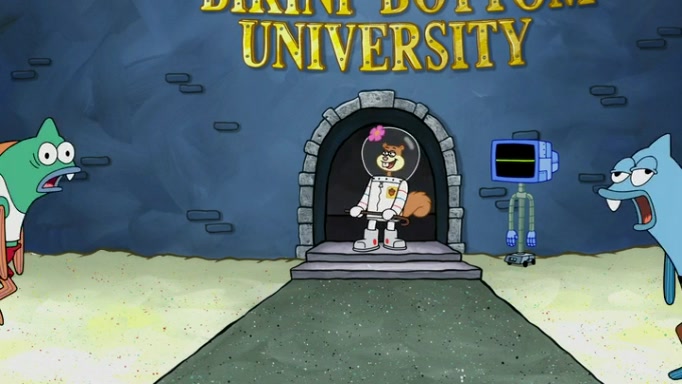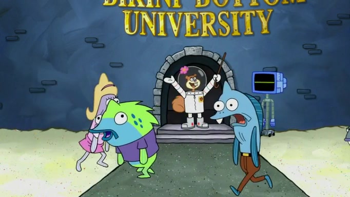 The next day, Sandy notices that everyone, including her friends, are acting stupid. She learns about the accident from Karen and also learned that the reason the idiot sauce didn't affect either of them was because Sandy was in her treedome and Karen is a computer. They try snapping Plankton out of his idiocy by doing many things like shining a light on him, feeding him with nuts, and even yelling at him. But their efforts were no avail. However, Sandy has an idea on how to fix this. Karen and Sandy opened up a new college education system called Bikini Bottom University where they managed to educate the entire town in one semester, which also helped return everyone back to their normal selves.