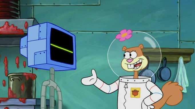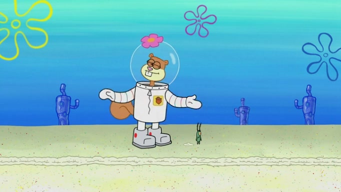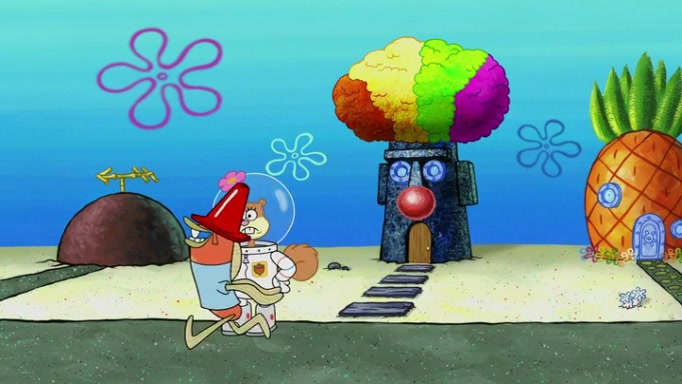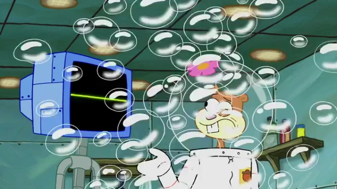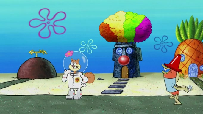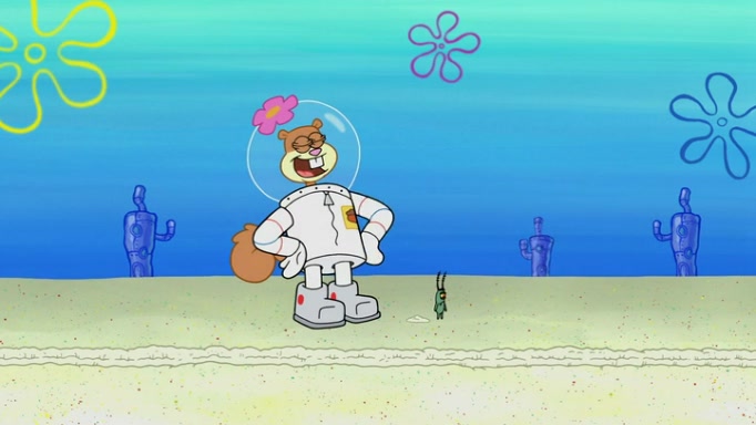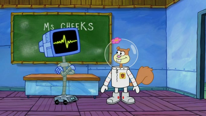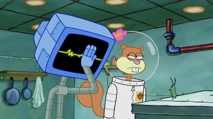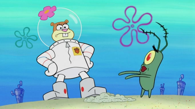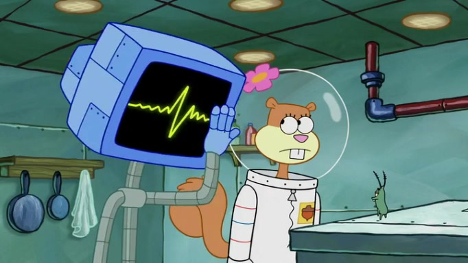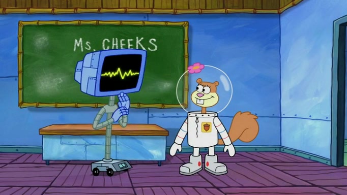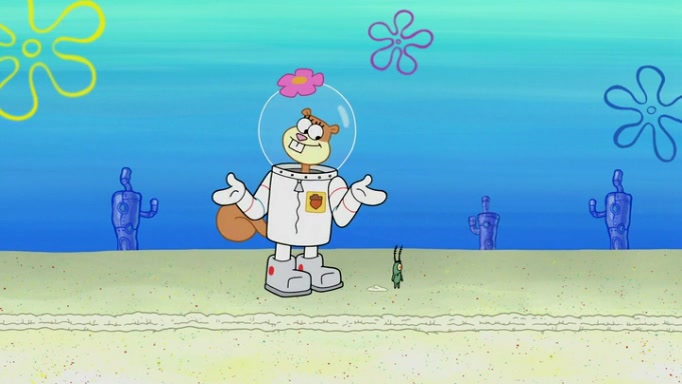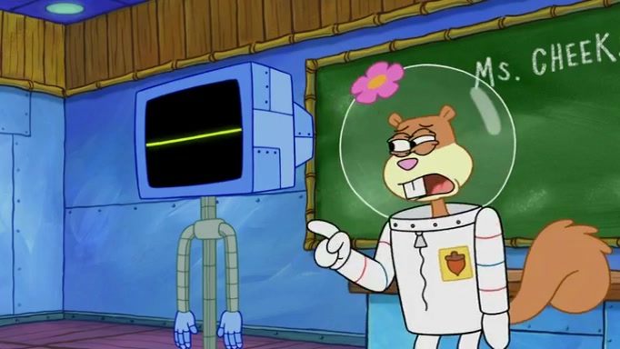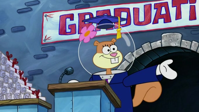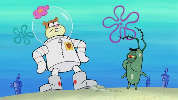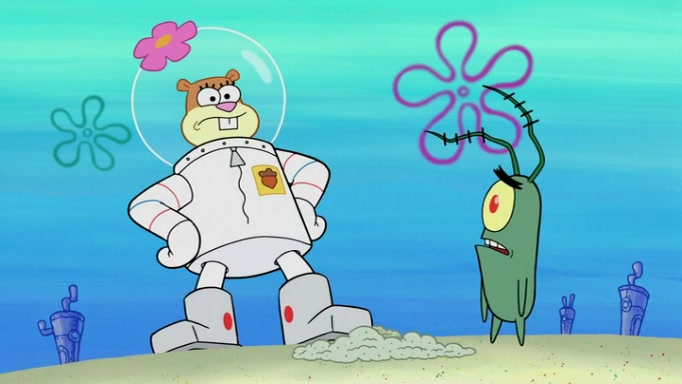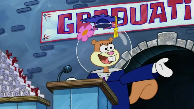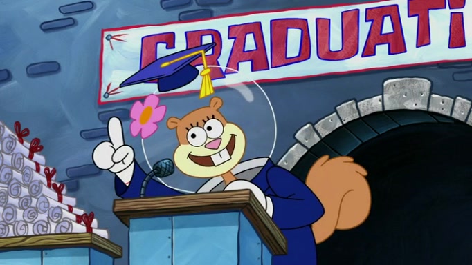 The next day, Sandy notices that everyone, including her friends, are acting stupid. She learns about the accident from Karen and also learned that the reason the idiot sauce didn't affect either of them was because Sandy was in her treedome and Karen is a computer. They try snapping Plankton out of his idiocy by doing many things like shining a light on him, feeding him with nuts, and even yelling at him. But their efforts were no avail. However, Sandy has an idea on how to fix this. Karen and Sandy opened up a new college education system called Bikini Bottom University where they managed to educate the entire town in one semester, which also helped return everyone back to their normal selves.