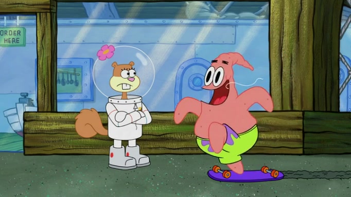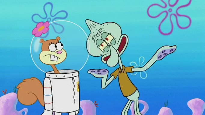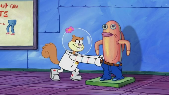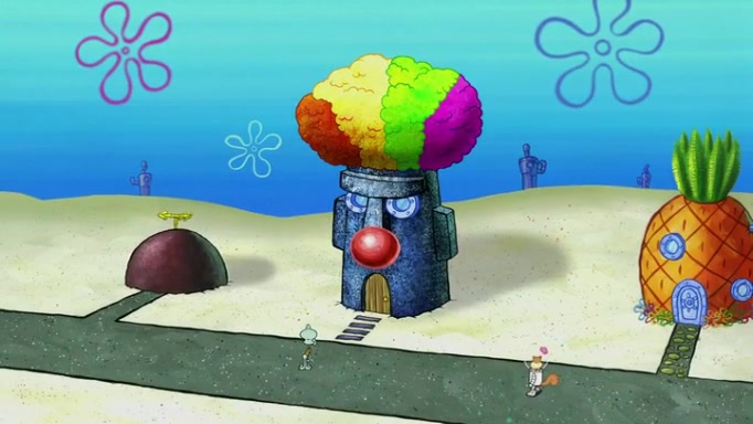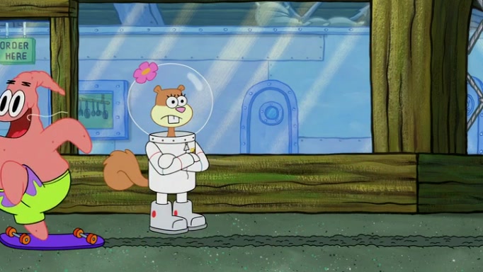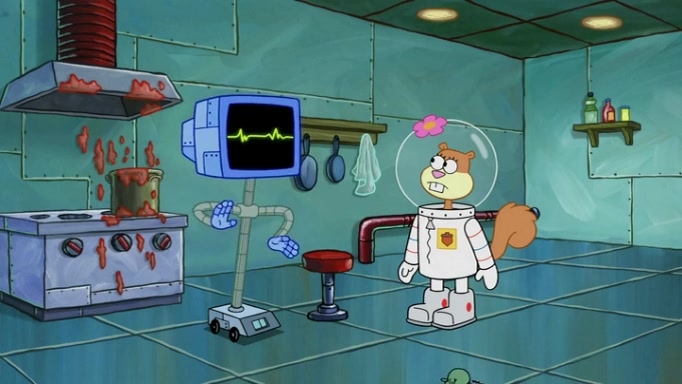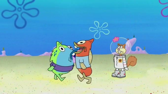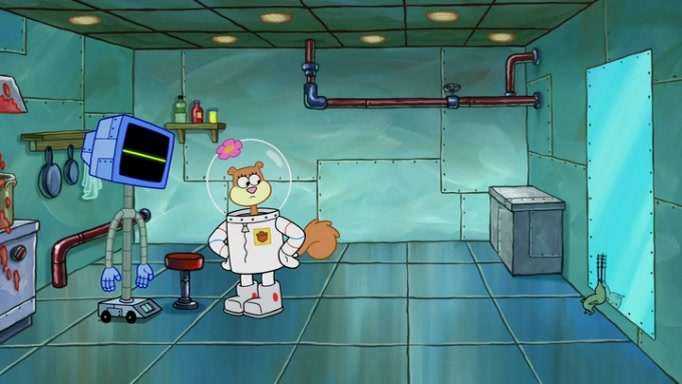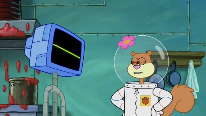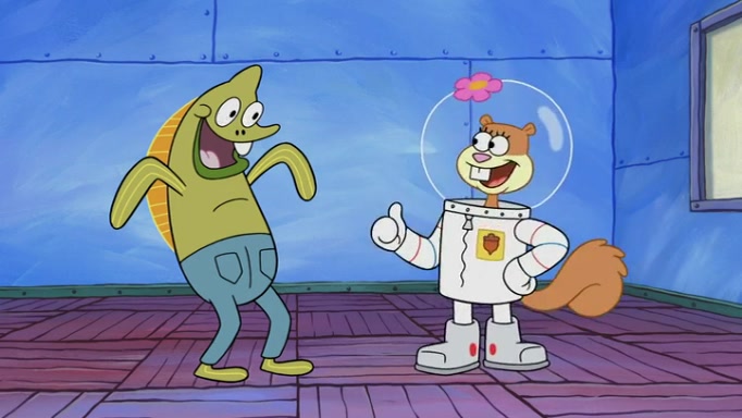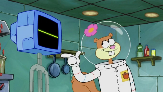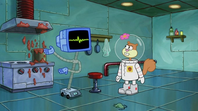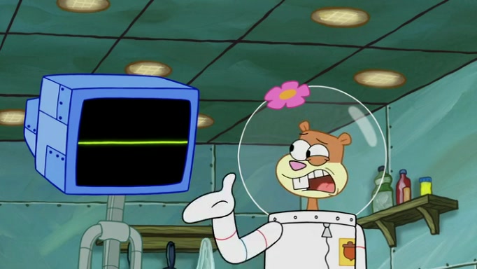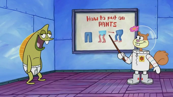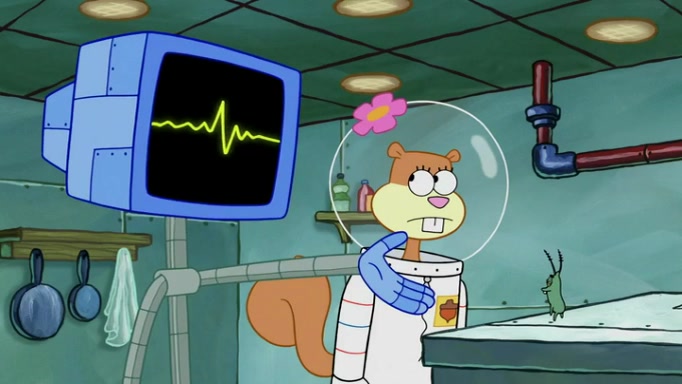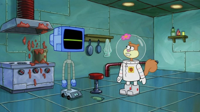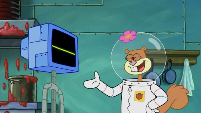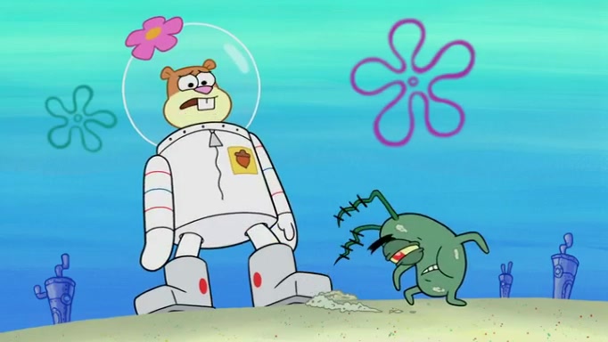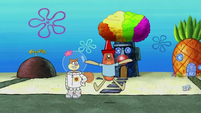 The next day, Sandy notices that everyone, including her friends, are acting stupid. She learns about the accident from Karen and also learned that the reason the idiot sauce didn't affect either of them was because Sandy was in her treedome and Karen is a computer. They try snapping Plankton out of his idiocy by doing many things like shining a light on him, feeding him with nuts, and even yelling at him. But their efforts were no avail. However, Sandy has an idea on how to fix this. Karen and Sandy opened up a new college education system called Bikini Bottom University where they managed to educate the entire town in one semester, which also helped return everyone back to their normal selves.