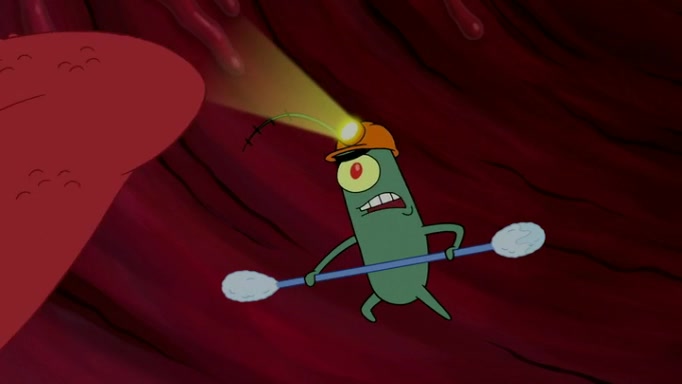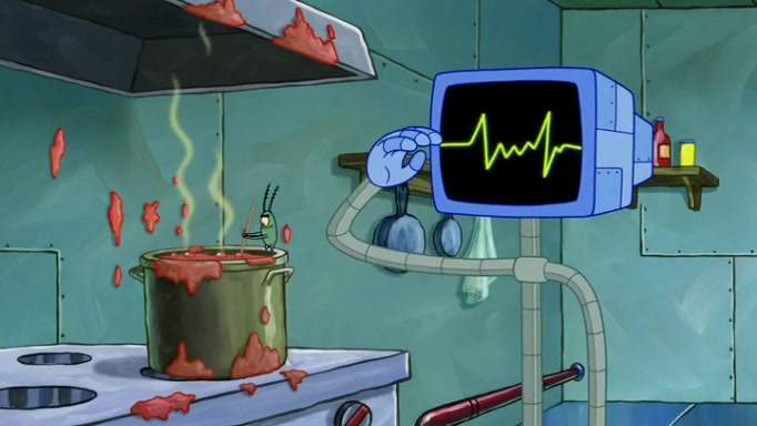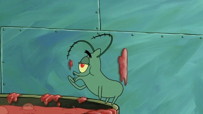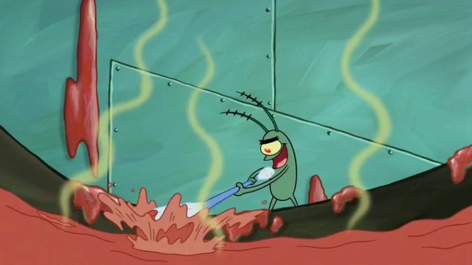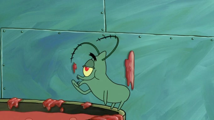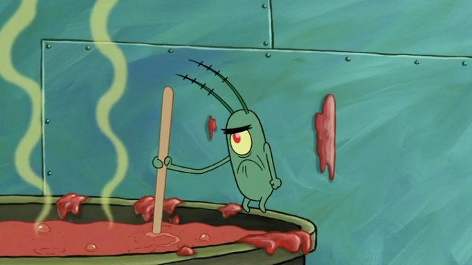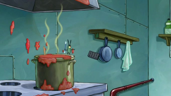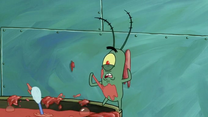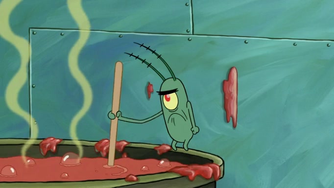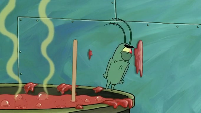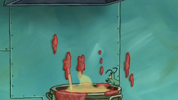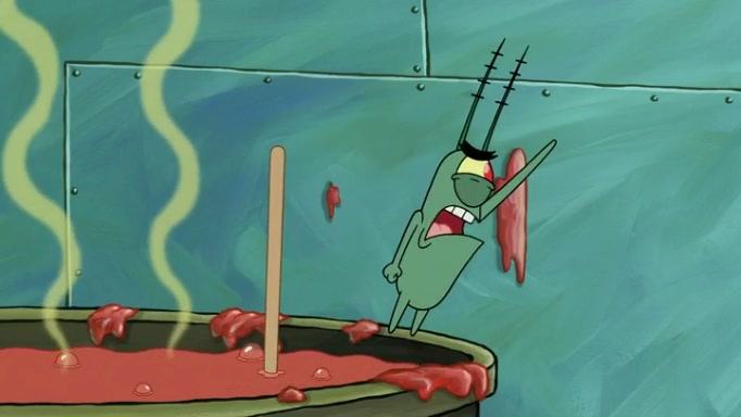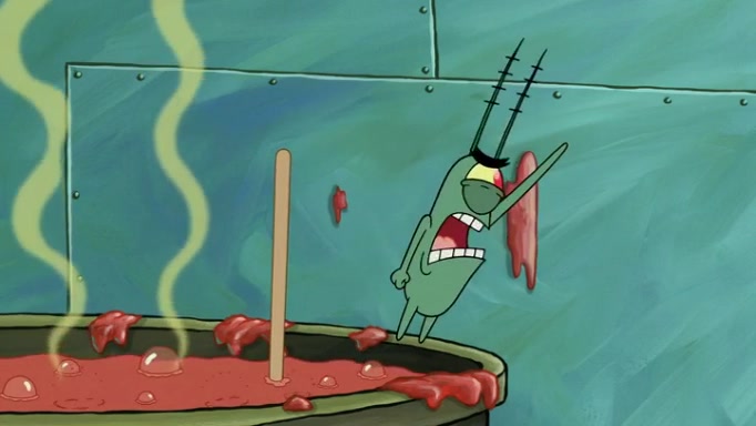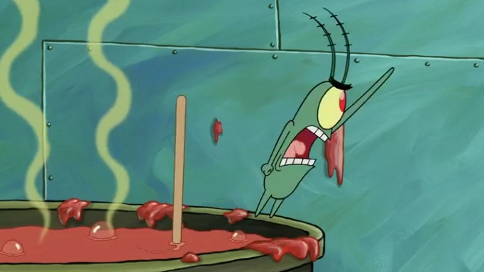 Plankton breaks into Patrick's rock and takes a sample of his saliva. Plankton then makes sauce in his kitchen, which incredibly smells horrible. Plankton explains to Karen that when he adds Patrick's saliva in the sauce, it will become Salsa Imbecilicus aka Idiot Sauce. He plans on giving the sauce to Mr. Krabs so he will become as dumb as Patrick and get the secret formula. Karen offered to help but Plankton refuses. Plankton began adding the Patrick's saliva in the sauce, however, the sauce boils over and splatters onto Plankton, which causes him to act stupid. The steam from the sauce gets flown through the chimney and absorbs a nearby cloud. The cloud then rains the sauce over Bikini Bottom, which causes the town to become idiots.