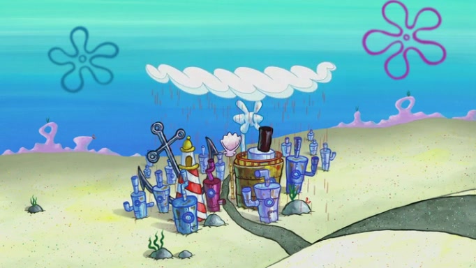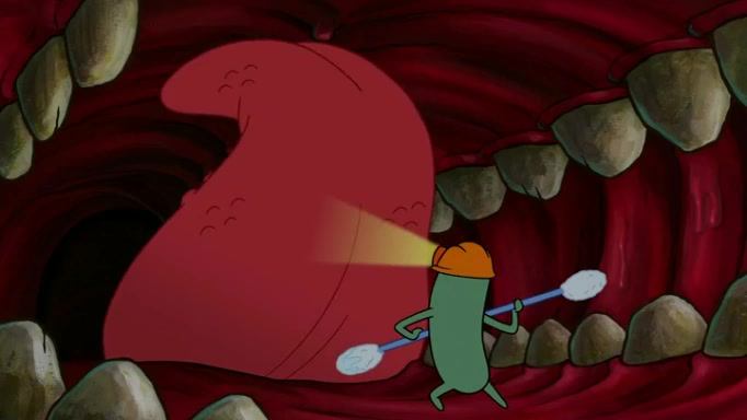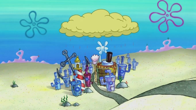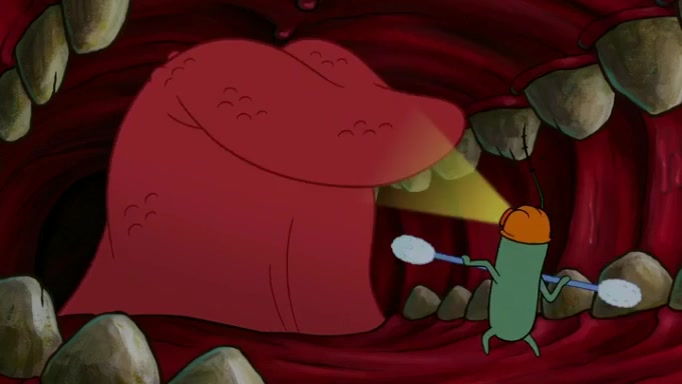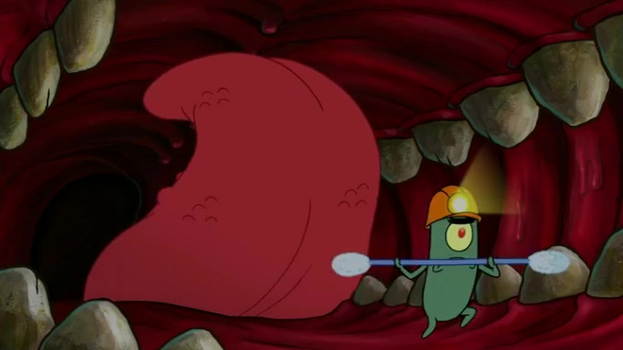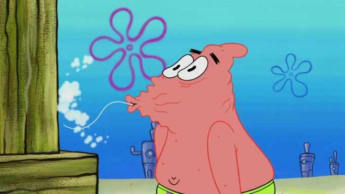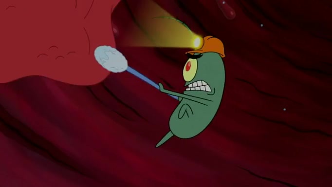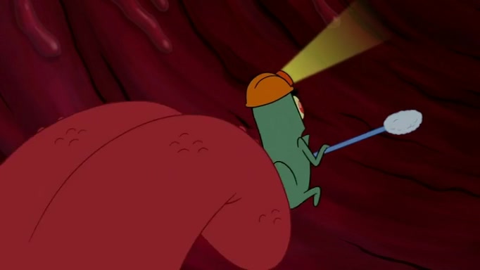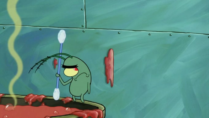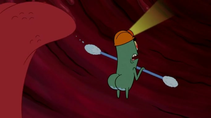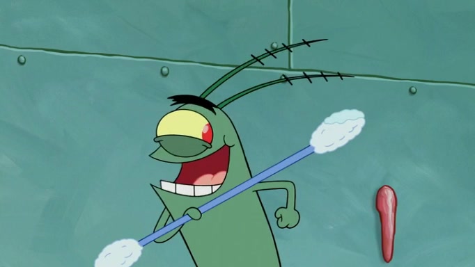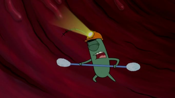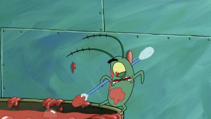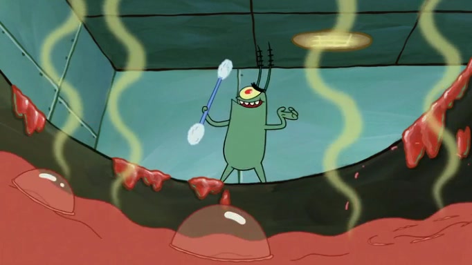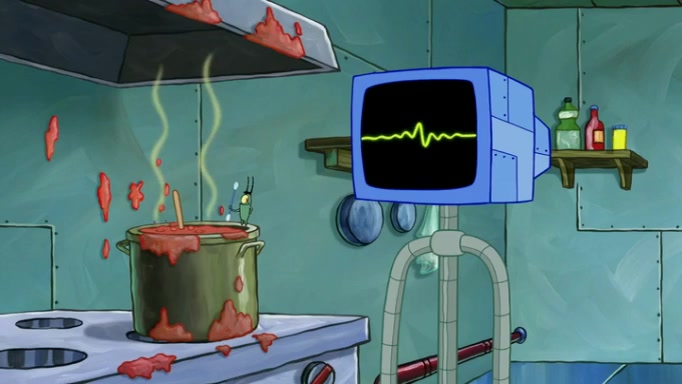 Plankton breaks into Patrick's rock and takes a sample of his saliva. Plankton then makes sauce in his kitchen, which incredibly smells horrible. Plankton explains to Karen that when he adds Patrick's saliva in the sauce, it will become Salsa Imbecilicus aka Idiot Sauce. He plans on giving the sauce to Mr. Krabs so he will become as dumb as Patrick and get the secret formula. Karen offered to help but Plankton refuses. Plankton began adding the Patrick's saliva in the sauce, however, the sauce boils over and splatters onto Plankton, which causes him to act stupid. The steam from the sauce gets flown through the chimney and absorbs a nearby cloud. The cloud then rains the sauce over Bikini Bottom, which causes the town to become idiots.