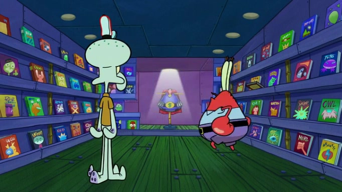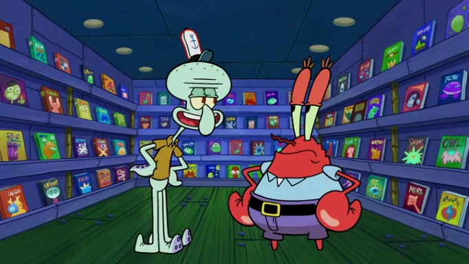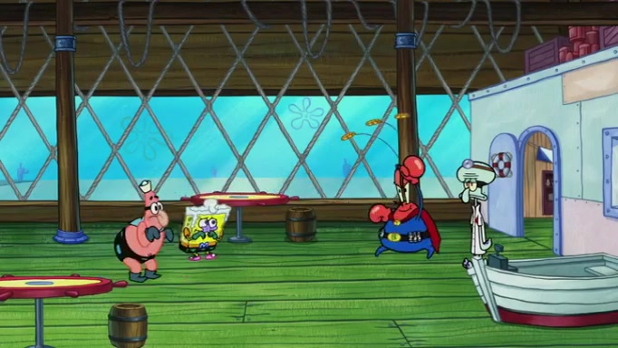 In the end, Krabs sticks to reading comic books and SpongeBob and Patrick fake drive into the distance. The TV Announcer says he needs to find another job and says if it is too late to go back to college radio.
