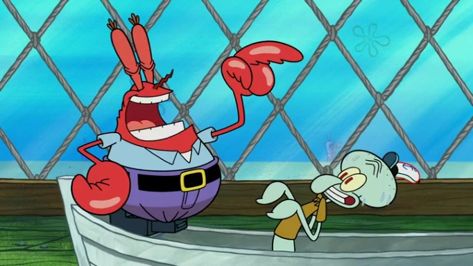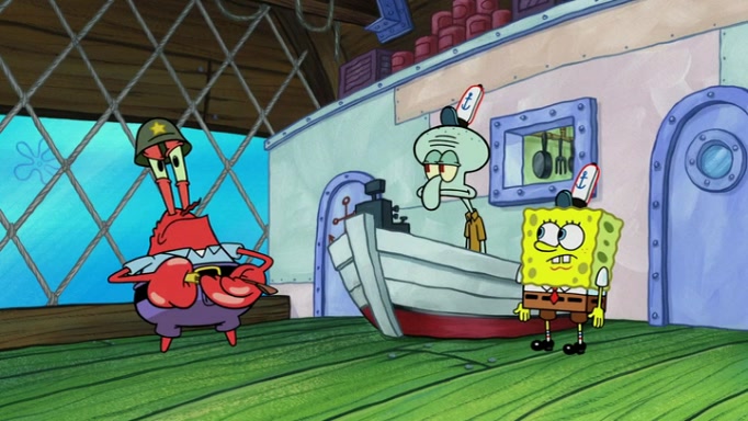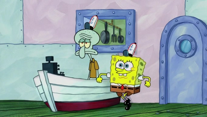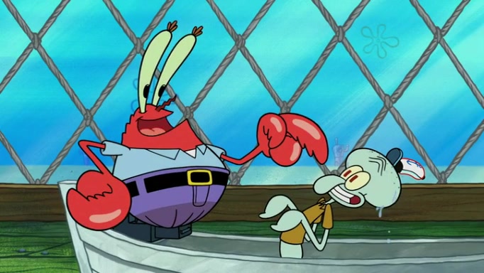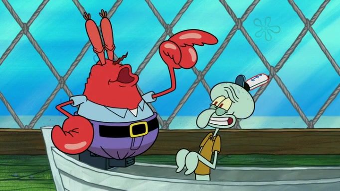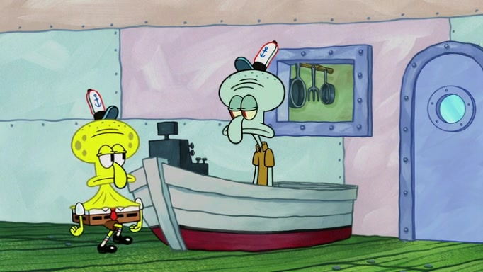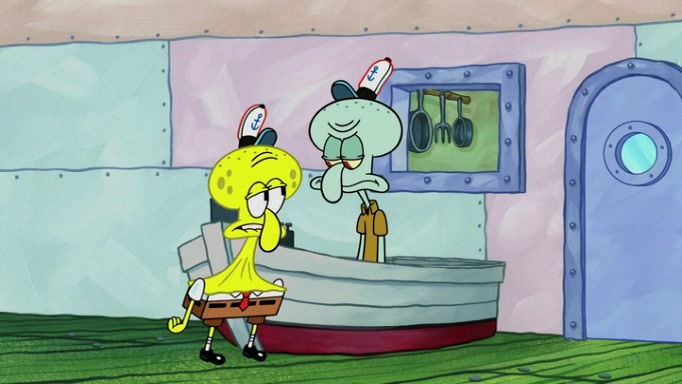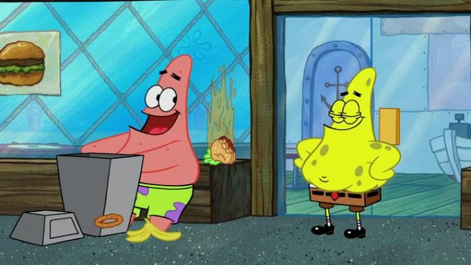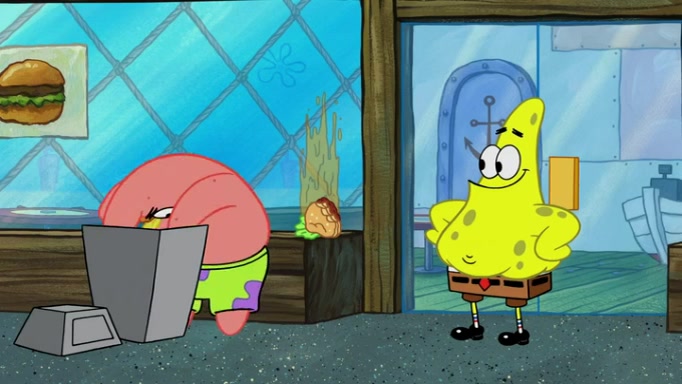 In the beginning of the episode, Mr. Krabs makes some new rules and goes to his office, while Squidward imitates him behind his back, but Mr. Krabs hears him and confronts him about this. However, Squidward lies that he was imitating him out of flattery and he is let off the hook. SpongeBob believes this lie and decides to mimic/imitate people because he heard that "imitation plus flattery equals happy people." He first imitates a father yelling at his kids. The father and the kids become impressed with SpongeBob's mimicry. SpongeBob then imitates Squidward, who also likes his imitation. He then imitates Patrick, who thinks he is looking at his real self.