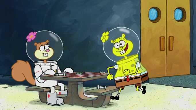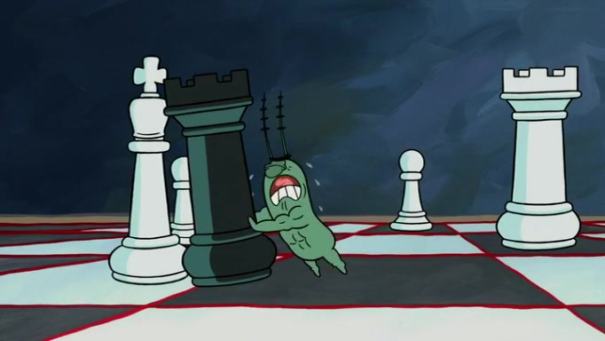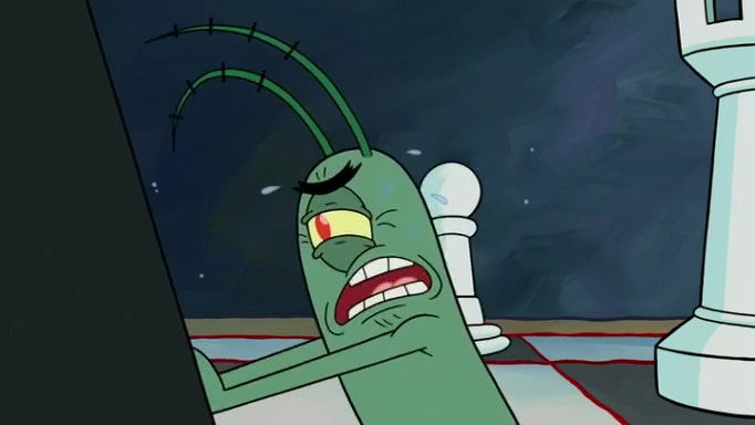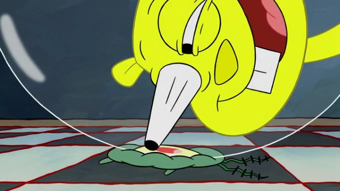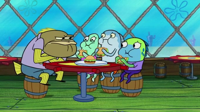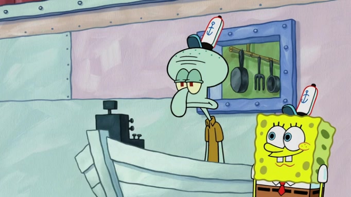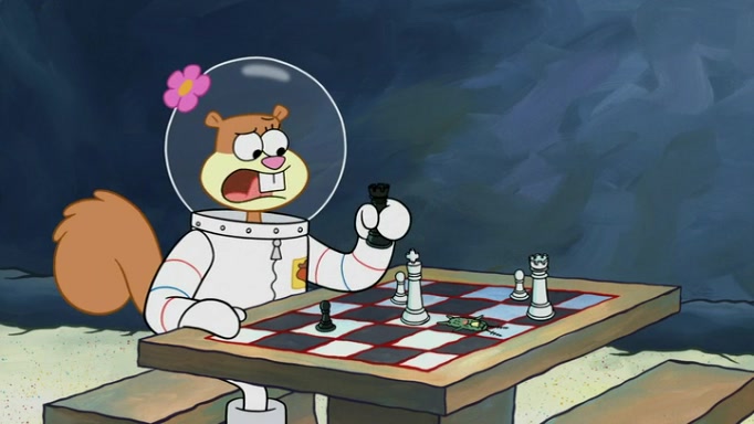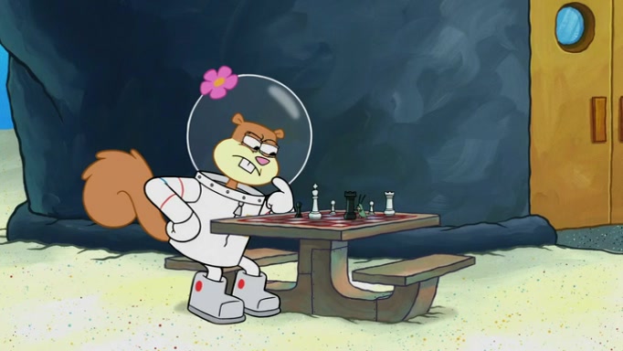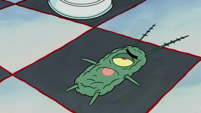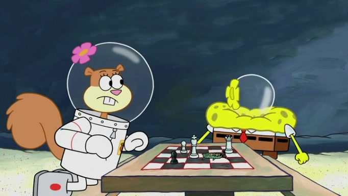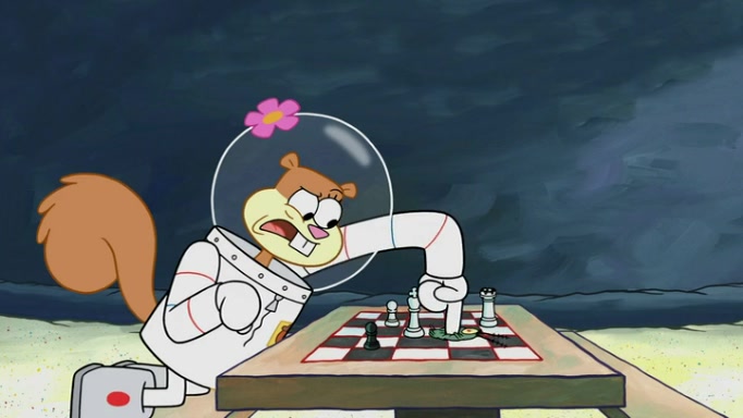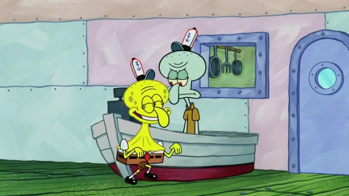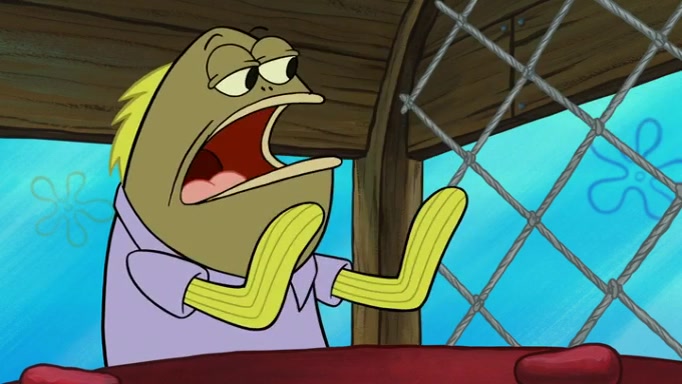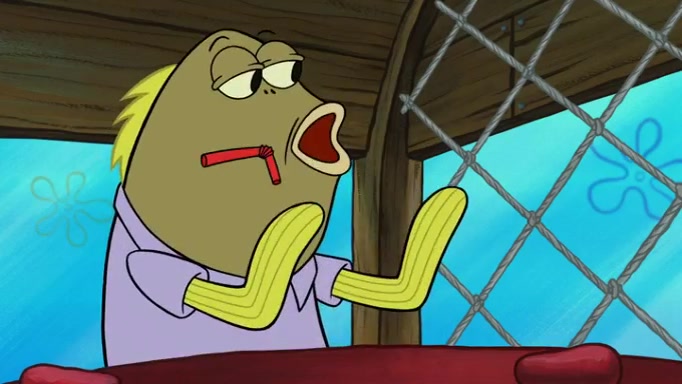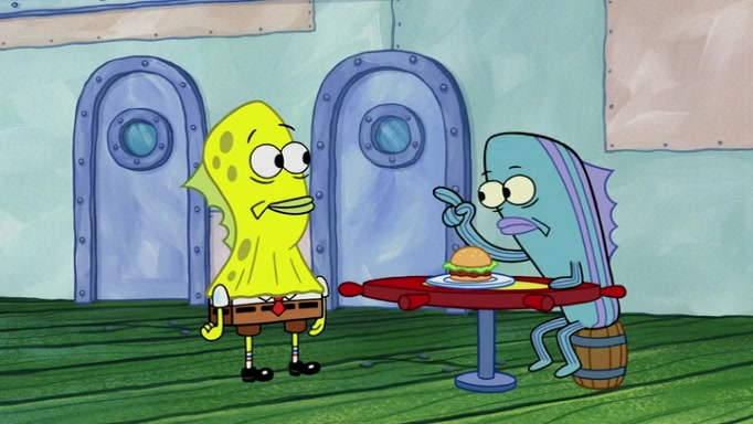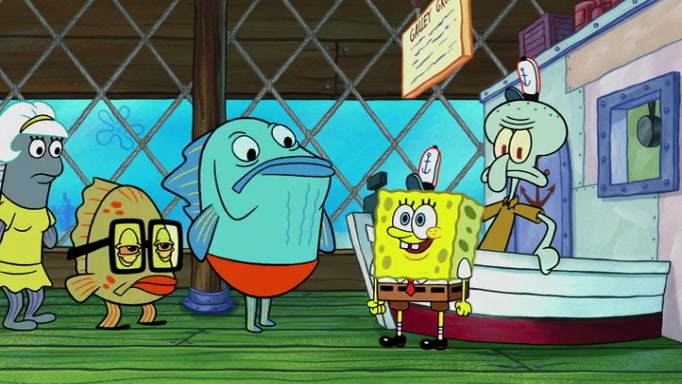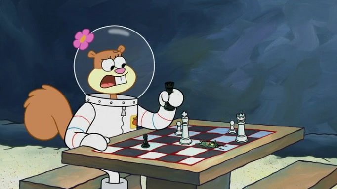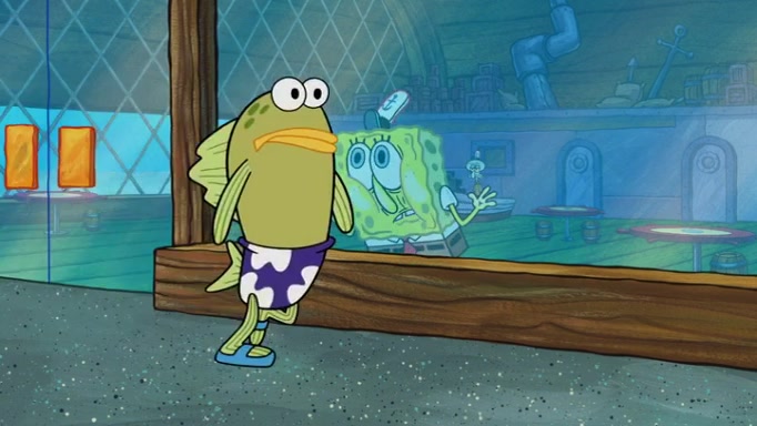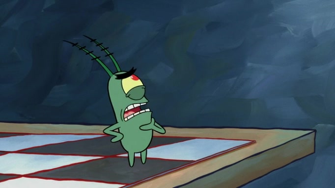SpongeBob then imitates Sandy and Plankton, while they are playing a game of chess. Sandy admires the imitation, but Plankton says that he got his voice incorrect. He also imitates the French Narrator by reading the "80,000 Impressions Later..." time card in his voice as the narrator complains about it.