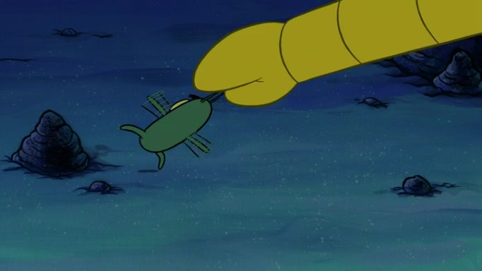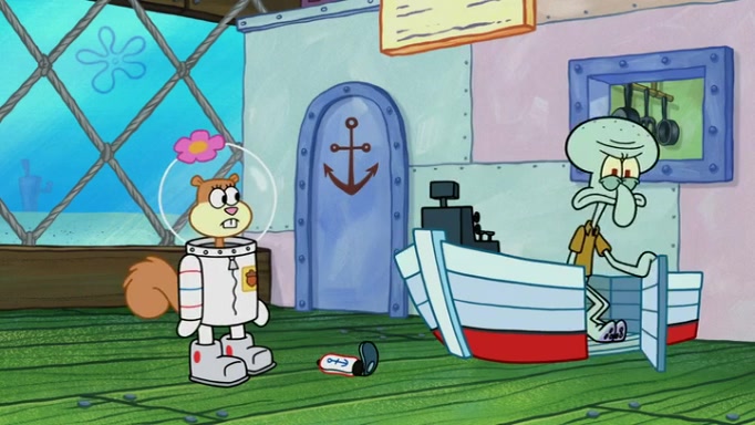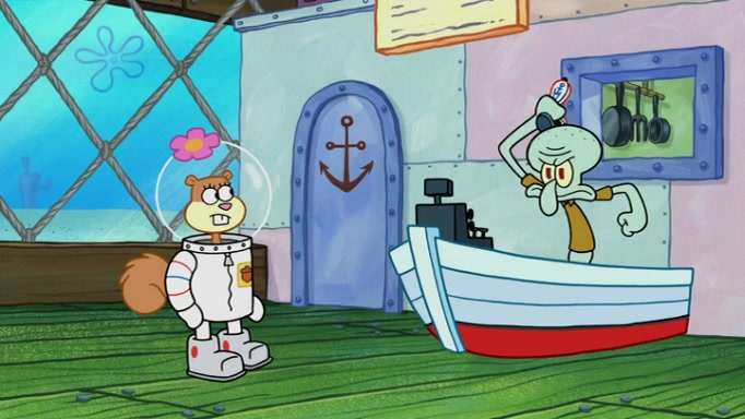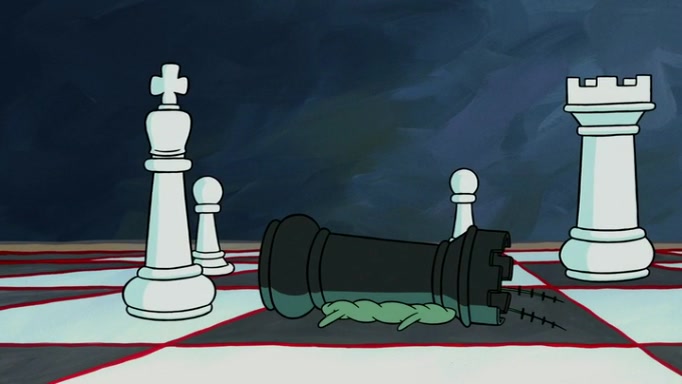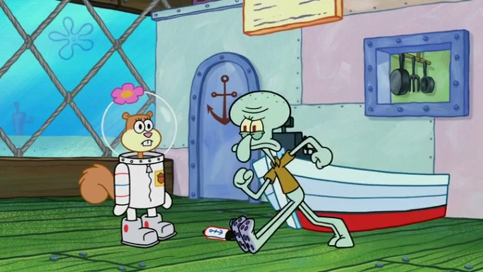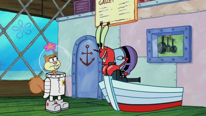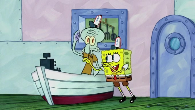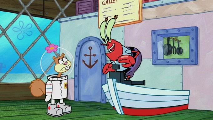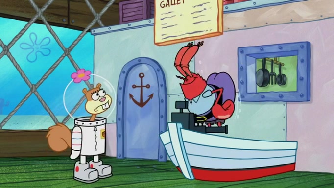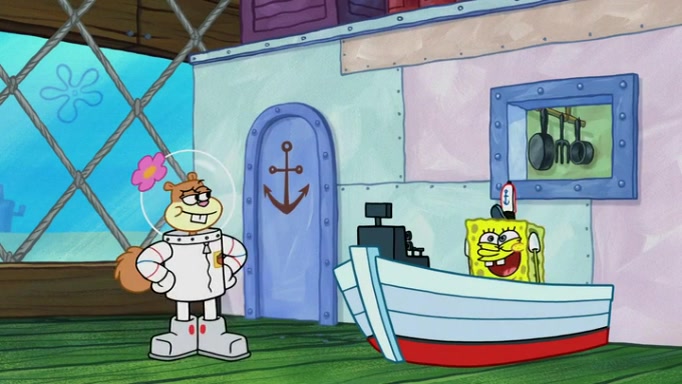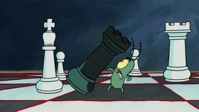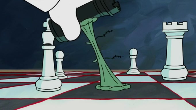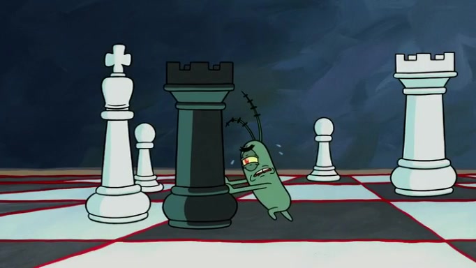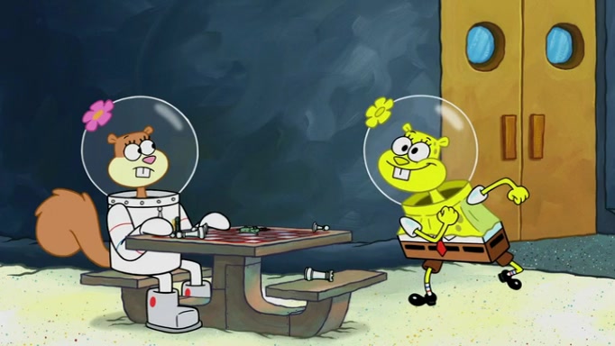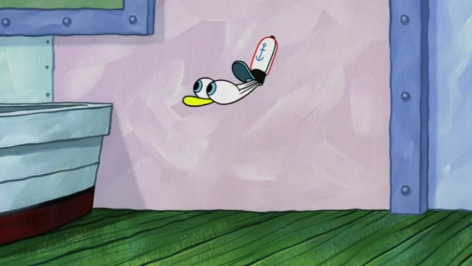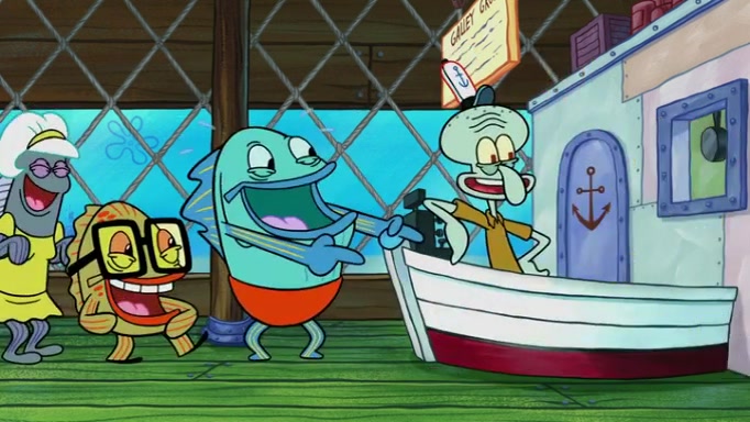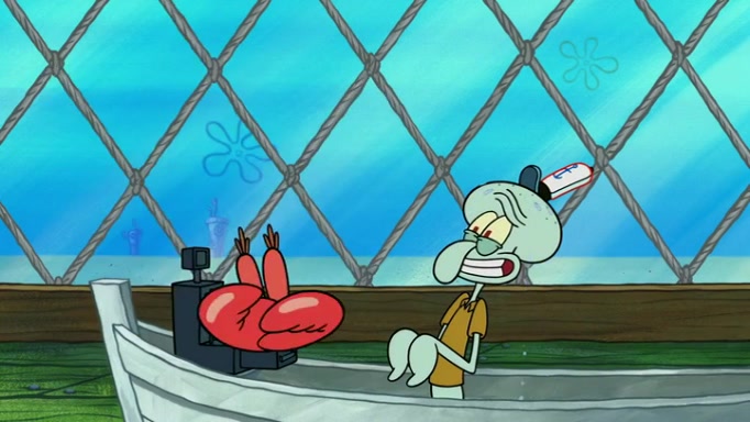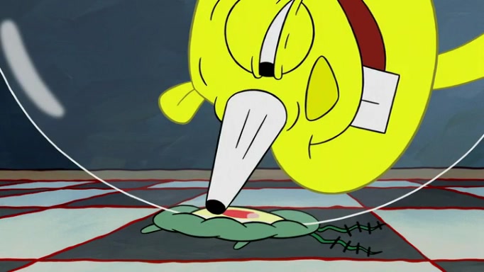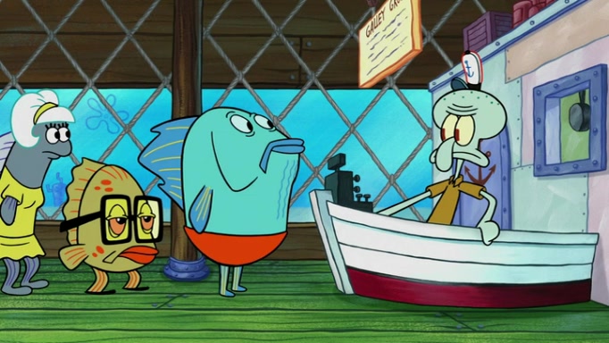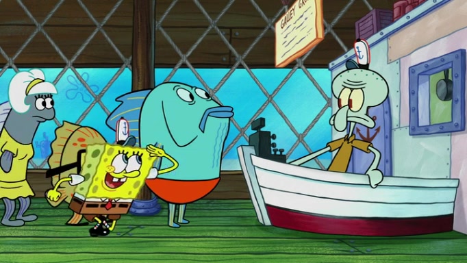SpongeBob then imitates Sandy and Plankton, while they are playing a game of chess. Sandy admires the imitation, but Plankton says that he got his voice incorrect. He also imitates the French Narrator by reading the "80,000 Impressions Later..." time card in his voice as the narrator complains about it.