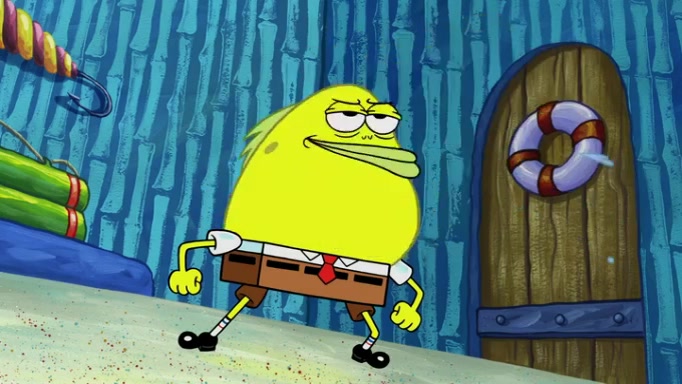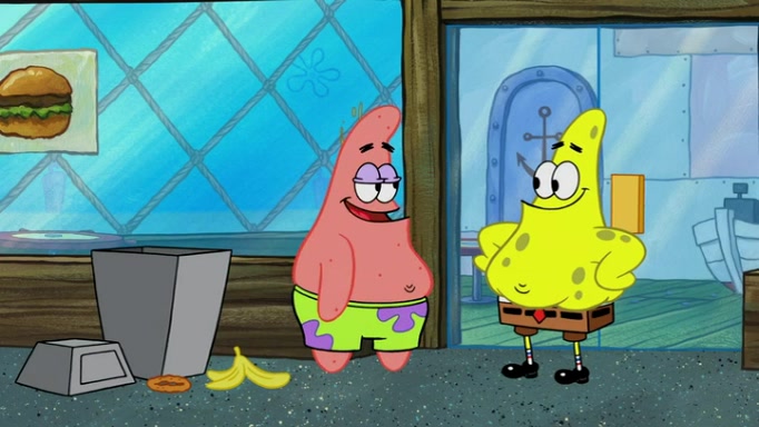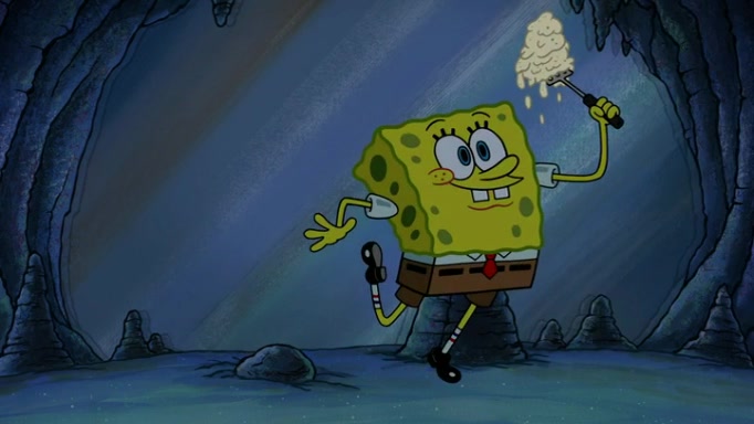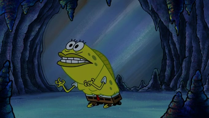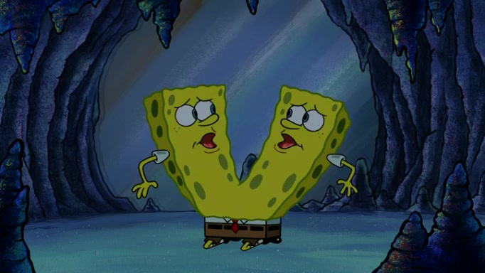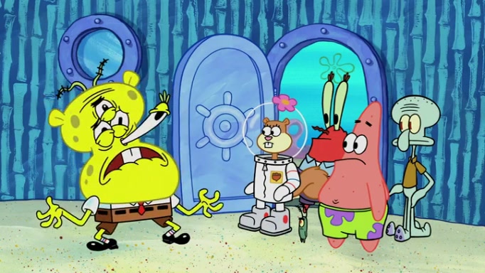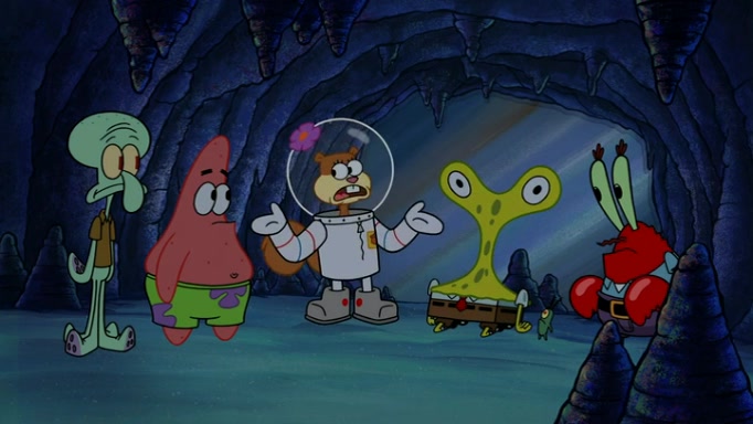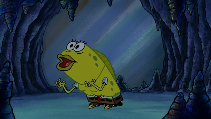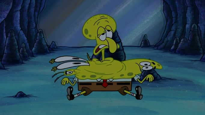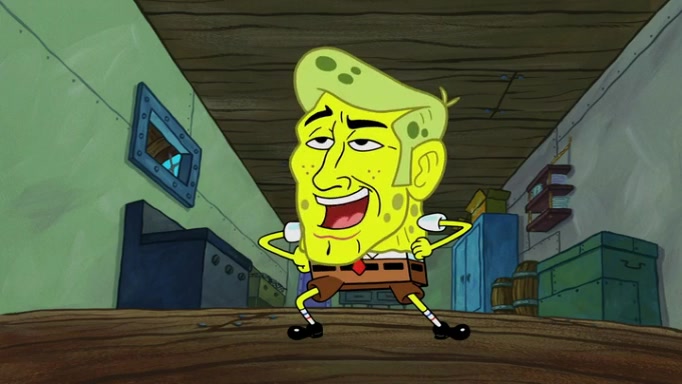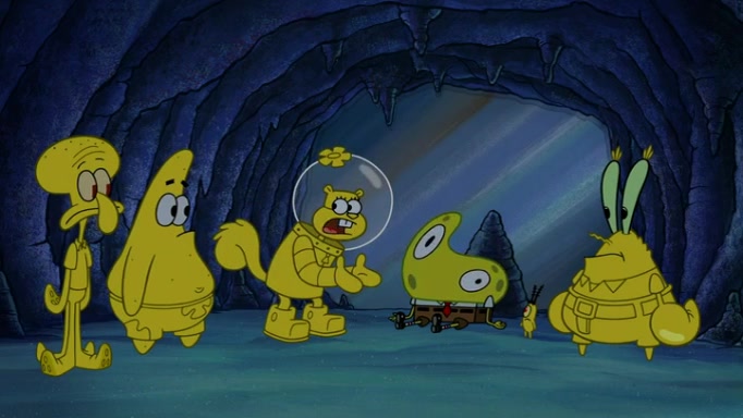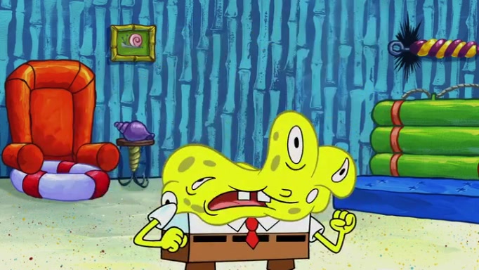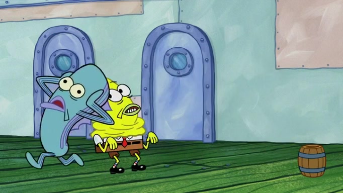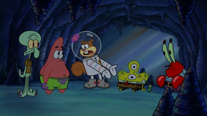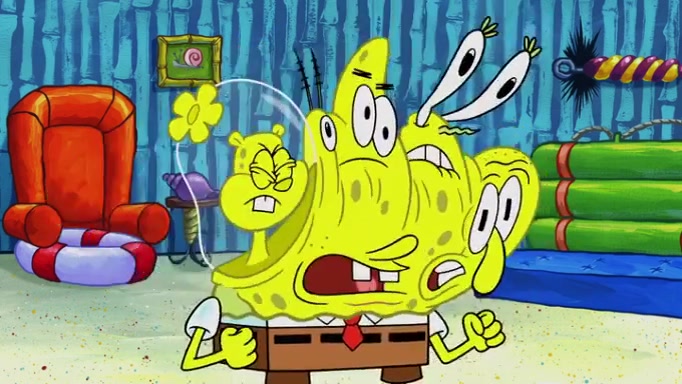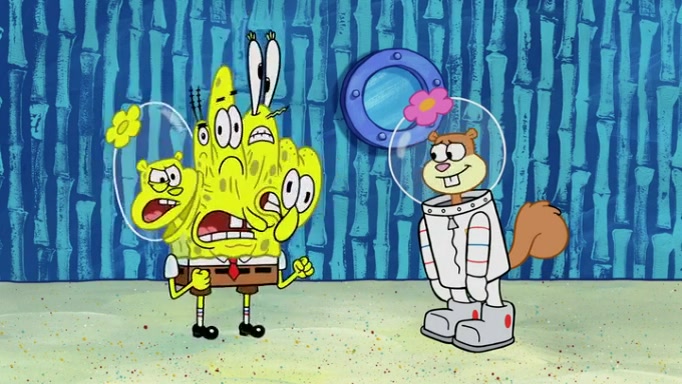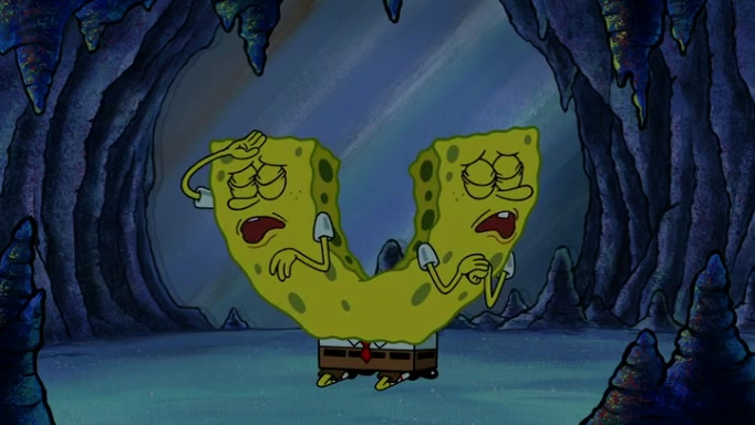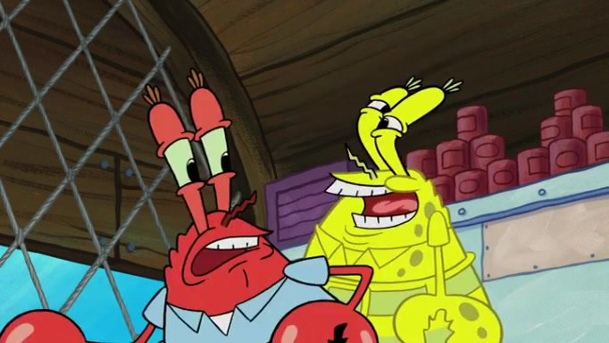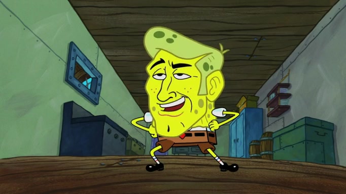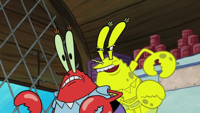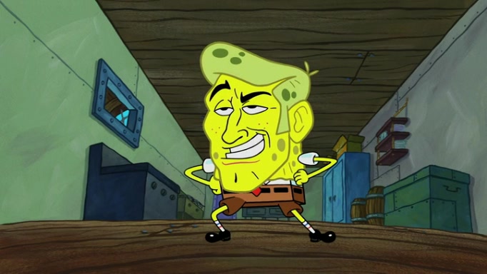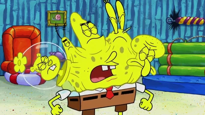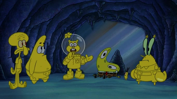SpongeBob goes to live in a cave in regrets of not remembering himself. His friends find him and end up mimicking him in order to bring back SpongeBob. It ends up working, but the others get the Mocking Mimicry Madness as well and end up acting like SpongeBob. At first, SpongeBob is shocked, but gets adjusted to it as they all laugh crazily like him.