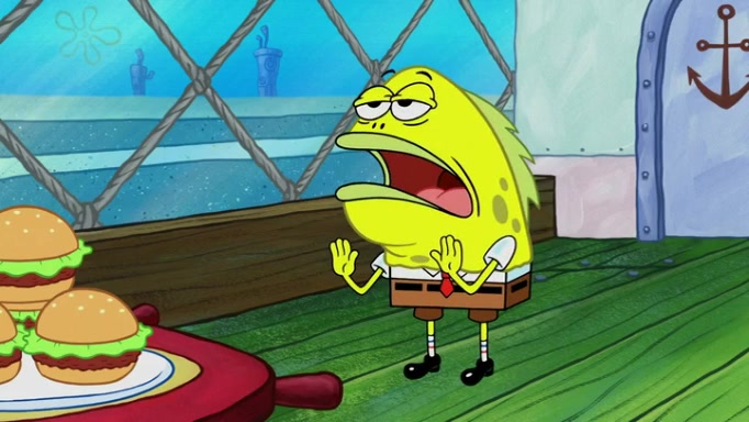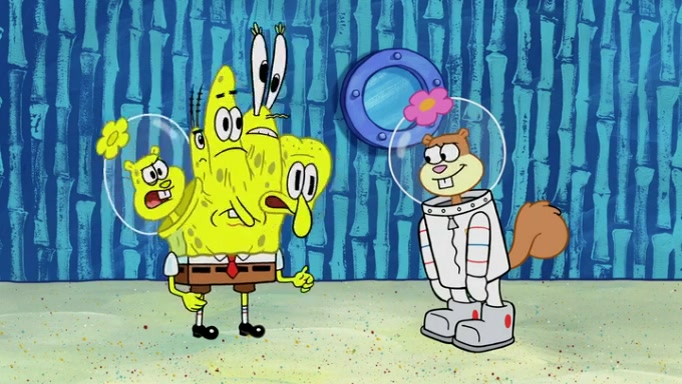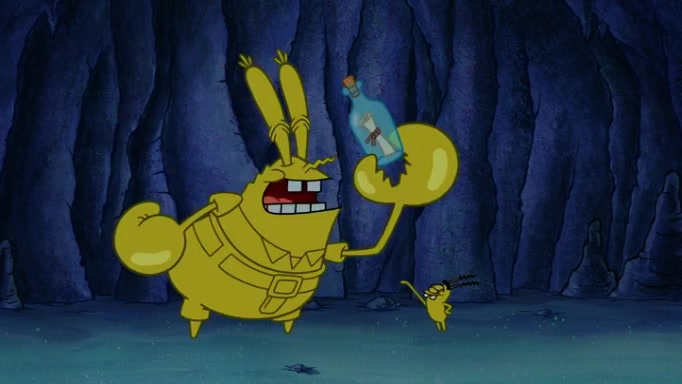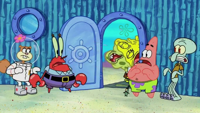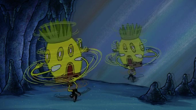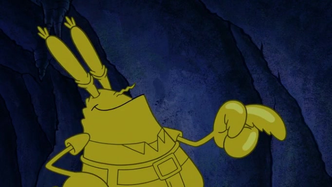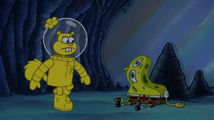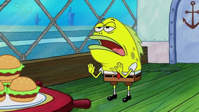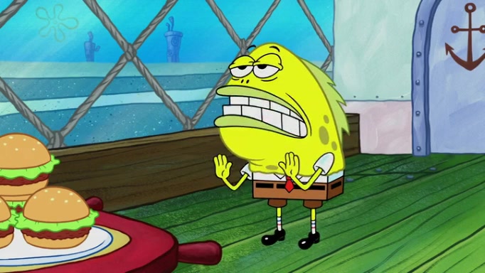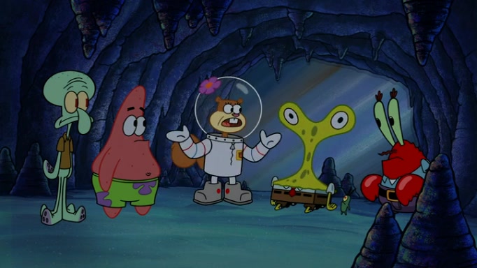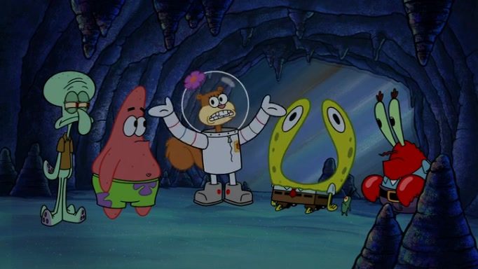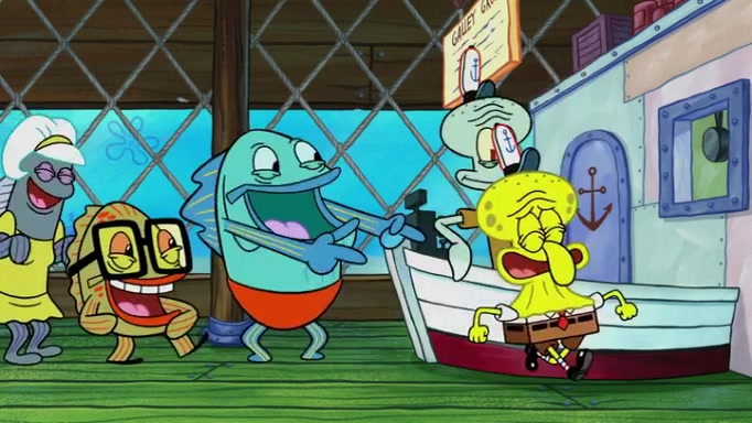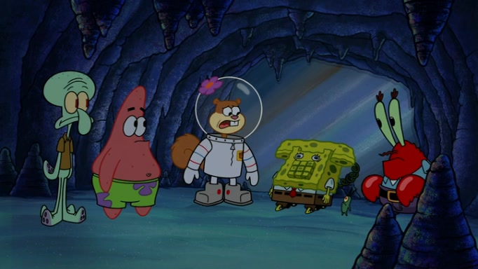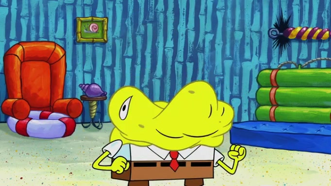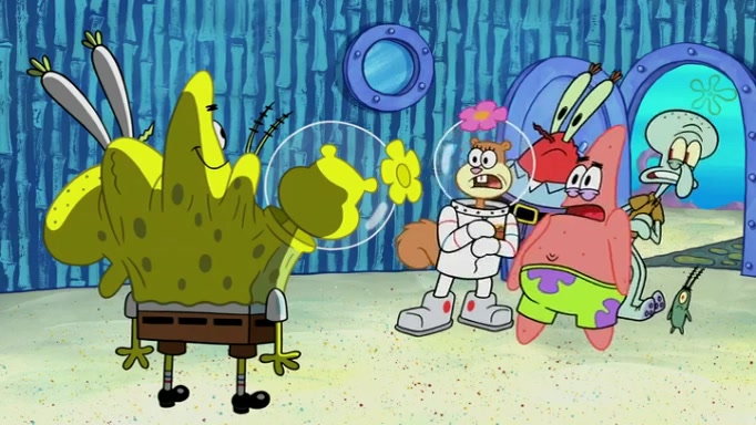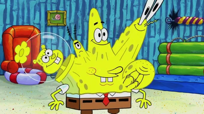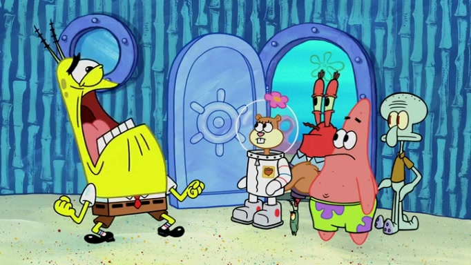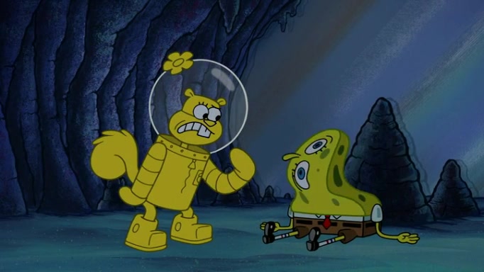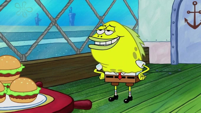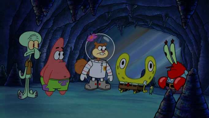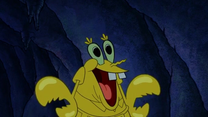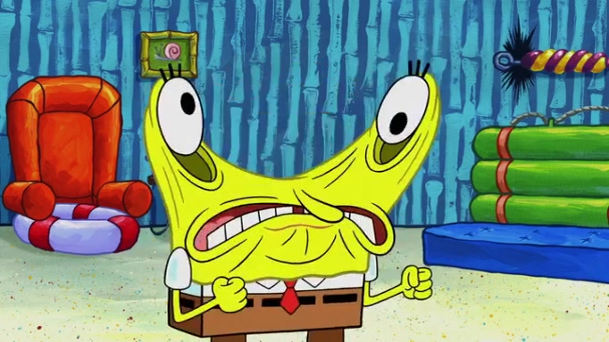 SpongeBob goes to live in a cave in regrets of not remembering himself. His friends find him and end up mimicking him in order to bring back SpongeBob. It ends up working, but the others get the Mocking Mimicry Madness as well and end up acting like SpongeBob. At first, SpongeBob is shocked, but gets adjusted to it as they all laugh crazily like him.
