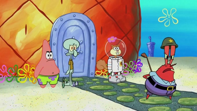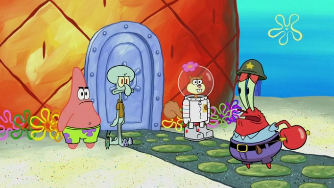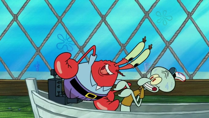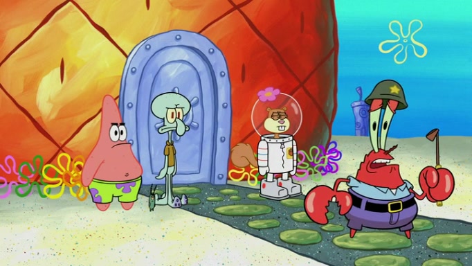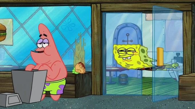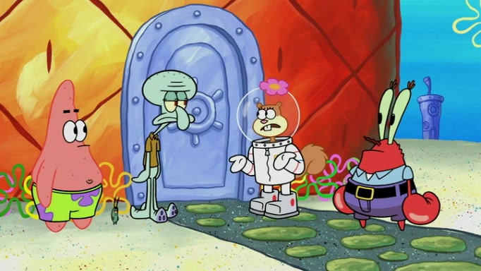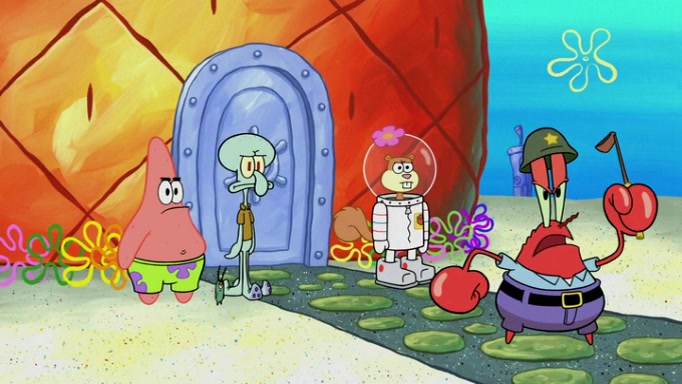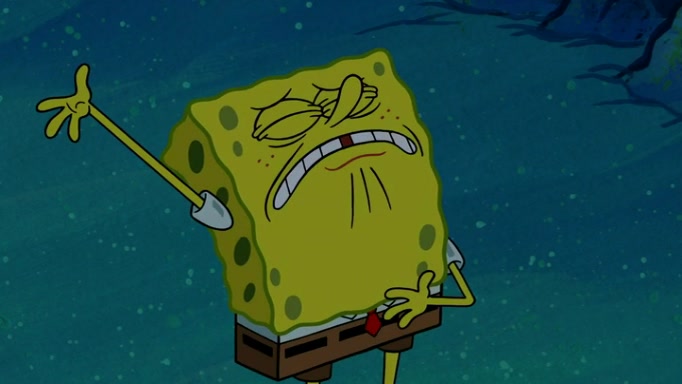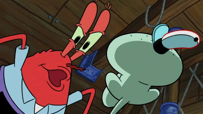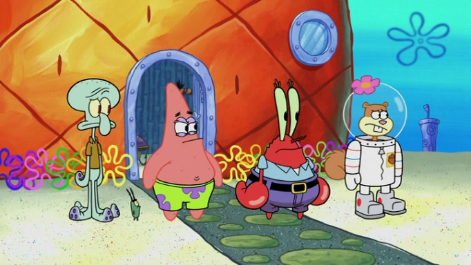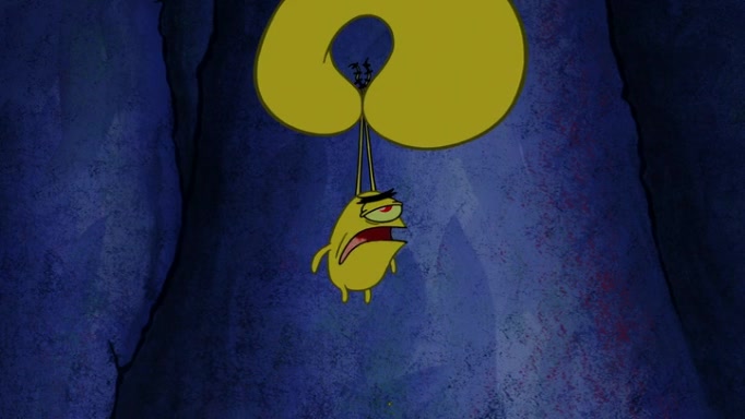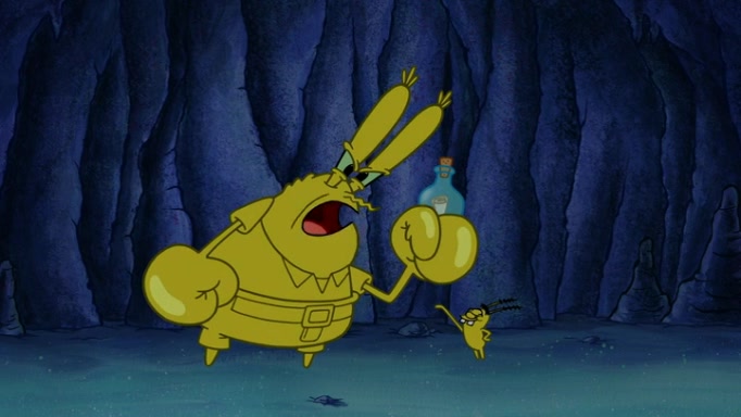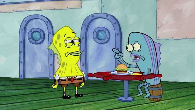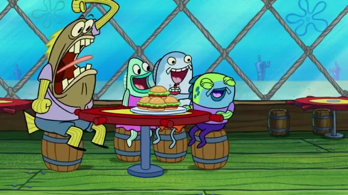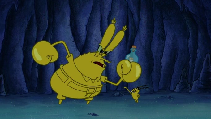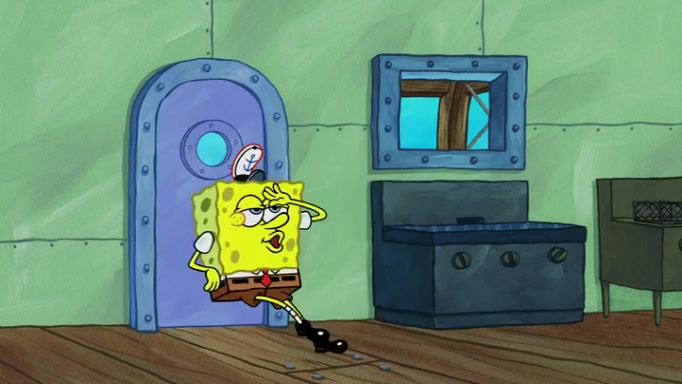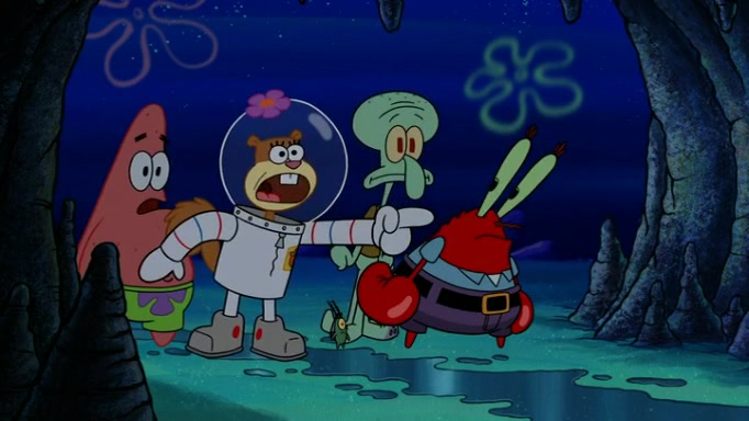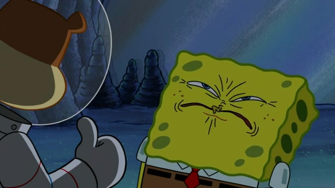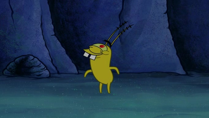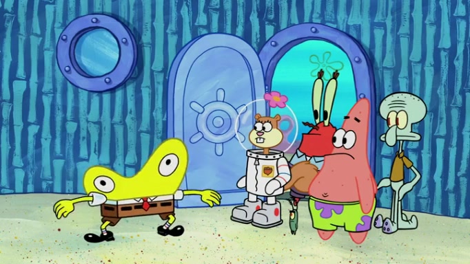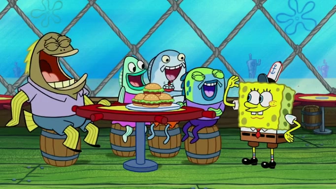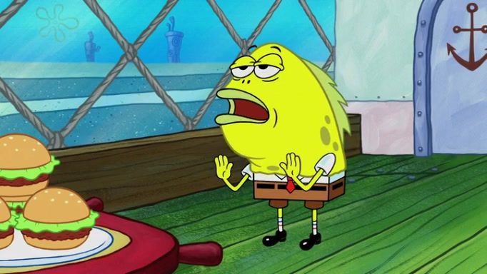 SpongeBob goes to live in a cave in regrets of not remembering himself. His friends find him and end up mimicking him in order to bring back SpongeBob. It ends up working, but the others get the Mocking Mimicry Madness as well and end up acting like SpongeBob. At first, SpongeBob is shocked, but gets adjusted to it as they all laugh crazily like him.