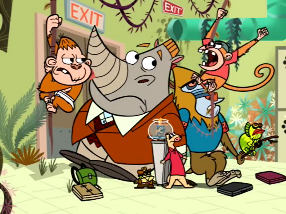 Last time on "DMAN re-attempts to talk about every single CN original in existence", dman talked about the show with the cow and the chicken. Today, things come to an end as he talks about the show with the boy, the monkey, and several other animals that I'm too lazy to mention. Well, looks like we've finally arrived at the last show on the list! And it's none other than... #27: My Gym Partner's a Monkey "Inoculation Day" [December 26, 2005] This show premiered just one day after Christmas, huh? That's fitting for the time of year we're currently in. Oh God, this show's almost 20 years old...sorry, where was I? Right, the show about animals going to school. My brother and I watched this one a TON back in the day, and I remember holding it in similar high regard as I did with Camp Lazlo. I played the flash platformer game dozens of times, I knew all the words to Animal School Musical, for a good while "PRETTY PRETTY SHINY SHINY" was in constant use of my everyday speech, I could go on with this one. That all said, it's been years since I've even touched this show and, I'll be honest, this is the show I'm the most worried about revisiting in this entire thread. Almost no one brings up this one nowadays, and if they do it's practically always in a negative light. So, will my childhood obsession win out, or will this gym partner be a total bust? Let's change our last names to Lion and find out for ourselves. The episode starts with a wide selection of animal students on a bus (sounds familiar, doesn't it?), but we specifically focus on Jake Spidermonkey (it's fitting that Tom Kenny gets one last appearance here) and Adam Lyon. Jake spends the whole bus ride being annoying, leading Adam to say that he's glad he's not a monkey, a statement that certainly isn't foreshadowing anything! The bus then arrives at Charles Darwin Middle School, where Principal Pixiefrog announces that it's inoculation day, AKA the day where every student gets their mandatory vaccination shot. While Nurse Gazelle is shooting down various students in the halls with a blowgun, Jake expresses his great fear of getting shots, right before he is caught in the crosshairs of the blowgun himself. As Jake tries to run away, Gazelle sets the blowgun into hi-tech mode. However, since Adam gets in the way, she accidentally ends up hitting him with the blowdart instead of Jake. Jake then goes on about how glad he is that he didn't get hit, but it doesn't matter anyway, because while he's rambling Pixefrog secretly gives him his shot and he doesn't feel a thing. No, the real problem here is that the monkey booster that Adam got is likely to cause an adverse reaction in humans, and surprise, that's exactly what happens. Adam feels itchy, he craves bananas, he swings on a vine, and before we know it he's fully turned into a monkey. Realizing the potential consequences of this situation, Pixiefrog gathers the school faculty to brainstorm ways to turn Adam back into a human. It's then that Gazelle reveals she has an antidote for the booster, which she hasn't revealed until now due to her tiny peanut brain. Anyway, they all trust Jake to lead them to Adam...after he walks them in circles around the same school block for hours, of course. Jake finally leads them into the restroom where, sure enough, Adam appears as apparently all monkeys feel the constant need to desire their butts in the mirror. Before Gazelle can shoot him, another problem arises: due to her miniscule brain, she can't distinguish between Adam and his mirror reflection, and she ends up shooting the mirror. As the faculty tries to run away, Adam picks up Pixiefrog, runs outside, and starts climbing Ingrid Giraffe's neck King Kong style. While Jake climbs her neck in an attempt to put a stop to this, some protestors from the rights group B.A.A.A. (Because All Animals Are Amazing...yes I know that's four A's just go with it) show up and are horrified by the scene. Gazelle gets ready to aim another shot, but due to Jake making his way up, she once again cannot distinguish the two monkeys from each other. She gets it wrong again, but Jake is able to deflect the antidote with his tail and send it into Adam instead. Adam is cured, Pixiefrog is set free, the protestors go for a burger, and Jake makes various butt jokes to everyone's unamusement, including mine. The end. Well, if the ending of that summary didn't give it away, this show hasn't aged well in my eyes. Like, at all. I'll start with the good: the joke about the school's insurance and the jab at PETA were both mildly funny, and the animation isn't bad by mid-2000s standards. And...that's it. Everything else here is either mediocre, or painful to watch. The biggest problem by far is Jake; a character who is annoying, brainless, unfunny, and has zero redeeming qualities whatsoever. It's unfortunate, but Tom Kenny's final appearance in this thread is by far his worst. Speaking of unfunny, that's how every joke in this show lands other than the very few I mentioned above. It gives me the same vibe as Squirrel Boy, although this show still has a leg up because a few funny gags are better than none! Man, I can't believe I liked this one as a kid...actually, yes I can. From the perspective of five-year old me, a show that's this shit would be my shit. One last thing I want to mention- the editing of the background music is bizarre. Songs will not fit the mood at all, some will just suddenly cut at random points, hell, when the episode ends the music that's playing just fades out with NO sense of conclusivity. It doesn't really affect the show itself, but it's too strange for me to not mention. Before I wrap this talk-about up, I want to stress that I don't think that this show is terrible. Whenever Jake is not on screen, it's just a mediocre show. But the mediocre parts aren't what stick out, especially when Jake is one of two main characters. Even this show featuring giraffe and snake students can't put it in my good graces.