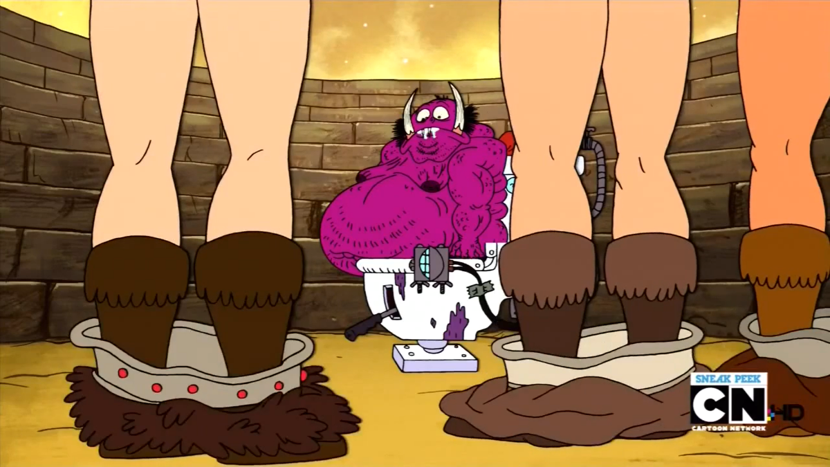 Last time on "DMAN re-attempts to talk about every single CN original in existence", dman talked about one of the most bizarre (yet forgettable) ideas for a show the network put out in the mid-2000s. Today's show is also bizarre, but certainly harder to forget... #44: Secret Mountain Fort Awesome "Teleport-A-Potty" [August 1, 2011] Before Uncle Grandpa came around, this was the first show that Pete Browngardt created for Cartoon Network. And if you thought that former show that I covered back in 2019 was too zany and weird, HOOOOO boy it's nothing compared to this one. When this show came out, I heard almost nothing but bad things about it. And at the time, I agreed. My experience watching this show is a very similar one to that of The Problem Solverz: I saw one episode on television, and that was enough to make me nope out on the whole show. Of course, that was almost a decade and a half ago, and my opinions on shows I previously hated have changed over that time. Heck, a good portion of the internet seems to have warmed up to the aforementioned Uncle Grandpa, discovering the show wasn't as bad as most made it out to be. That only leaves the question of whether or not this show deserves the same treatment! Will it be awesome? ...or should it have remained secret? The episode begins a group of monsters (apparently called "Disgustoids") ordering pizza. Hmm...sounds familiar. Anyways, we have Festro (the big purple one), Gweelok (the green one with serious acne), Slog (the one that looks like it's covered in pubic hair), Dingle (the pet vaguely resembling a dog), and The Fart (you guessed it, the one that's made of butts). Since the Disgustoids live underground, their pizza never arrives. This sends Festro into an overly long monologue about how he wishes they lived in a world where pizza was easily accessible, and just in time Gweelok reveals his newest invention: the teleport-a-potty. So, all the Disgustoids cram themselves in and begin the search for a world where pizza grows on trees. They encounter dimensions filled with vibrant color, flying babies, and sentient rollerskates, but none of them have pizza. The next dimension appears to look no better, and things take a turn for the worse when Festro finishes doing his business in the teleport-a-potty and flushes. This causes the teleport-a-potty to activate with no one inside, effectively stranding the Disgustoids. Before Gweelok can chew Festro out, the group discovers the world they're in is one where monsters rule over humans. Bad news, the leader of this domain is Helmethead, a monster who wants nothing to do with these outsiders. While the Disgustoids await certain death in his dungeon, Gweelok mentions that their only chance of getting home is if they find another toilet, since he can then modify it into another teleport-a-potty. Good news, a group of humans arrive to rescue the monsters and they take them to their human leader. The leader telepathically tells them that there is only one toilet in the land, but it was stolen by Helmethead and is still in his possession, leaving all the humans weak since they haven't been able to relieve themselves in a long time. But a prophecy foretells that a monster from another dimension will grant the humans use of the toilet once more...and said monster from the prophecy looks an awful lot like Festro. Realizing he will never eat pizza again if they don't get the toilet, Festro agrees to help. He assembles an army of humans and his fellow Disgustoids, but he immediately gets eaten by one of Helmethead's soliders. While the remaining Disgustoids engage in battle with Helmethead's army, Festro is able to burst through the solider that ate him once he is inside Helmethead's castle. The two engage in some cartoony shenanigans, and Helmethead reveals he's also been keeping fresh pizza stuck to his massive head under his helmet (which is actually an oven). Festro defeats Helmethead by eating all the pizza, and this summons the rest of the Disgustoids to the toilet. Before Gweelok can fully modify the toilet however, the humans gather round to use the toilet. The Disgustoids quickly jump into the bowl, except for Festro, who can't move due to all the pizza he ate. Despite not saving any slices for them, the Disgustoids still help him escape from the dimension...right after all the humans drop their pants. Festro then says he's fine never seeing a pizza again, before we zoom out and see the Disgustoids have now landed in a dimension that is nothing but a pizza floating in outer space. The end. Well, that was a lot. What even were all those words I typed in that paragraph? It kinda just went in one ear and out the other. I guess I'll start by saying this: like Uncle Grandpa, it's not as bad as I thought it was going to be. There are a few decently humorous moments here (Festro saying "don't leave me hanging" immediately cutting to everyone hanging in a dungeon was amusing) when I expected there to be none. But don't get me wrong, overall this was still pretty damn bad. I thought this show was going to be 2/10 levels of horrid, but it did manage to surprise me...if only barely. First, I cannot get past the art style of this show. It's saying something that the humans are even more unpleasant to look at than the actual Disgustoids. Second, outside of those few moments I mentioned, most of the jokes are duds. I don't find monsters rambling on and on about pizza that funny, sorry guys. To add on to that, the show moves at such an insane pace that any joke that does land doesn't get its full impact in. Also, the whole thing is WAY too out there for me. It feels like an Adult Swim show with even less maturity and even more drugs involved. I can see this one having appeal in a "so bad, it's good" kind of way, but as for me, this is one trip that I'll be fine with never going on again. THE BOTTOM LINE: SECRET MOUNTAIN FORT AWFUL!!!!!!!!!!! shhhhhhh RATING: 3 (leaning on 3.5)/10 (straight bad) And the penult