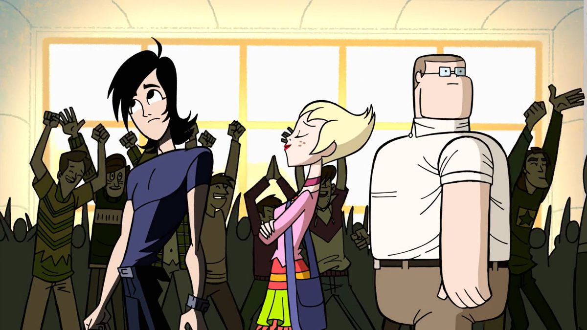 Last time on "DMAN re-attempts to talk about every single CN original in existence", dman talked about the show at the very end of the list. Unfortunately, it didn't leave much of an impact on him. Will today's show succeed in being more memorable? #13: Time Squad "Eli Whitney's Flesh-Eating Mistake" [June 8, 2001] It's finally time to complete the trio of forgotten early 2000s CN shows that I have a certain fondness for. Sheep was covered near the start of this thread, Robot Jones was just a few months back, and now we'll be taking a look at Time Squad. I remeber liking this one a lot, but after Robot Jones massively grew on me, I also remember it ending up as my least favorite of the three. That said, it's been years since I've seen this one. Who knows? It might surprise me and end up being my favorite of the three. Only one way to find out: let's go back in time to watch its first episode. The episode begins at Sister Thornly's School for Wayward Tots, where 97% of the kids are total thugs. The odd one out is Otto, an orphaned boy who loves reading books. Unfortunately for him, Thornly has a strict policy against reading, so she gives him a day's worth of chores as punishment when she catches him reading in a closet. By the end of the day he collapses in his bed, but is interrupted by the arrival of far-future time cop Buck Tuddrussel and his robot partner Larry 3000. The two believe Otto to be Eli Whitney, but he reveals they're both in the wrong time AND place. After a close encounter with Thornly, Tuddrussel explains his job: since his future is a utopian society, he fixes the instabilities that crop up in past historical events to make sure the future stays the future. Unfortunately, neither him nor Larry are very good with their history knowledge, so Otto offers to come with them and Tuddrussel accepts his offer, despite Larry's disapproval. Tuddrussel briefly shows Otto around their base in outer space, while Larry explains how he ended up with this job: he was originally created to help satisfy diplomatic negotations, but ever since the world became a utopia his services became unneeded, and so he was relocated with Tudrussel. Eventually, Larry reconfigures the time machine to the correct coordinates, and the trio travels back to 1783 to see what Whitney is up to. They arrive to find the city of Savannah, Georgia on fire, and Larry suddenly gets beat up by a group of townspeople. We immediately see what has gone wrong in time when one of the townspeople thinks Larry is one of the flesh-eating robots that Whitney built. Escaping from the situtation, the time squad moves further into town to try and find Whitney (it doesn't take them long). After Tudrussel tases Whitney, he explains that he created the robots because he wanted to "do something to help mankind", although he didn't think too far ahead on how flesh-eating robots would accomplish that. The squad heads outside to stop the robots, only to come face to face with them. Otto is too small and Larry isn't made of flesh so the robots target Tudrussel, but after a lengthy scuffle he manages to blow up all of the robots. However, the townspeople rush over to Otto to congratulate him instead, and upon feeling his T-shirt they realize just how uncomfortable their shirts are. Otto explains his shirt is made of cotton, which gives Whitney a new idea for helping mankind. He is now on track to invent the cotton gin, so the work of the time squad is done and they head home, although they are a little worse for wear. The end. Before I get to the rest of my thoughts, I have to mention that the theme song for this show kicks ass. Anyways, the rest of this show is good too! I'm not that big of a history buff, but I love the concept here. It also doesn't hurt that the main trio have a great character dynamic and the show is funny too. Special mentions go to Tuddrussel giving Otto his taser to deal with Thornly, and Larry begrudgingly serving a drink to Tuddrussel. That said, the way the whole "cotton gin" thing is resolved is a bit contrived, but even then it just adds to the wackiness of this show, so I can forgive it. So, do I still think this show is weaker than the other two I mentioned at the start of this post? Well...yeah, but it's just by a hair. I love Sheep's humor and Robot Jones' art style so much that even a solid show just barely pales in comparison. Whatever, I still enjoy this one and will have to watch more episodes after this. I will also give mention to this quote on the show's Wikipedia page: Beauregard "Buck" Tuddrussel (voiced by Rob Paulsen) is described as "a square-jawed cop too dumb to know he's dumb. Think Buzz Lightyear with a few extra male chromosomes." Holy shit, that made me laugh more than it should've, sorry. Wanna hear another dark joke? THE BOTTOM LINE: Thankfully, this show's premiere was far from the worst thing to happen in 2001! RATING: 8 (leaning on 7.5)/10 (pretty good) Alright, we're down to our last 10 shows and I'm feeling more pumped than ever! Spin me a good one, Wheel! Stay tuned for dman's next talk-about.